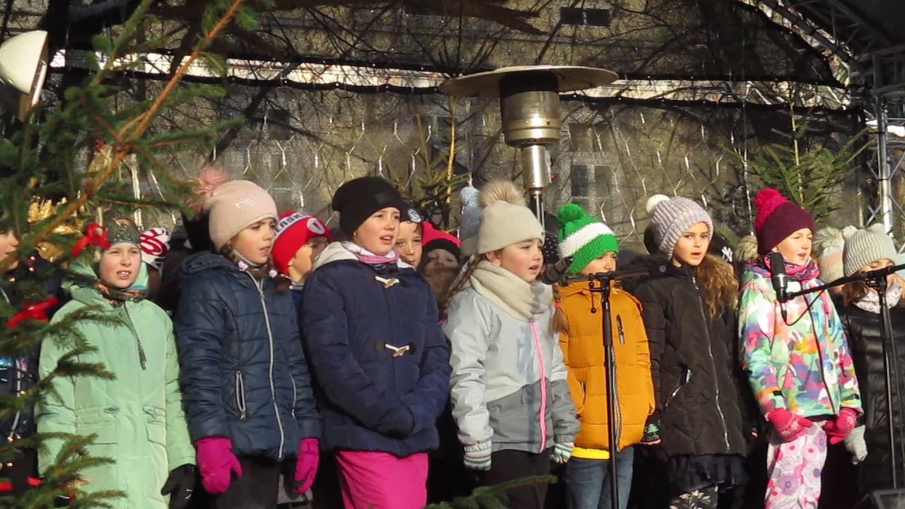 V pondělí 29 .12. 2022 se žáci prvního a druhého ročníku sešli na Masarykově náměstí a zazpívali si koledy a písničky u vánočního stromu.