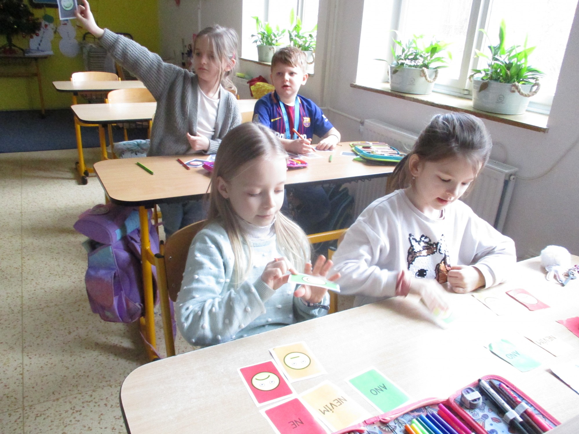 Hravou formou se žáci a žákyně seznámí se základními okruhy slovní zásoby (např. pozdravy, barvy, rodina, číslovky, domácí mazlíčci) a gramatickými jevy uzpůsobenými této věkové skupině.