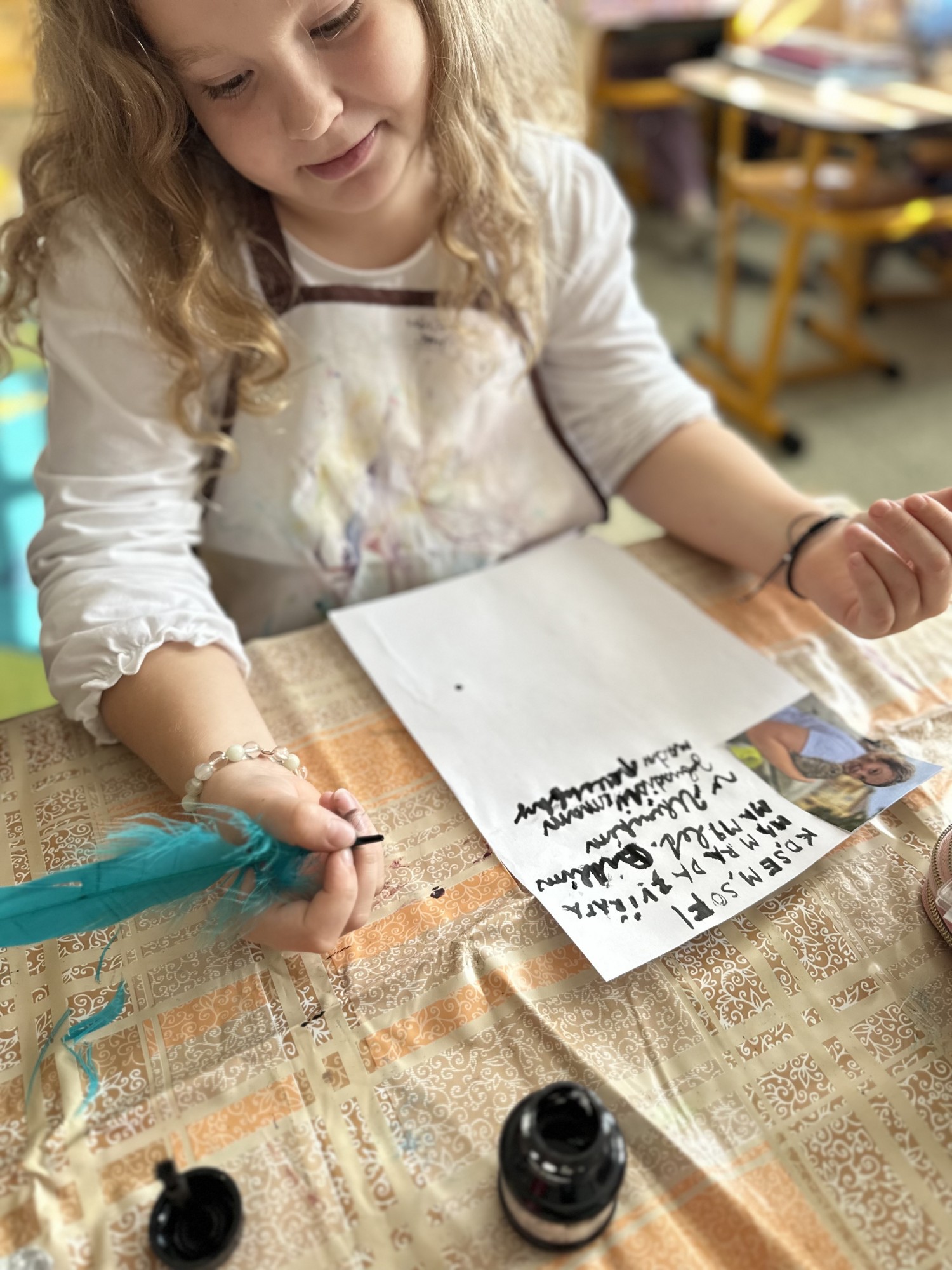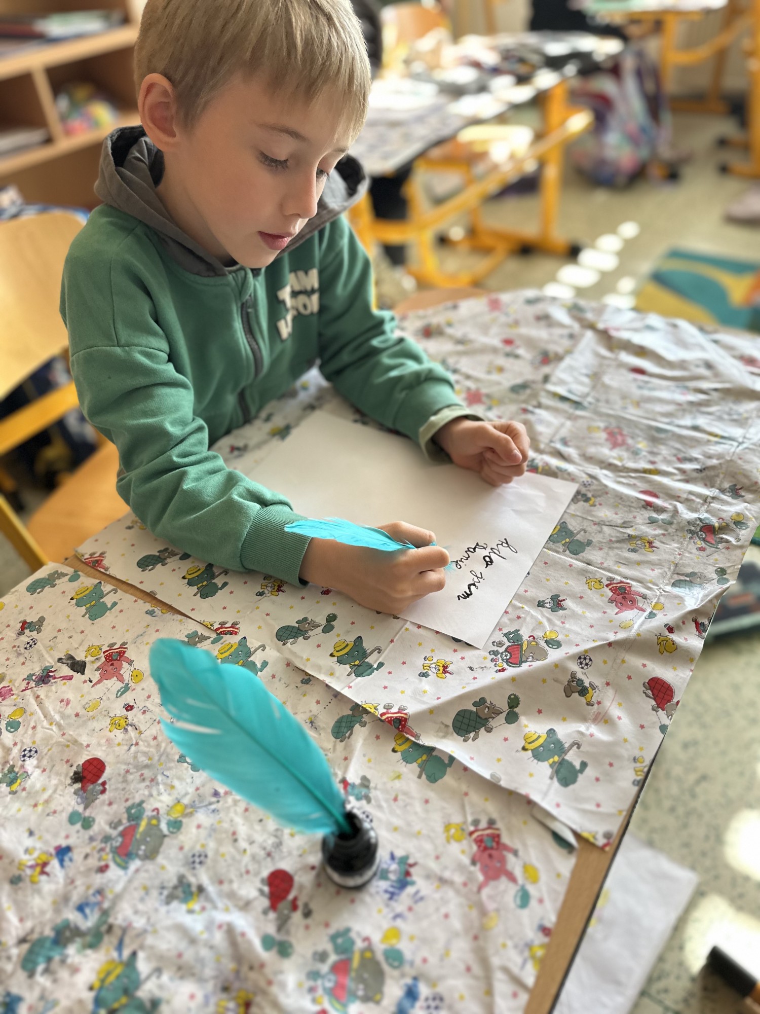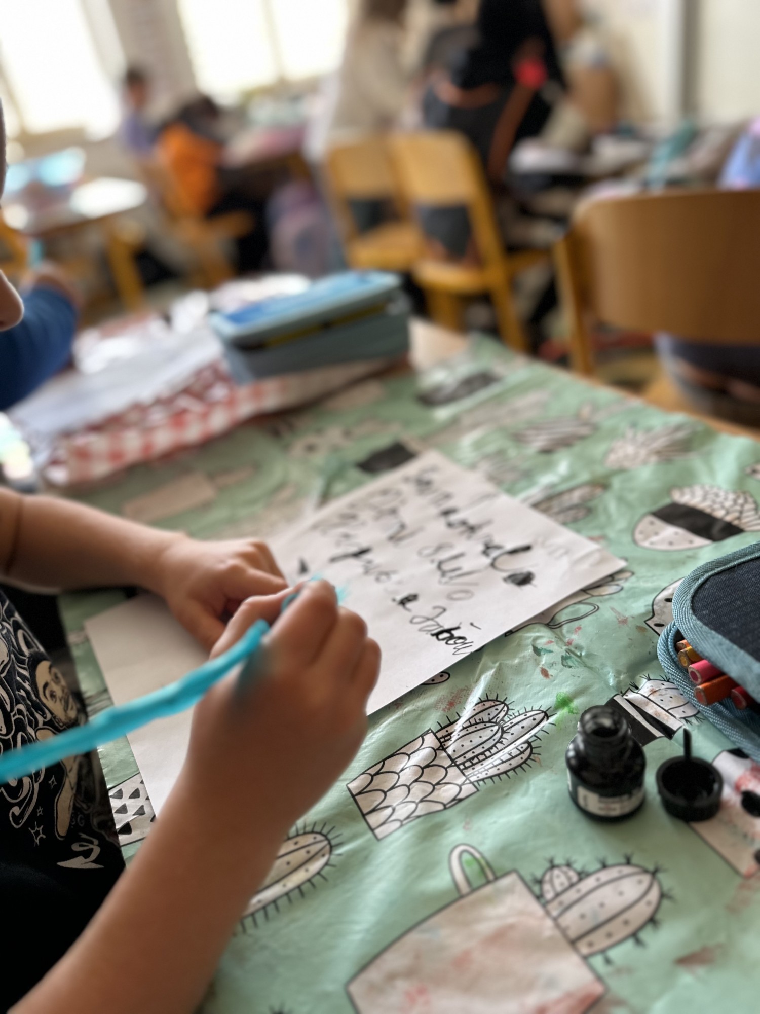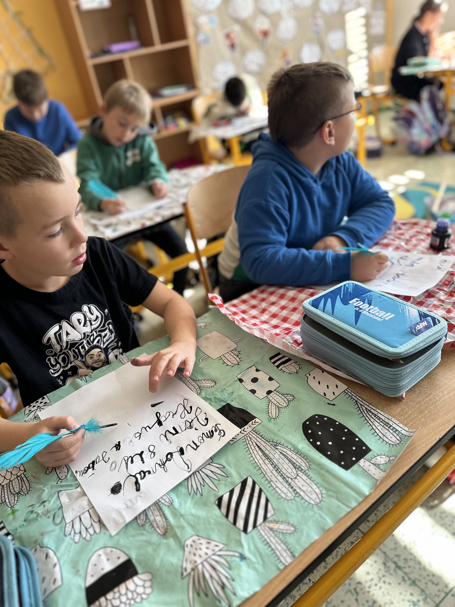 Pomocí šifry zjišťovali zajímavé informace o jeho životě, doplňovali chybějící slova, tvořili vlastní „Kroniku 3.B“ a společnými silami vytvořili velký kooperativní obraz Kosmase.