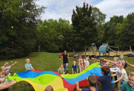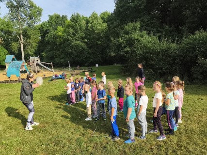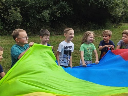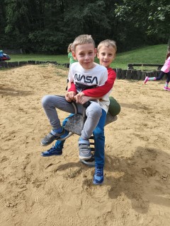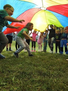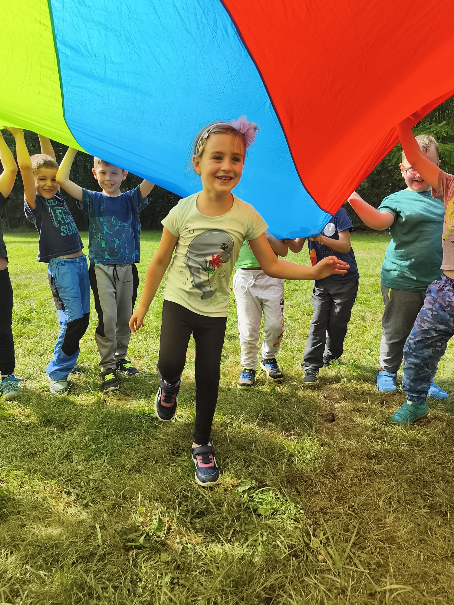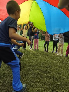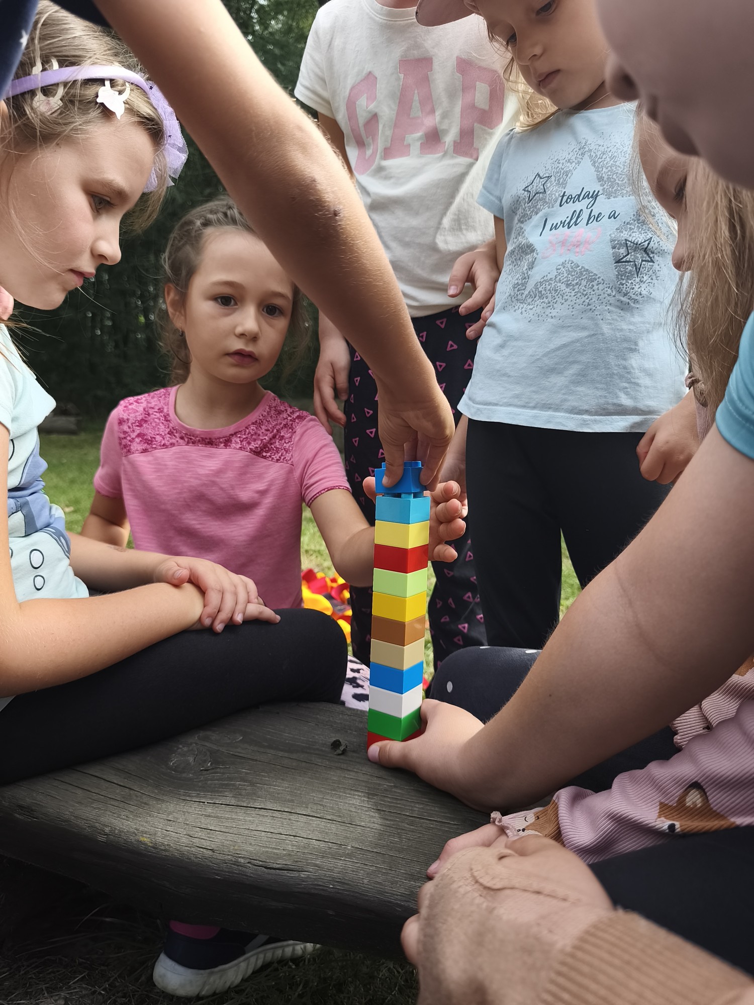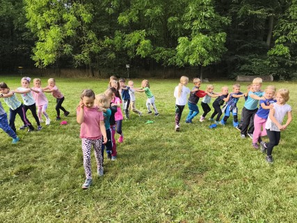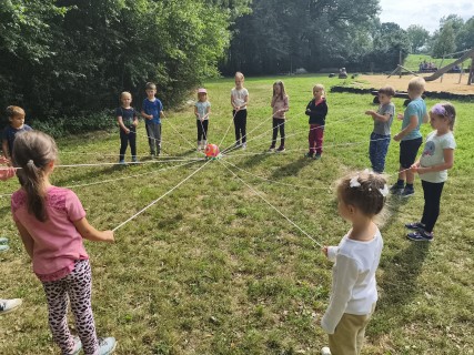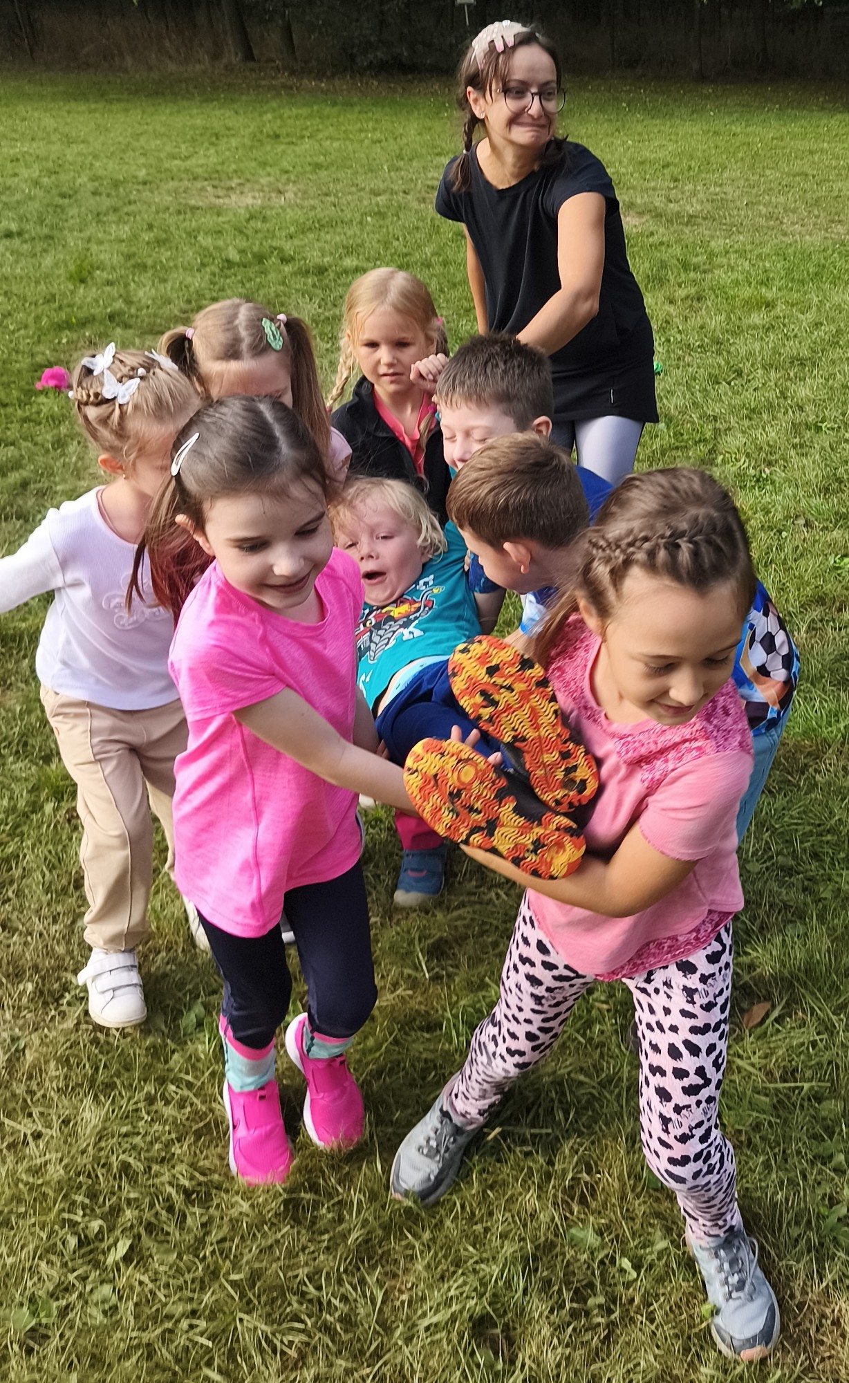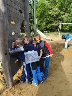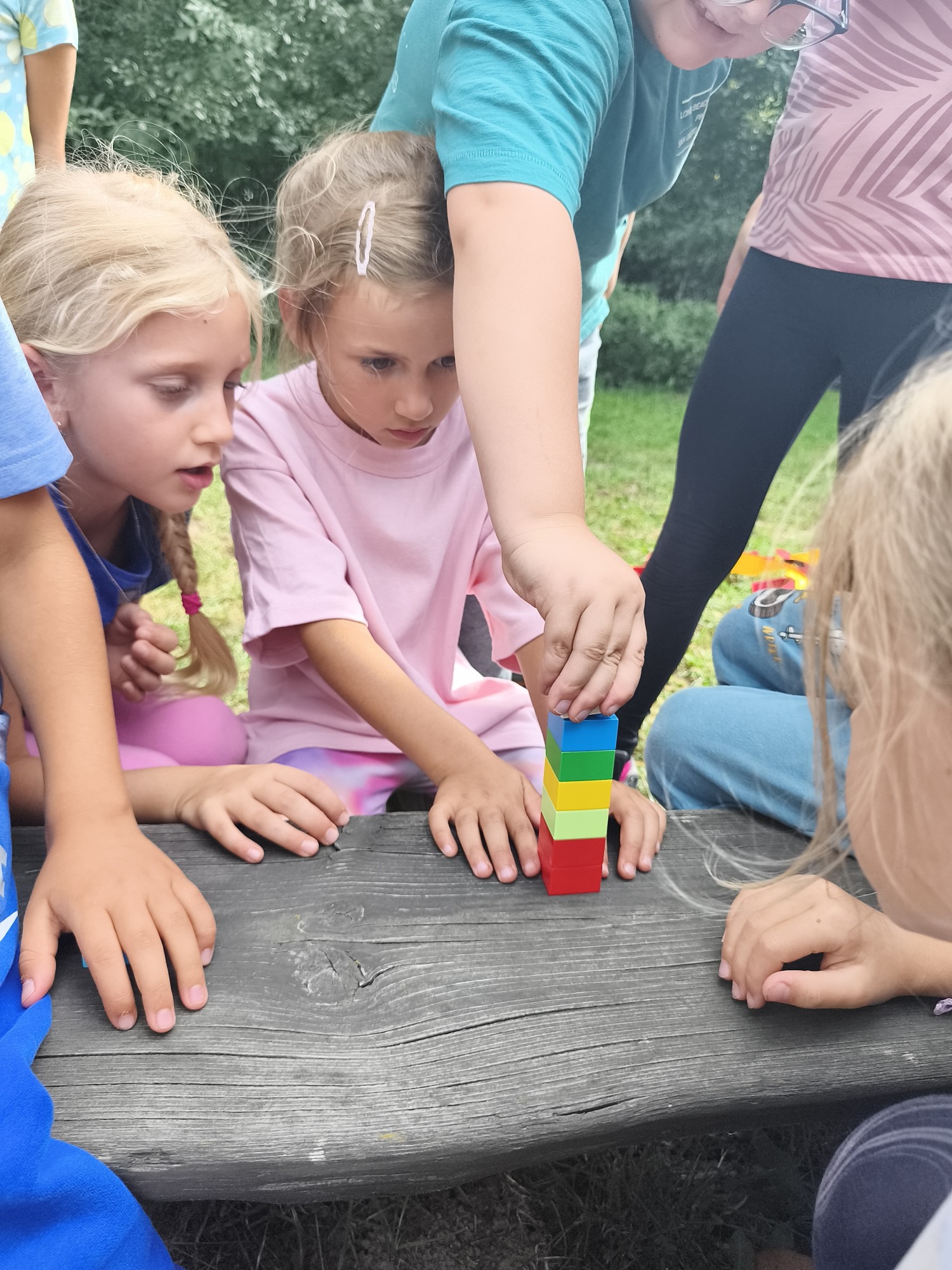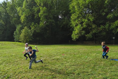 Paní psycholožka Vendula Slezáčková nám připravila pestrý program zaměřený na spolupráci, důvěru a týmového ducha. Nechyběla ani kruhová plachta, záchrana spolužáka, vajíčko na lžičce a další množství kreativních úkolů. Koordinaci a schopnost komunikace prověřil obyčejný míč, který děti musely společně vzít na procházku po Kunovském lese. Háček byl v tom, že ho musely přepravit pouze pomocí provázků. Za splněné úkoly následovala vždy odměna – odpočinek na dětském hřišti.