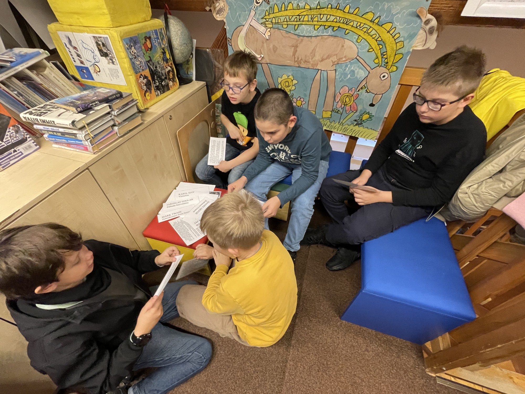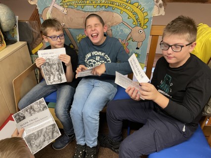 Na dnešní hodinu čtení se žáci 5. C vypravili do knihovny BBB, kde se zaměřili na dobrodružnou literaturu. S některými autory, jako jsou například Jaroslav Foglar, Otakar Batlička, Rudyard Kipling nebo Jack London, se již seznámili v ukázkách z jejich díla v čítance. V knihovně si našli více knih od těchto spisovatelů a doplnili ještě o Marka Twaina, Daniela Defoa a Karla Maye. Děti zaujalo i komiksové zpracování děl těchto významných autorů dobrodružné literatury. Hodina v knihovně rychle uběhla a dětem se líbila.