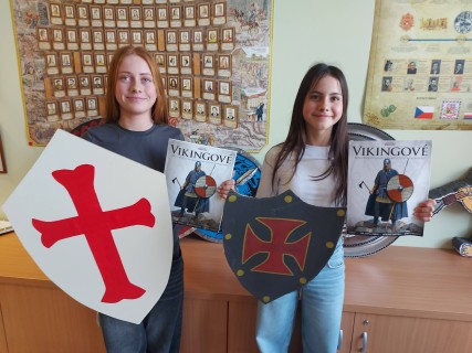 Během I. pololetí si žáci sedmých tříd pokusili vyrobit středověké a starověké štíty a erby.