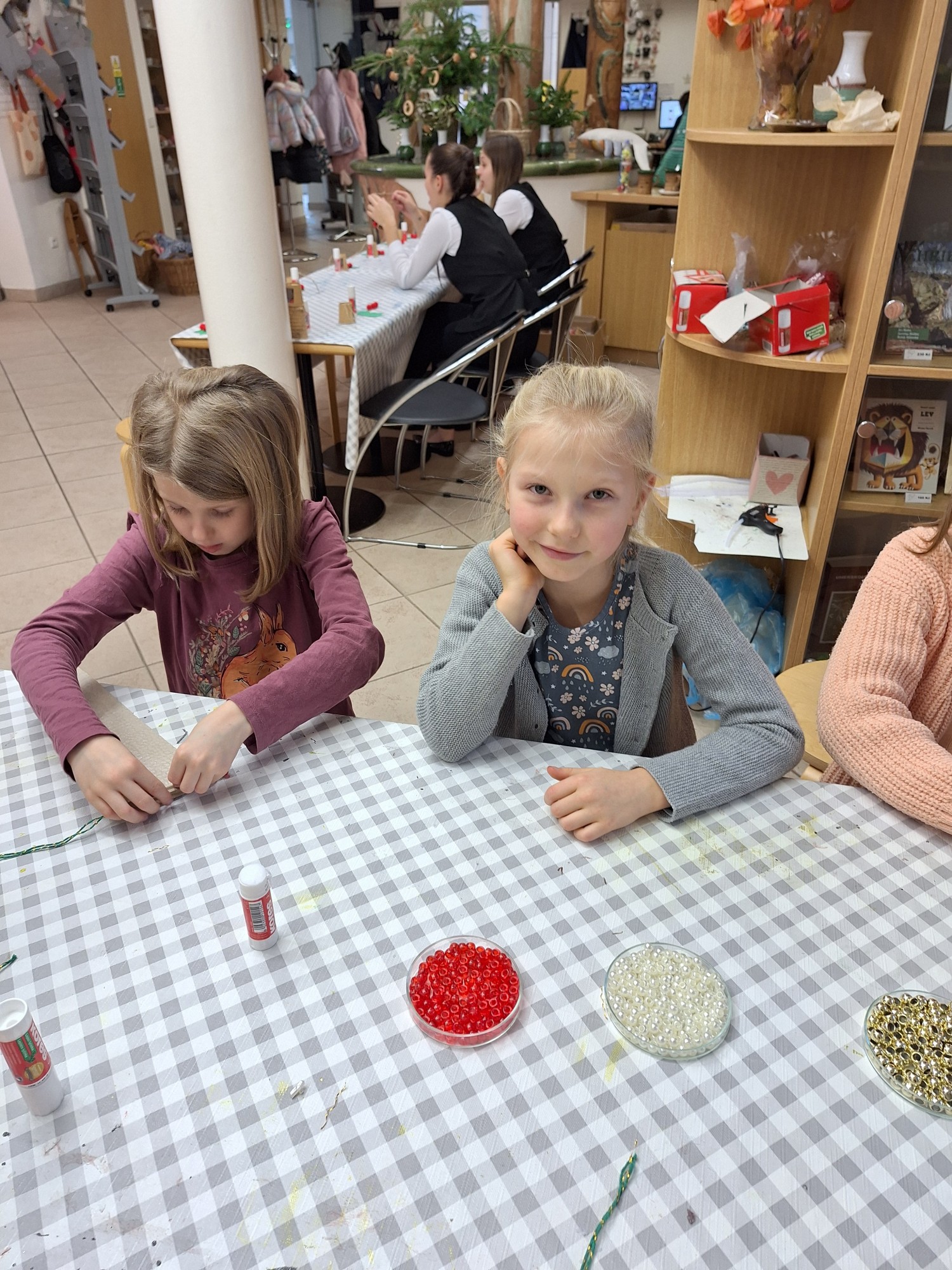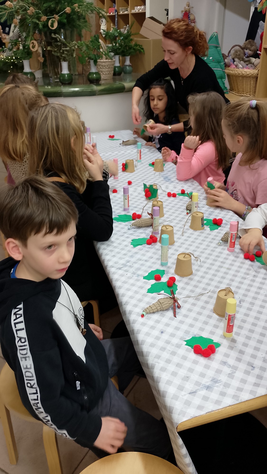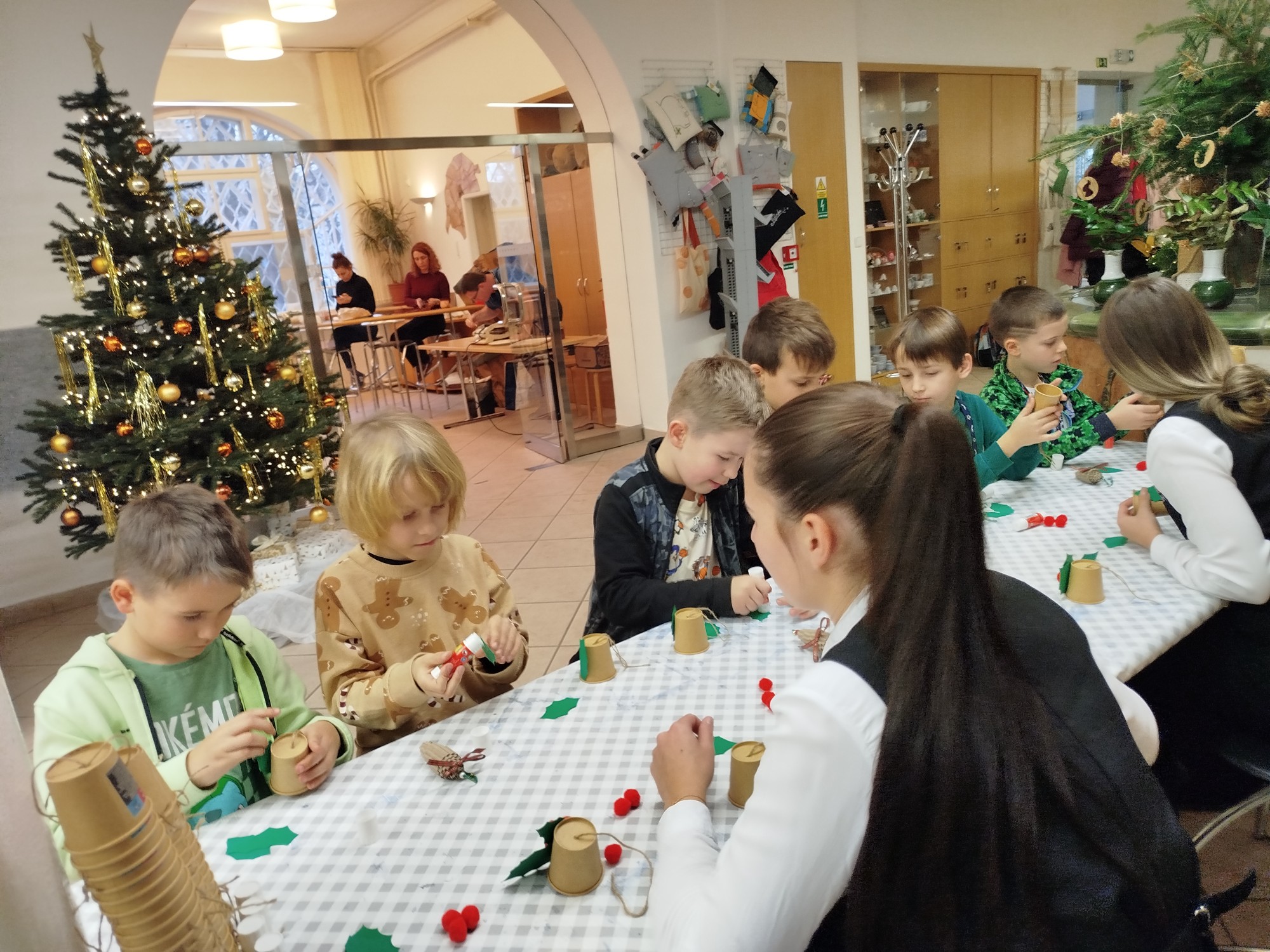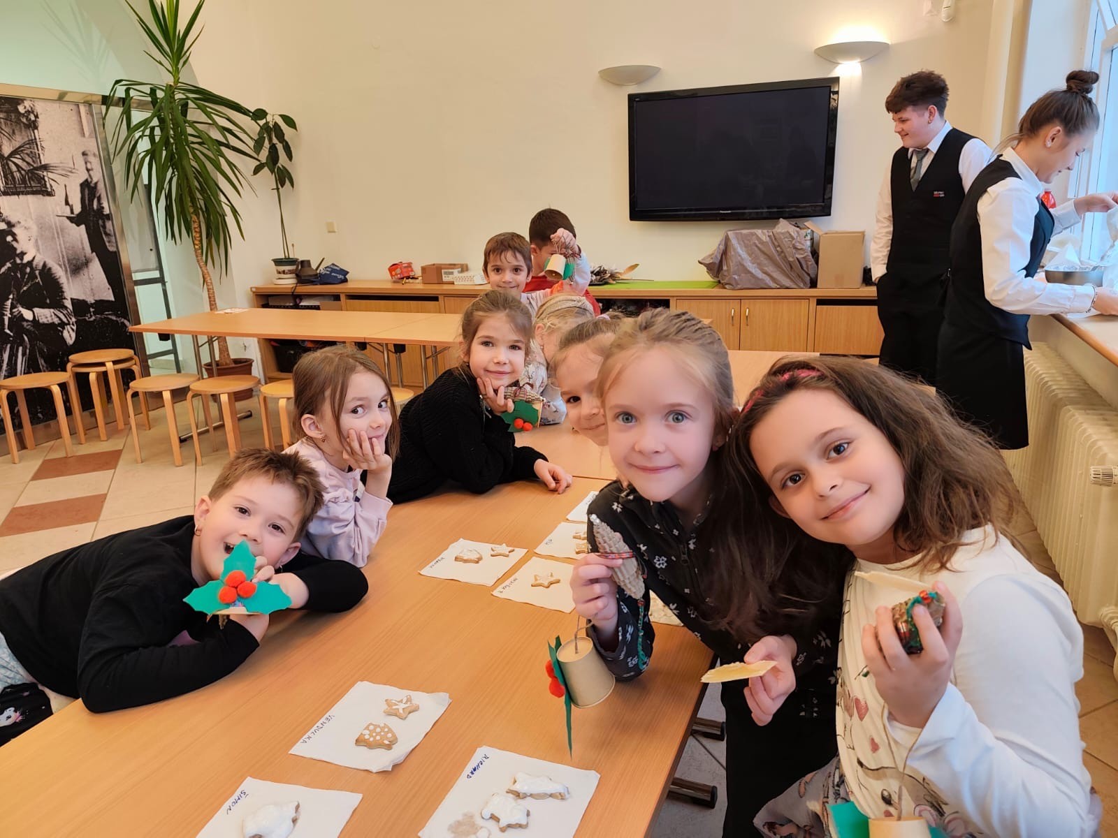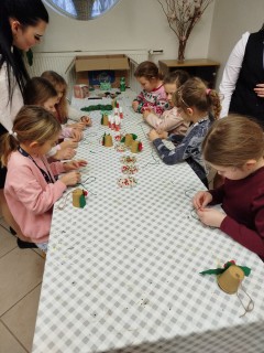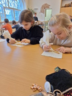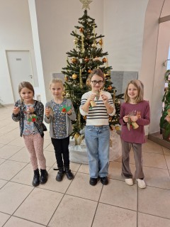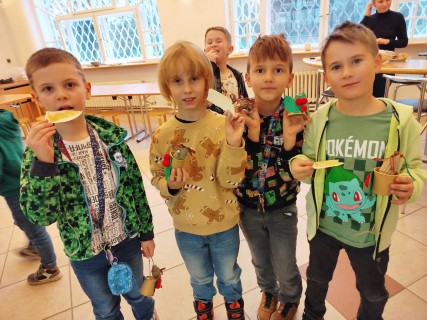 V rámci dílniček si žáci vyrobili zvoneček z papírového kelímku, vánoční ozdobu z kartonu a také si s chutí nazdobili perníčky. Za svou šikovnost byly odměněny tradiční oplatkou s medem. Po dokončení výrobků jsme si společně prohlédli výstavu loutek a dozvěděli se zajímavosti o starobylých řemeslech.