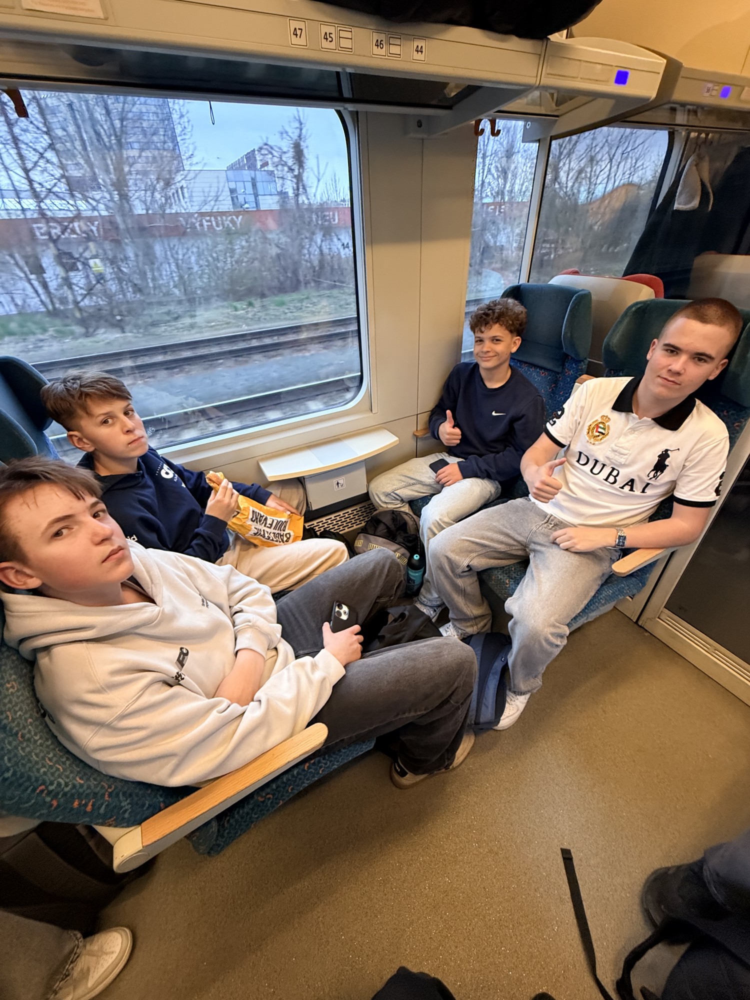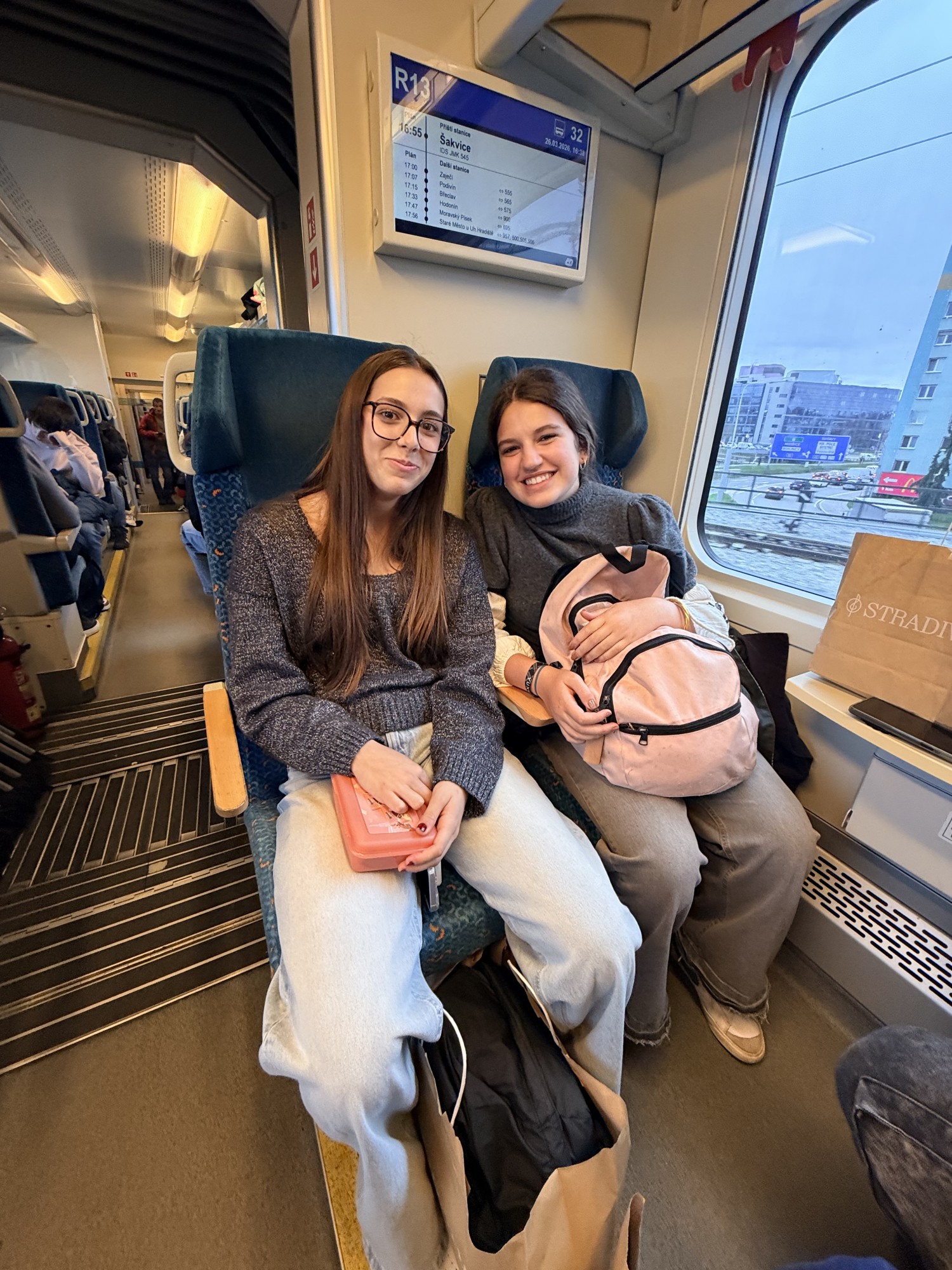 Dnešní den jsme s našimi žáky a jejich španělskými kamarády zahájili dalším společným dobrodružstvím. Brzy ráno jsme se vydali vlakem ze Starého Města do Brna. Počasí nám sice příliš nepřálo – byla zima, pršelo a foukal vítr – ale ani to nás neodradilo od krátké procházky centrem města.