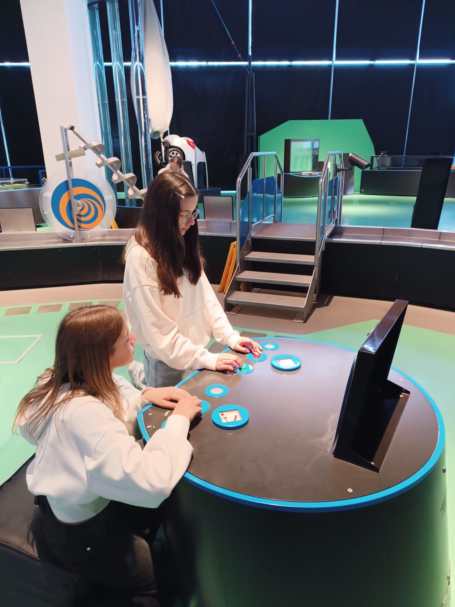Po programu jsme se přesunuli na oběd do místní jídelny, kde jsme si pochutnali na rýži s vepřovým masem na slanině. Posilněni jsme se poté vydali objevovat expozici science centra. Žáci si mohli vyzkoušet různé experimenty, interaktivní exponáty a na vlastní kůži objevovat fyzikální zákony. Mezi nejoblíbenější atrakce patřil dlouhý tobogán, model dusíkové rakety a vodní vír.