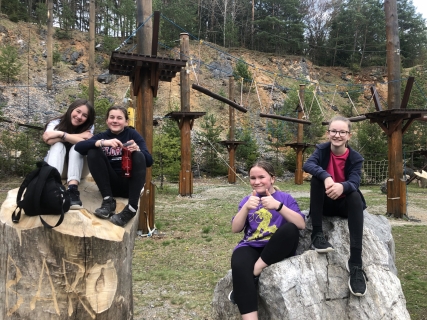 6.B si pro svůj školní výlet vybrala malebné prostředí Moravského Krasu. Autobusem jsme přijeli až k propasti Macocha, kde jsme byli také ubytováni. Odtud jsme se vydali na pěší túru směrem k areálu Velká Dohoda. Odvážnější z nás vyzkoušeli lanový park na deseti kůlech, s deseti horními a 7 nízkými překážkami, postavený na dně lomu pro děti i dospělé. Dále jsme prozkoumali okolní přírodu a dokonce jsme měli možnosti nahlédnout i do místního terénního pracoviště speleologů. Poté už nás čekala cesta zpět na Chatu Macocha.