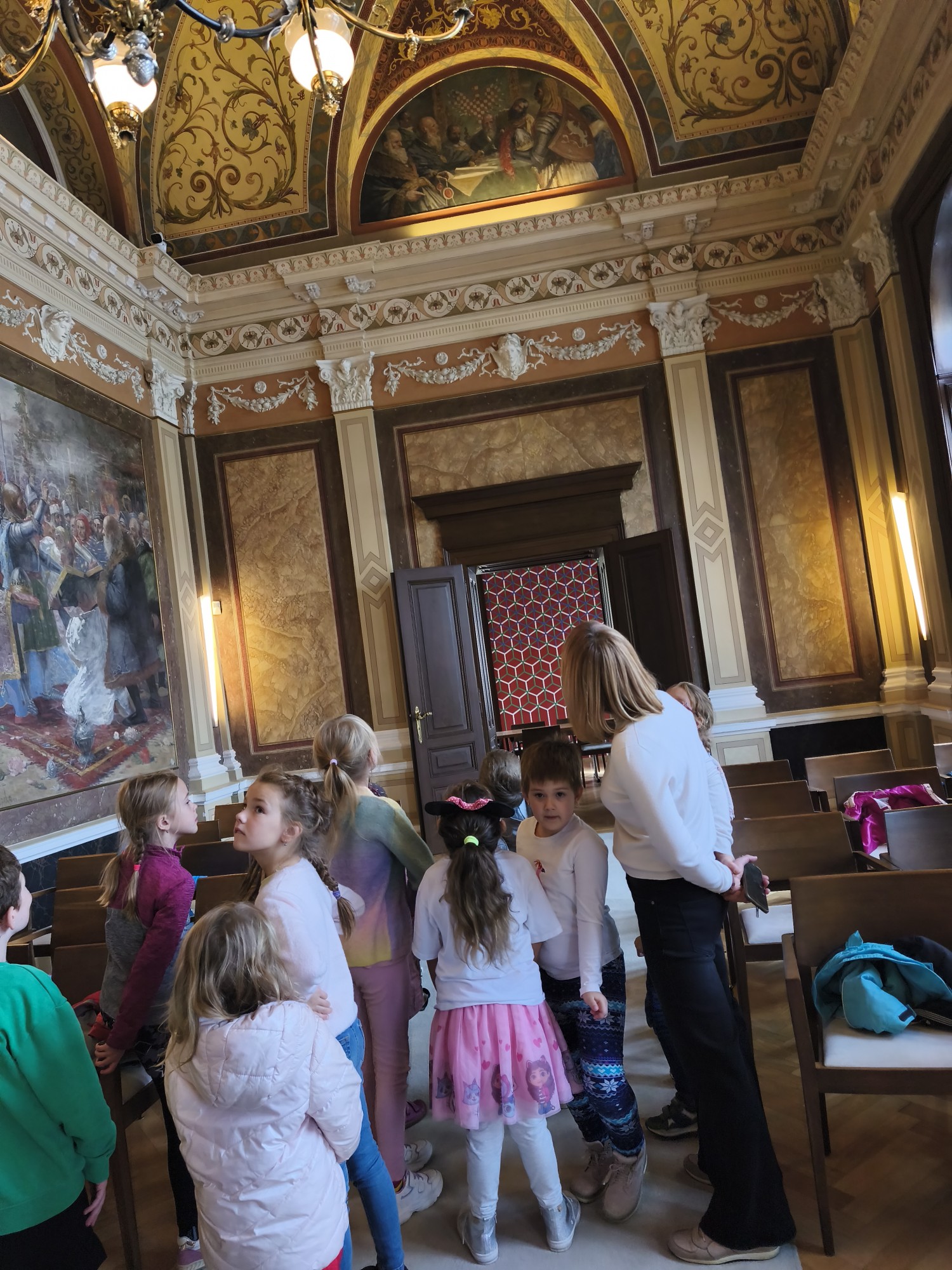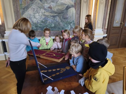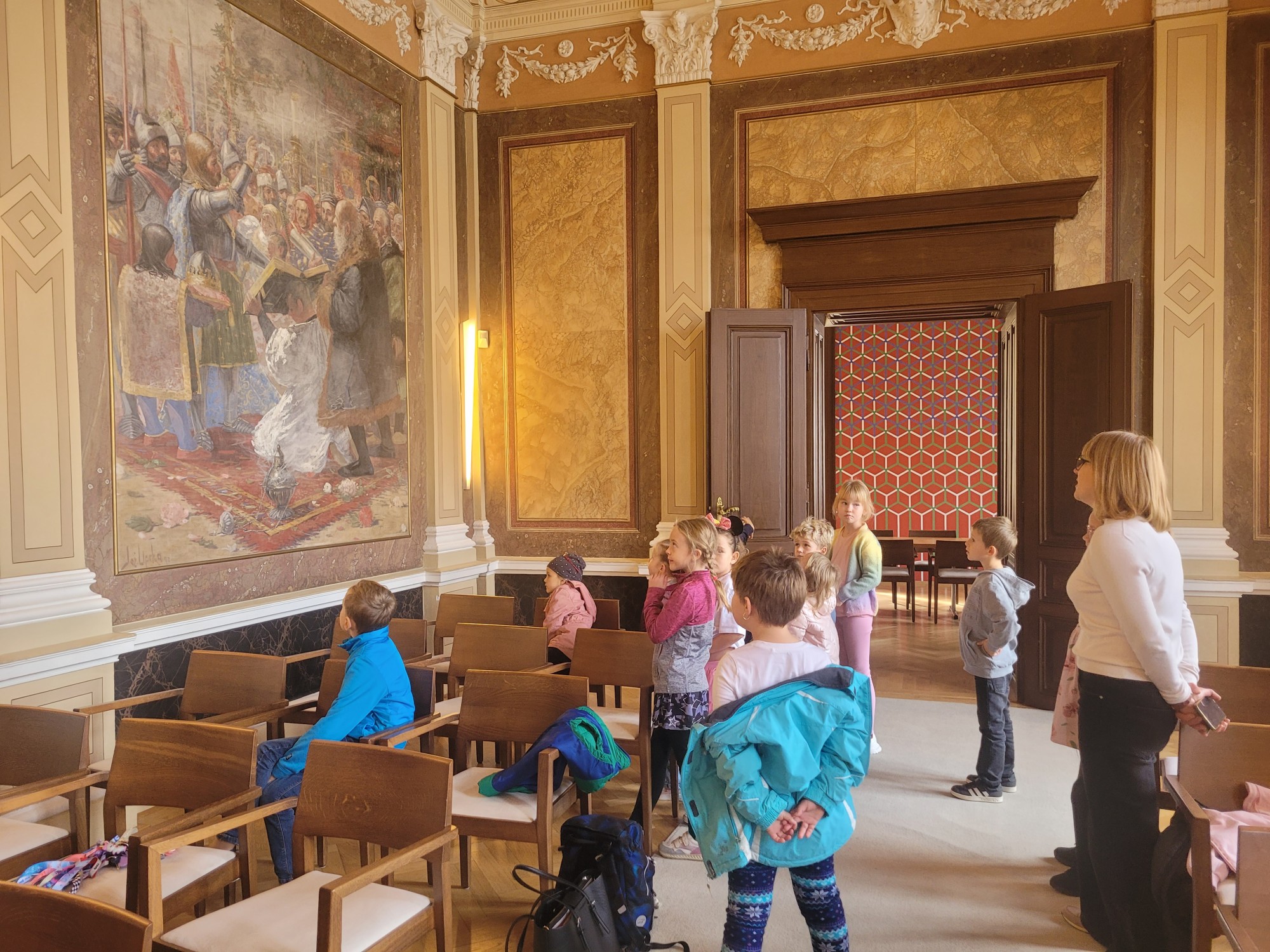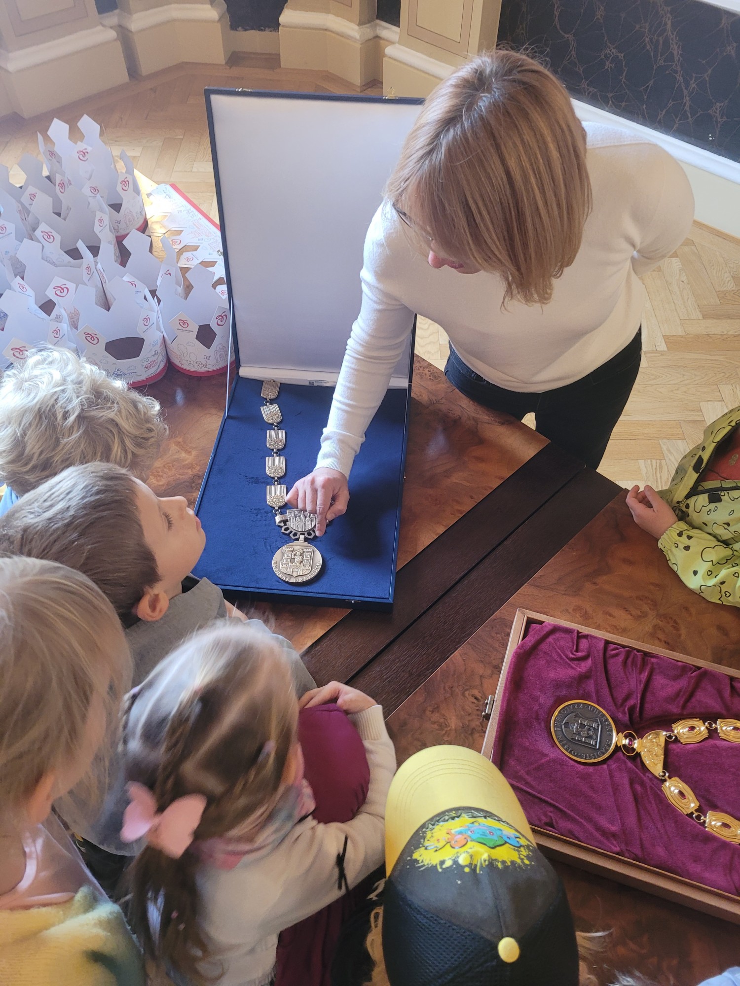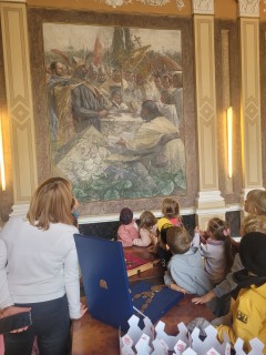 V úterý 14. října se naši prvňáčci z badatelského kroužku vydali na exkurzi do obřadní síně městského úřadu v Uherském Hradišti. Děti se dozvěděly, k čemu obřadní síň slouží a jaké slavnostní události se v ní konají. Poutavě poslouchaly o vítání občánků, svatbách i slavnostním předávání maturitních vysvědčení. Děti si mohly prohlédnout slavnostní stůl, státní znak i starostenský řetěz. Exkurze byla nejen poučná, ale i velmi příjemná. Děti odcházely s úsměvem a novými zážitky. Děkujeme paní Bc. Veronice Šarátkové za milé přijetí a trpělivé odpovědi.