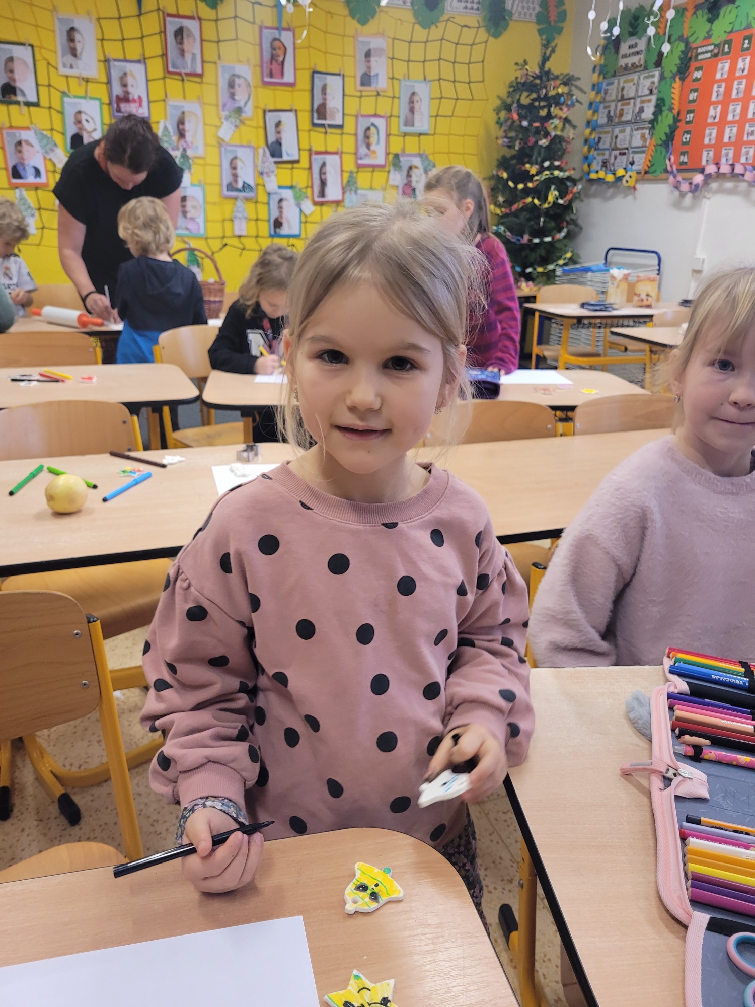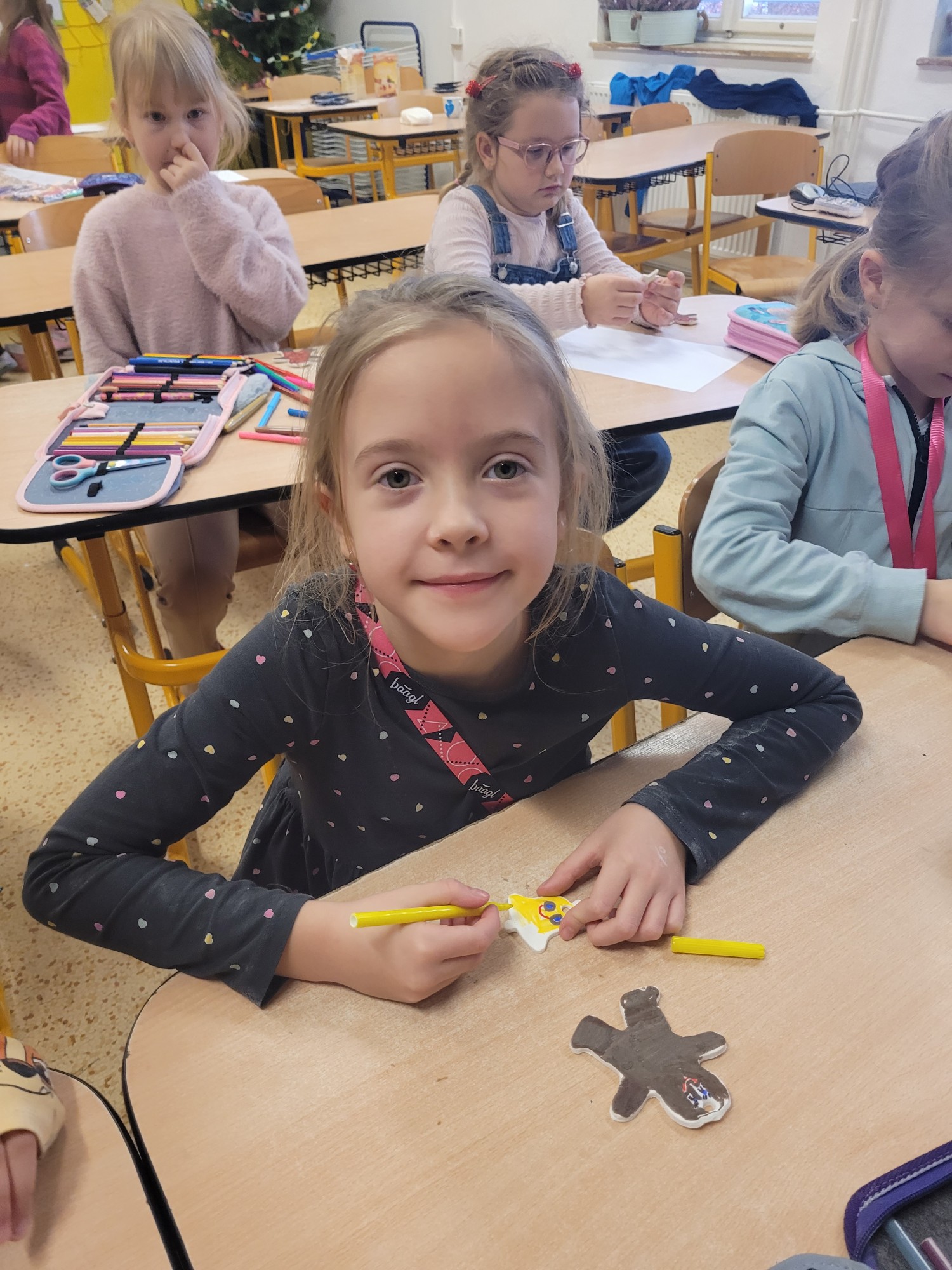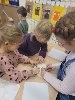 V badatelském kroužku jsme se pustili do tvořivé práce se studeným porcelánem. Děti se nejprve seznámily s tím, co studený porcelán je a z jakých surovin se vyrábí. Společně jsme zkoumali jeho vlastnosti, tvárnost a chování při schnutí. Malí badatelé si vyzkoušeli hnětení, tvarování i spojování jednotlivých částí. Cílem našeho bádání bylo vytvořit originální vánoční ozdoby. Vznikaly hvězdičky, andílci, stromečky i další nápadité tvary. Děti pracovaly s nadšením, spolupracovaly a navzájem si pomáhaly. Při práci rozvíjely jemnou motoriku, kreativitu i trpělivost. Hotové ozdoby jsme po zaschnutí dozdobili barvami. Výsledné výrobky udělaly radost dětem a krásně navodily vánoční atmosféru ve škole.