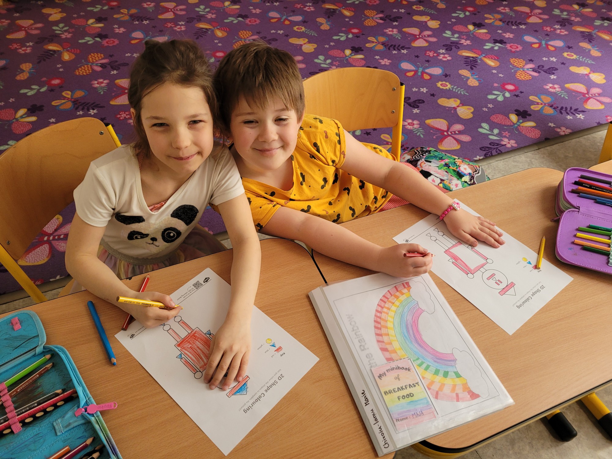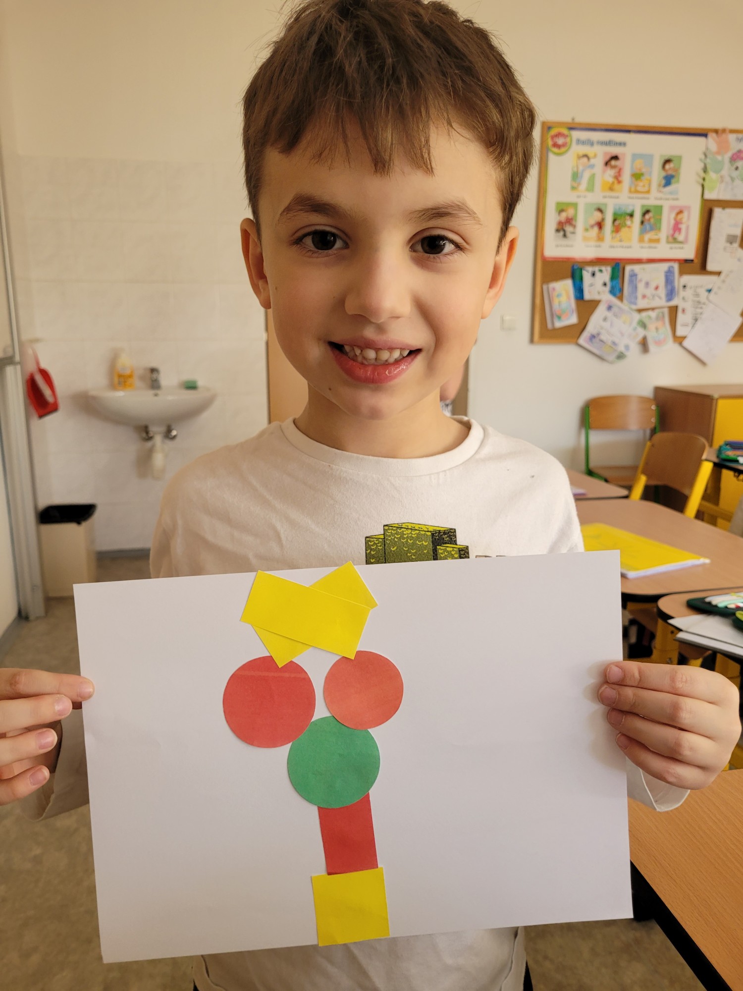 Žáci 1. ročníku se v rámci Cambridge přípravky věnovali tématu Shapes. Děti se naučily pojmenovat základní tvary jako circle, square, triangle a rectangle. Nová slovíčka si procvičovaly hravou formou pomocí her, obrázků i pohybových aktivit. Velkým přínosem bylo propojení angličtiny s výtvarnou činností, kdy žáci tvořili obrázky z různých tvarů. Hodiny byly pro děti zábavné a zároveň rozvíjely jejich jazykové i kreativní dovednosti.