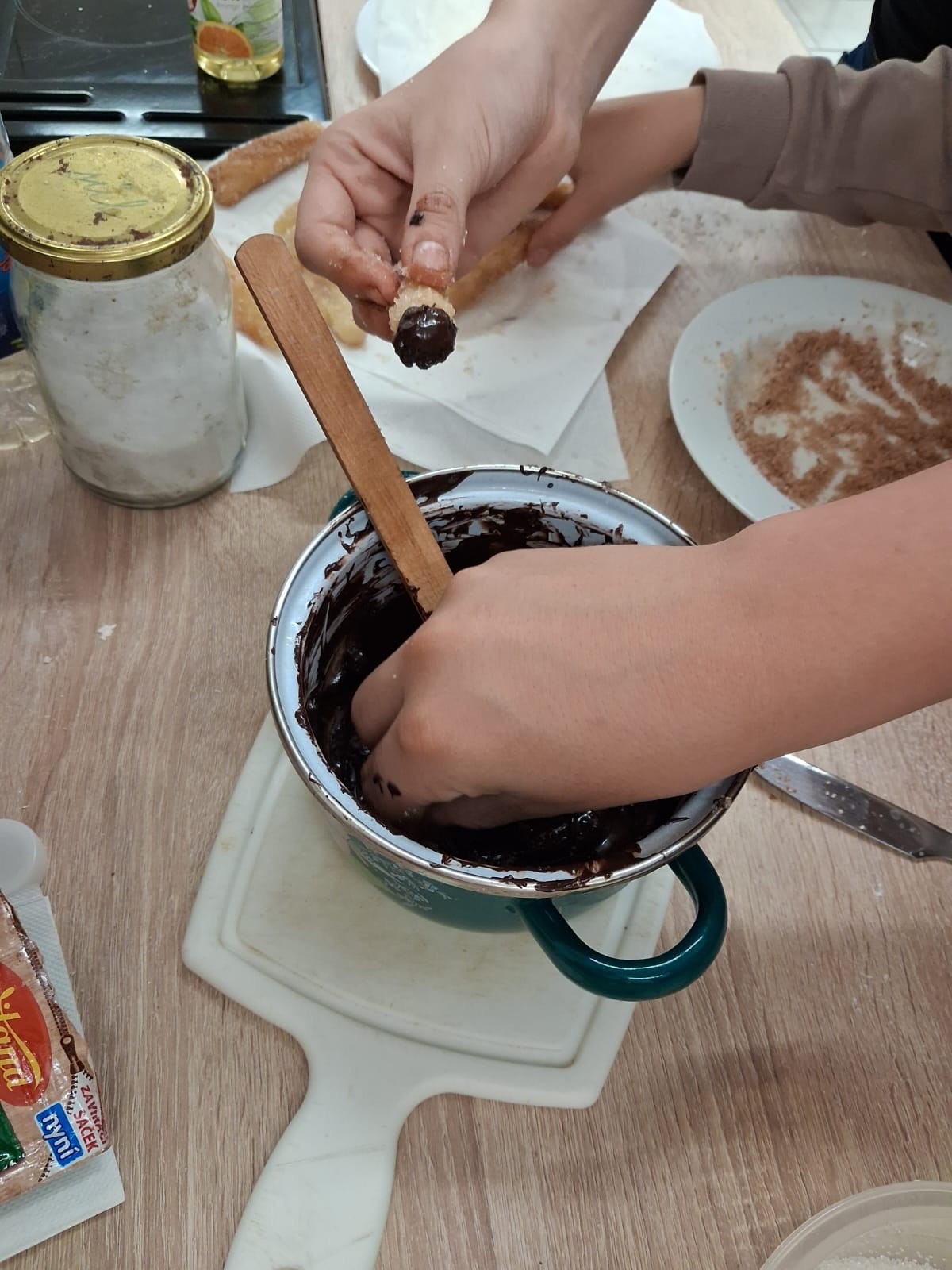 špetka soli, po usmažení se obalí v cukru podle chuti i ve skořici a namáčí se do čokolády, tedy nejen