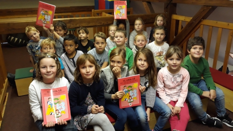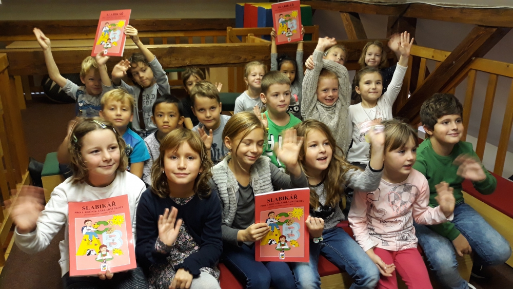 Poté si žáci prohlédli svůj nový Slabikář, který právě dostali a začnou ve škole číst.