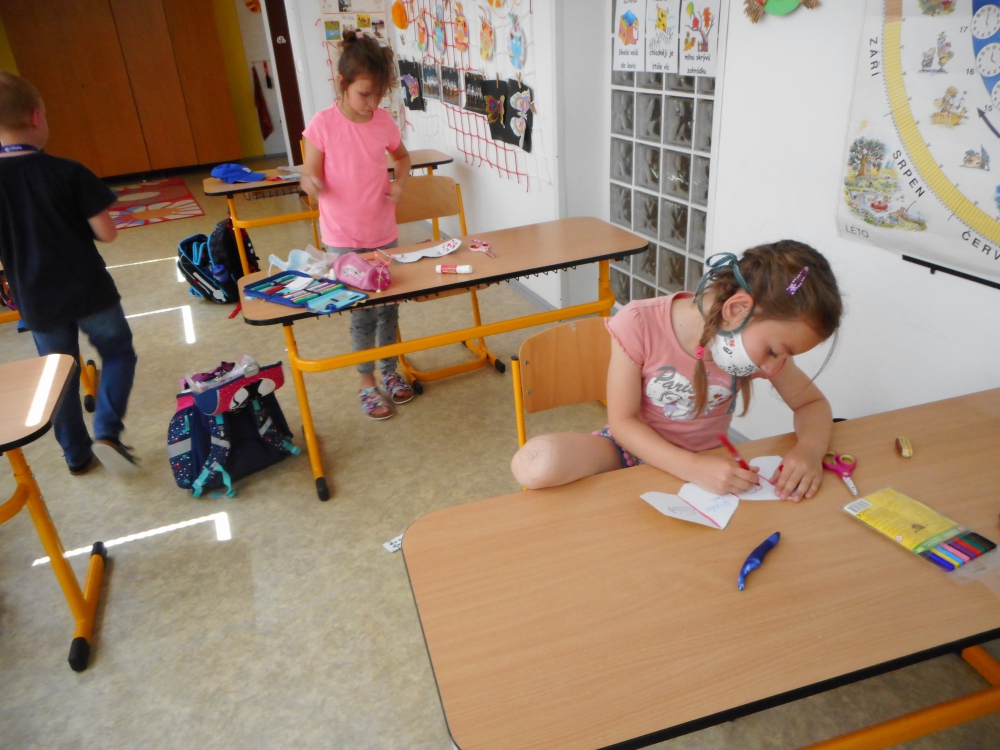 Děti z 1.C ale na své milé tatínky nezapomněly. Vyrobily pro ně dáreček, přání a při vyplňování pracovního listu si tatínka dlouze promítaly v mysli a vzpomínaly, jaké má oči, co má nejraději k jídlu, co nejraději dělá … a společně přejí a vzkazují: