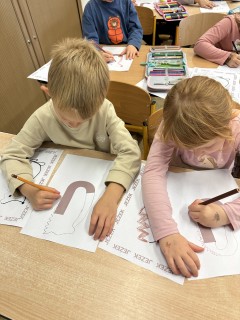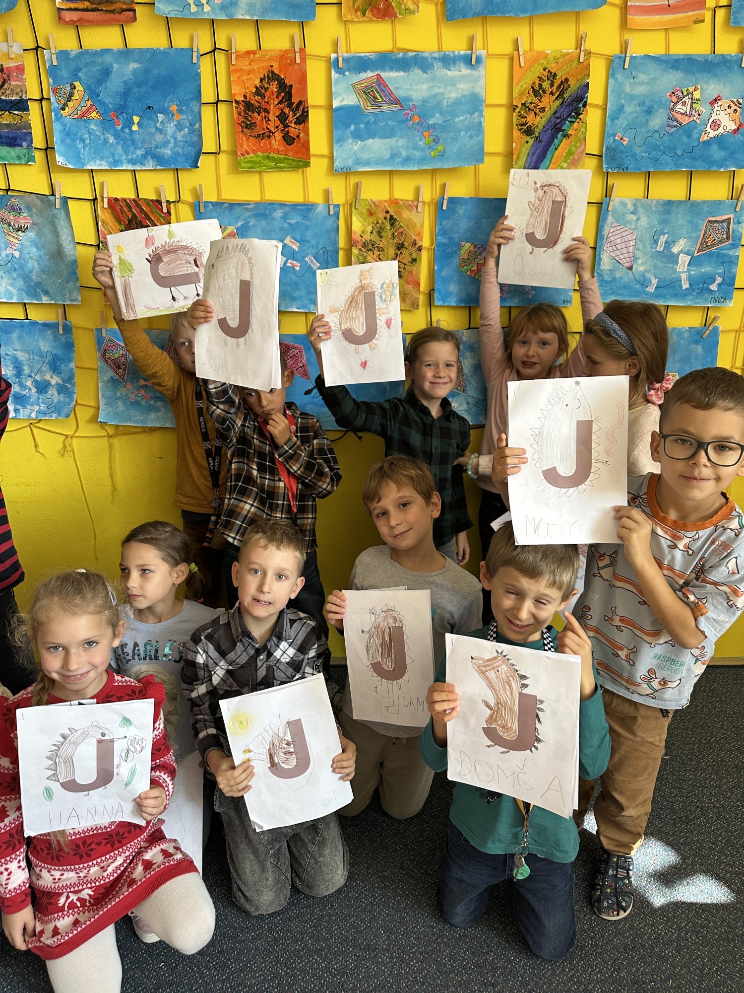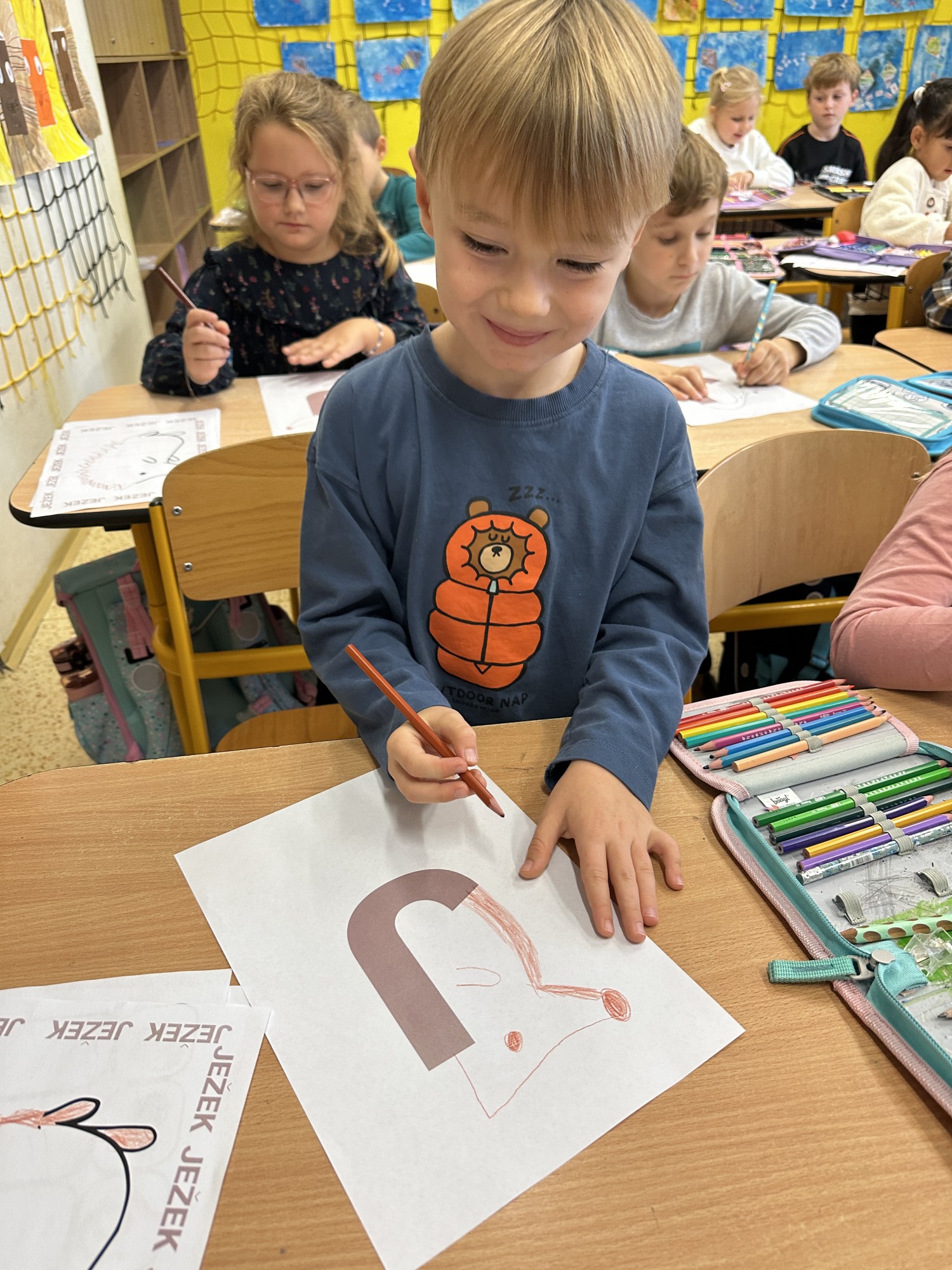 Během dne si žáci procvičovali ježčí grafomotoriku. Dostali také kreativní úkol – nakreslit ježka z písmene J, což se jim podařilo s velkou fantazií a nadšením.