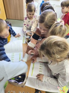 Některá písmenka nám v pralese sice zůstala, ale k našim slabikářům jsme se nakonec úspěšně probojovali. A protože si každý zachránce zaslouží odměnu, mohly si děti svůj nový díl označit vlastním razítkem, aby bylo jasné, komu patří. Musím všechny pochválit! Do úkolu se pustily s nadšením a energií, která mě vždycky potěší. Už teď se těším, jaké další dobrodružství nás čeká příště.