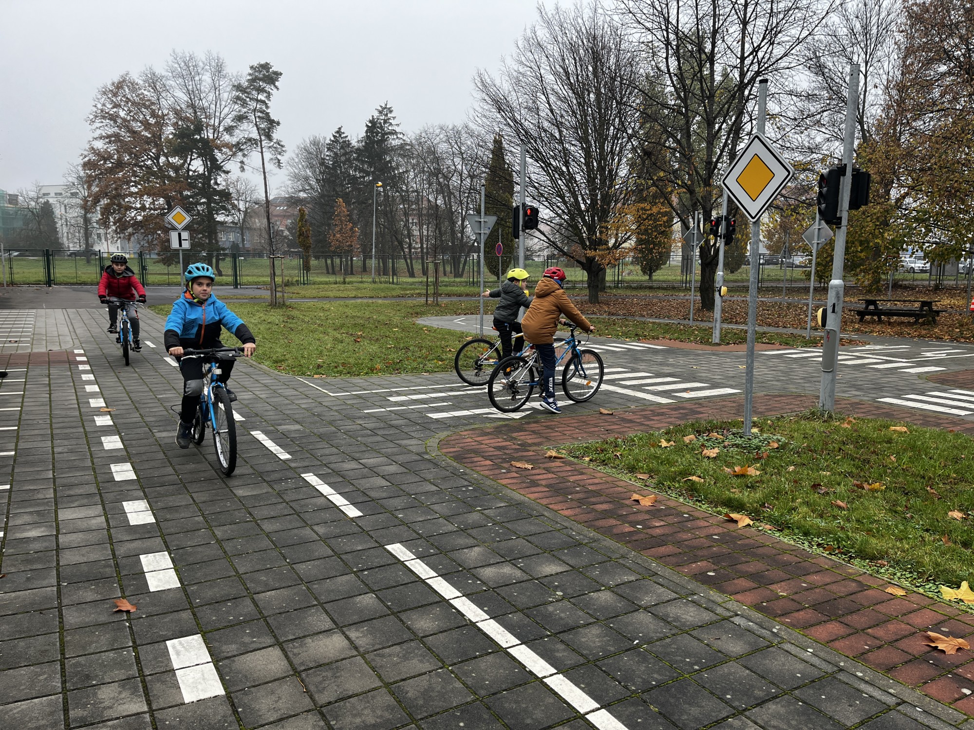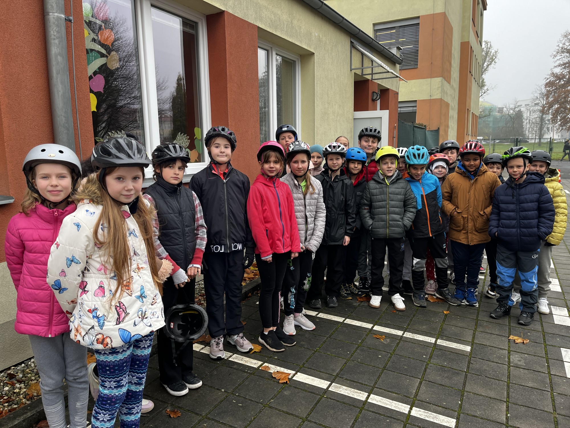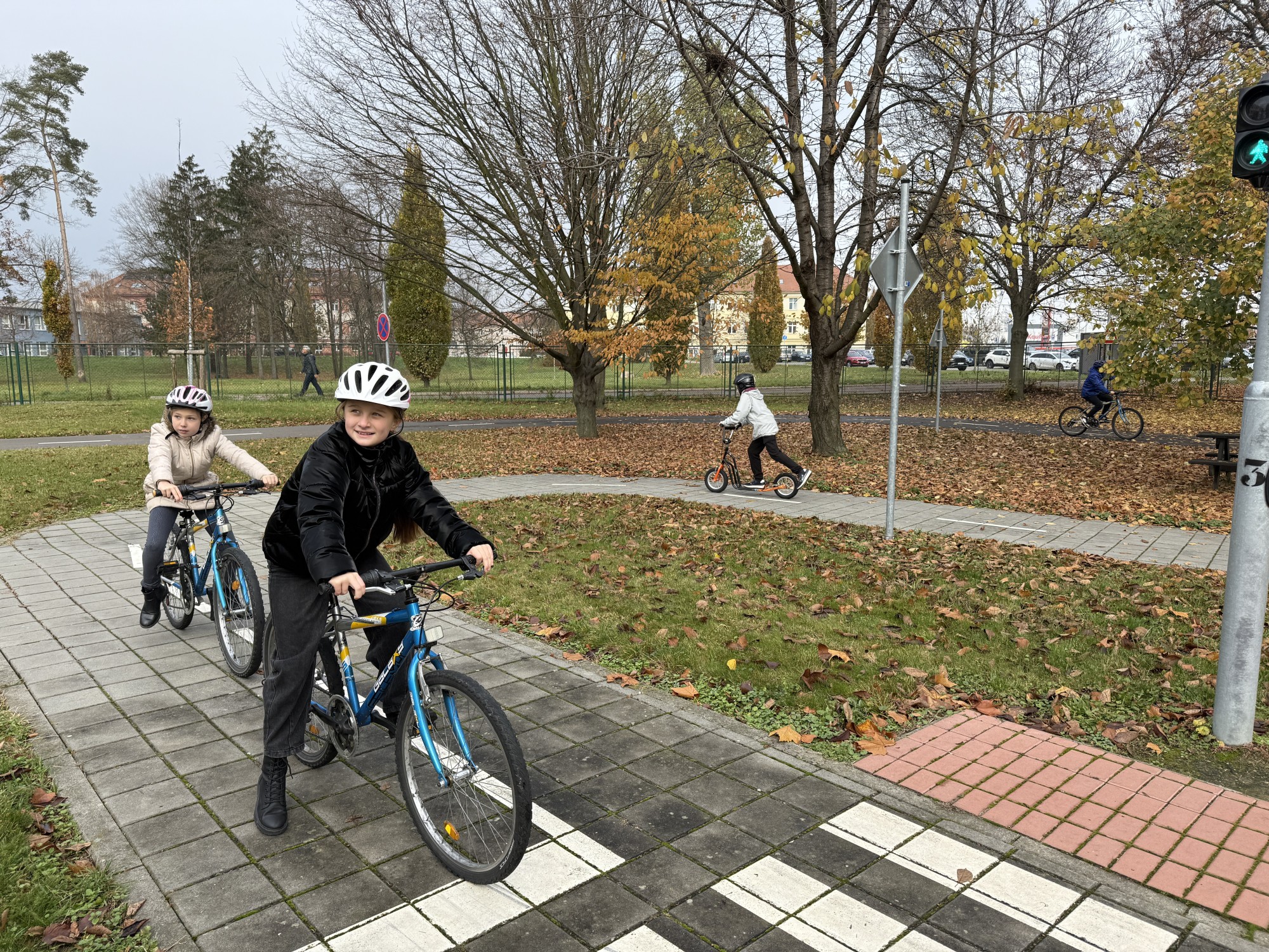 I když se může zdát, že listopad nabádá, abychom se raději s žáky schovali někam dovnitř a výuka probíhala pěkně v teple - nejlépe u krbu v knihovně s knížkou, žáci čtvrtých tříd to udělali přesně naopak. Tento týden měli výuku odlišnou. V chladném počasí se hned ráno vydali do míst, kde probíhá dopravní výchova. Nejdřív zhlédli videa, která se týkala bezpečnosti jízdy na kole a povinného vybavení, které na kole musí každý cyklista mít. Pak se pokračovalo připomenutím dopravních značek a poslední část byla věnována situacím na silnici.