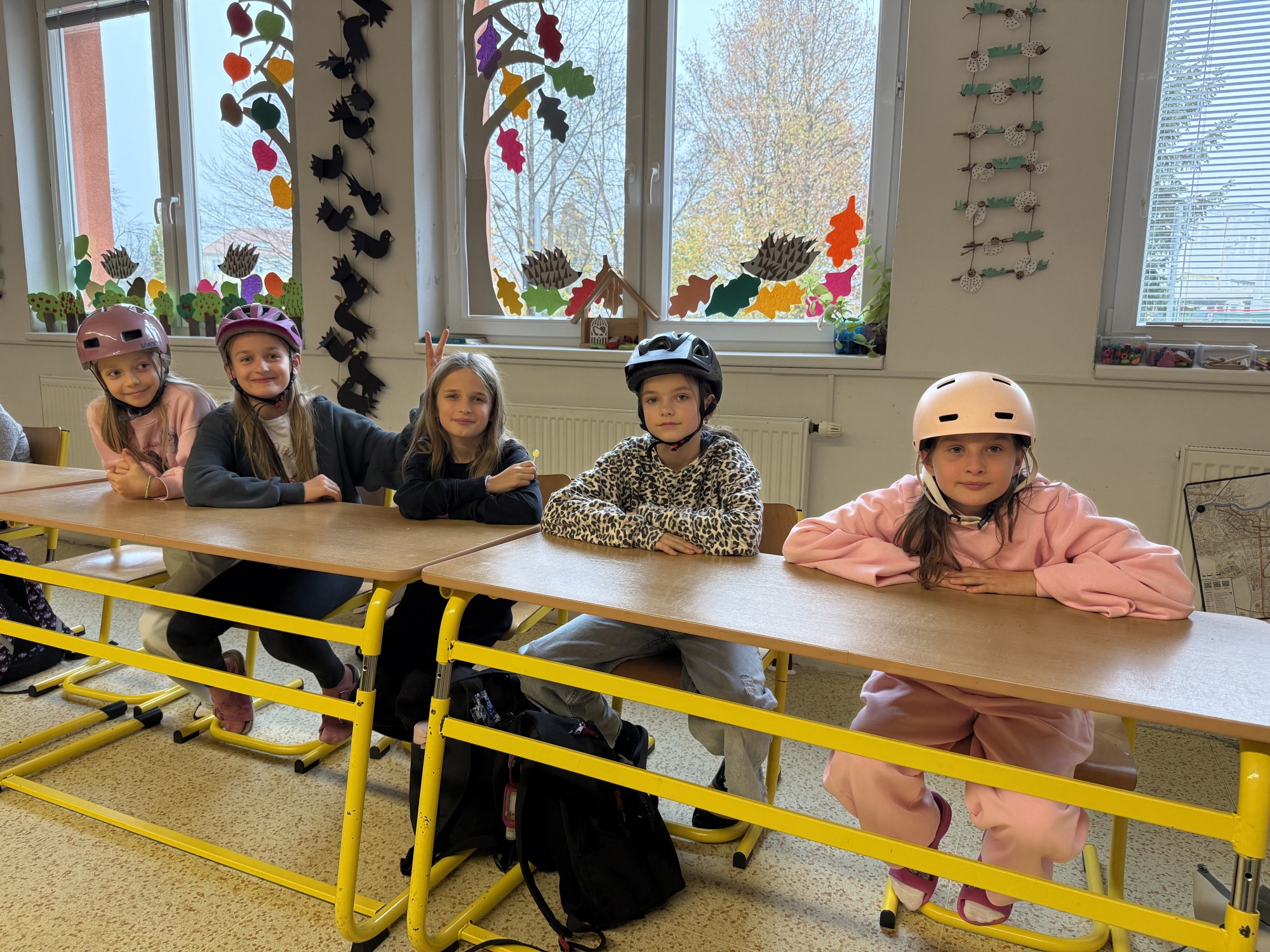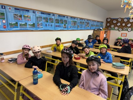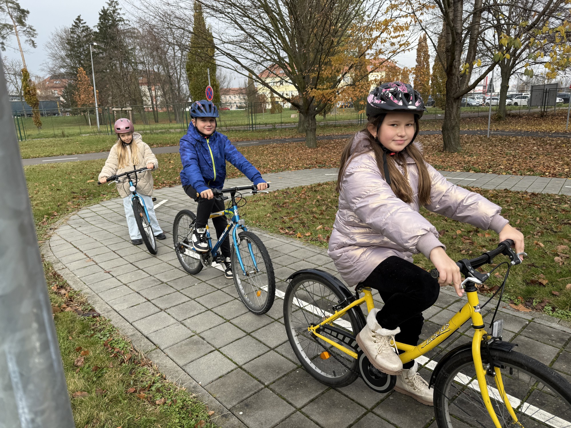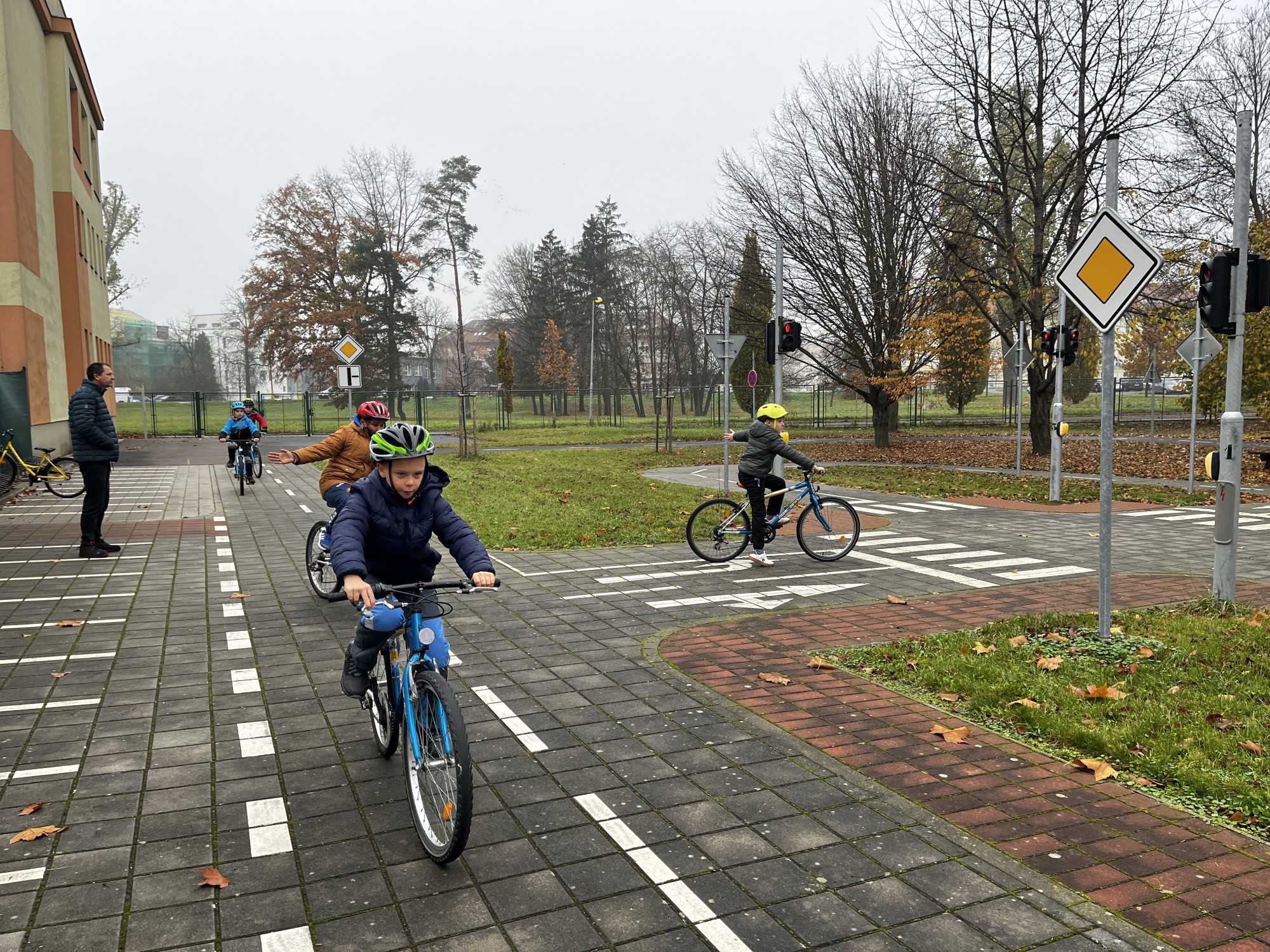 I když se může zdát, že listopad nabádá, abychom se raději s žáky schovali někam dovnitř a výuka probíhala pěkně v teple - nejlépe u krbu v knihovně s knížkou, žáci čtvrtých tříd to udělali přesně naopak. Tento týden měli výuku odlišnou. V chladném počasí se hned ráno vydali do míst, kde probíhá dopravní výchova. Nejdřív zhlédli videa, která se týkala bezpečnosti jízdy na kole a povinného vybavení, které na kole musí každý cyklista mít. Pak se pokračovalo připomenutím dopravních značek a poslední část byla věnována situacím na silnici.