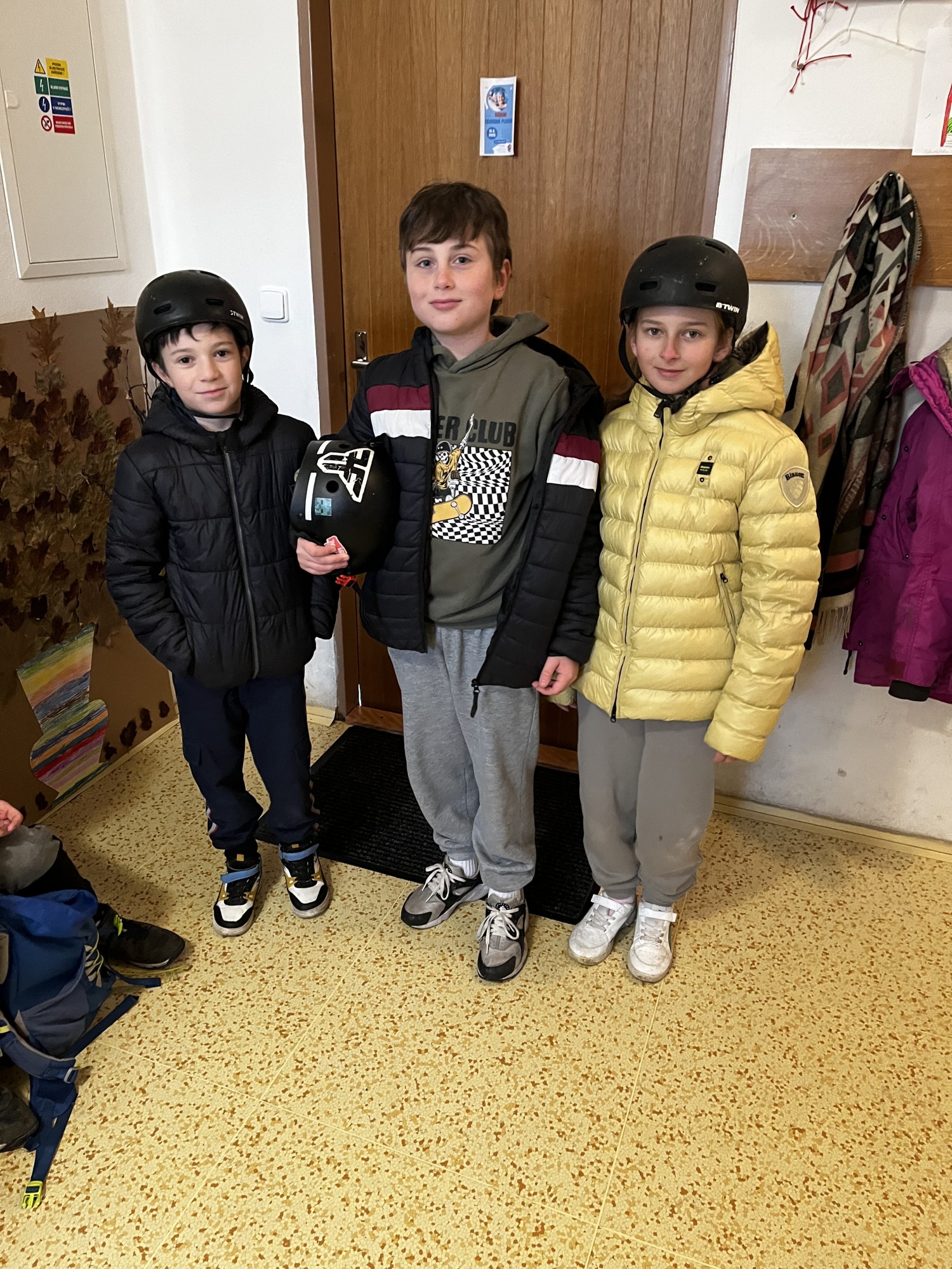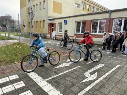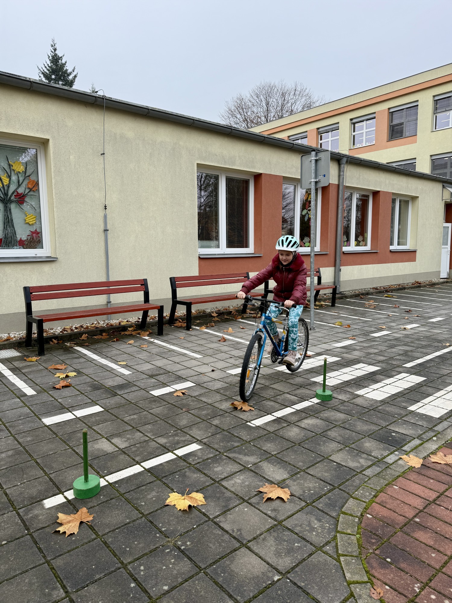Po zvládnutí teorie následovala praxe. Teplé oblečení, cyklistická přilba a kolo. Všichni se těšili na to, až předvedou svůj cyklistický um. Začalo se jízdou zručnosti - potřeba umět bezpečně zabrzdit, projet slalom, přejet překážku. Ač se to na první pohled nezdálo, pro někoho to bylo opravdu náročné. Ale to vůbec nevadí, žádný učený z nebe nespadl. Všichni po této zkoušce dostali prostor na trénink.