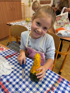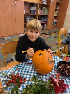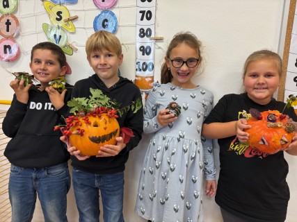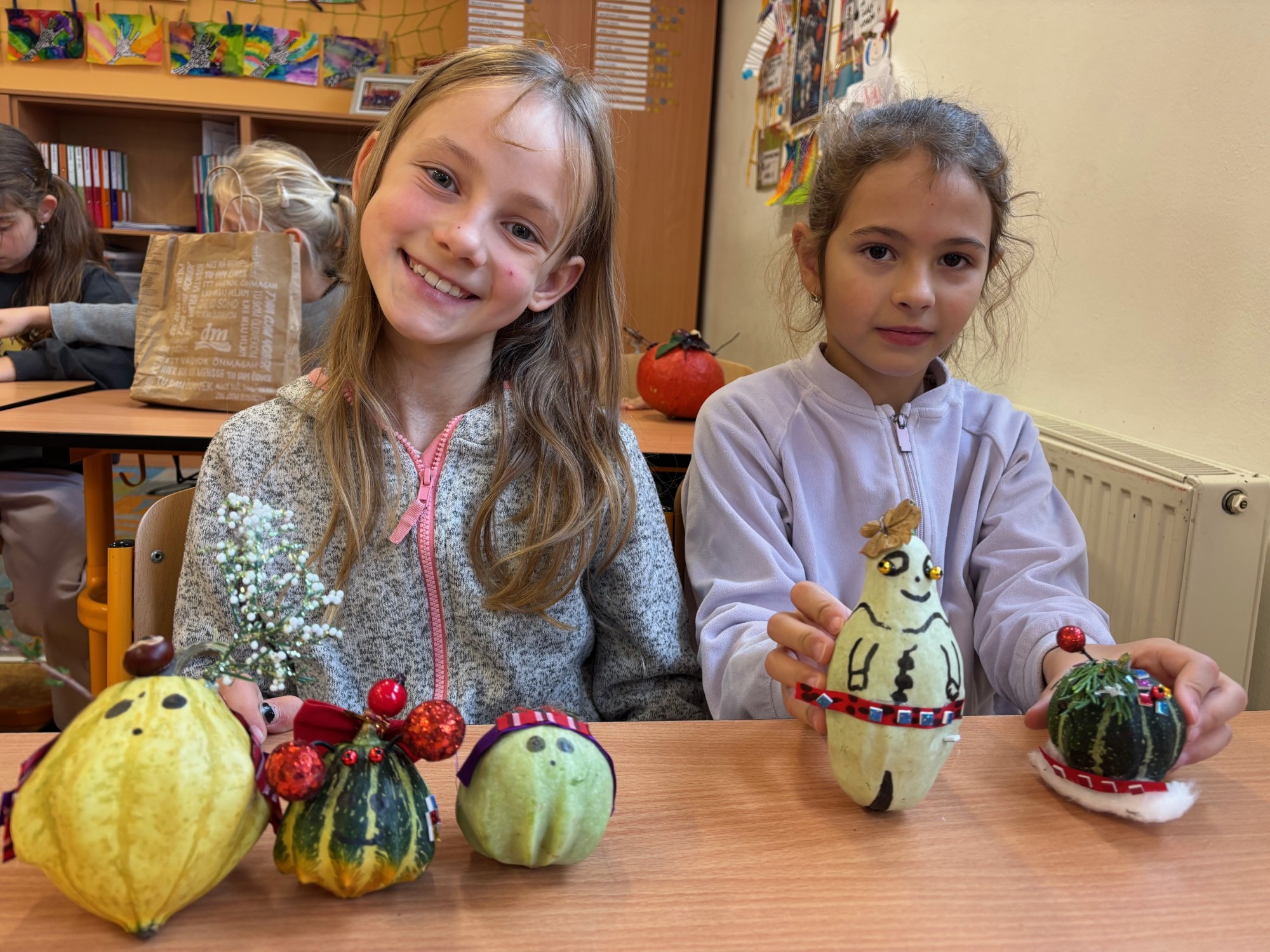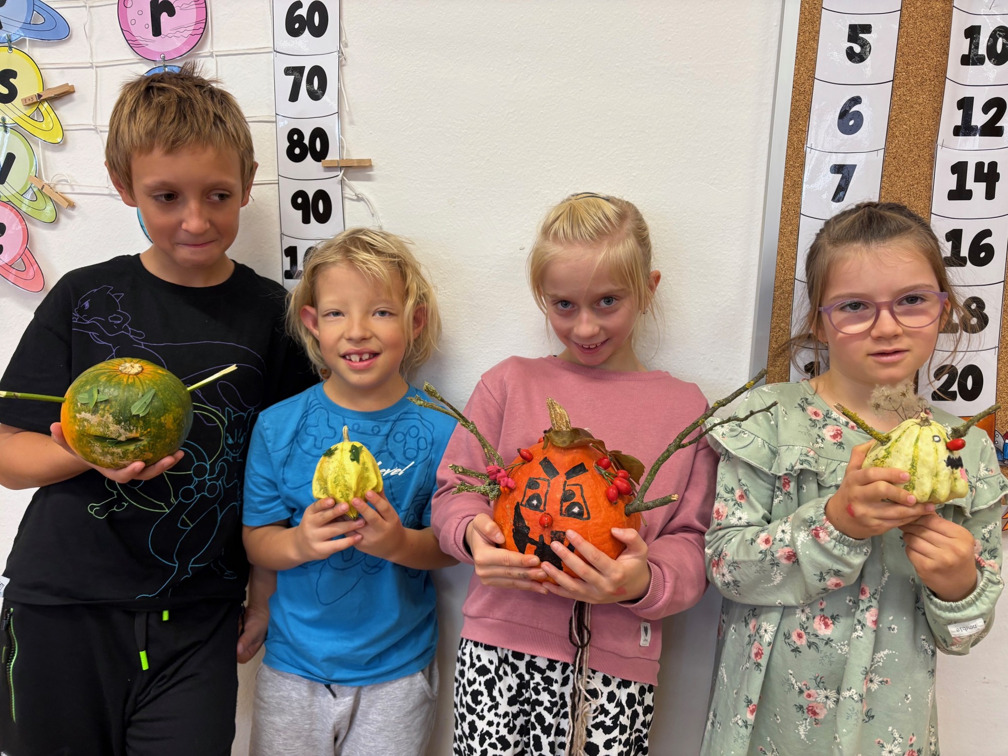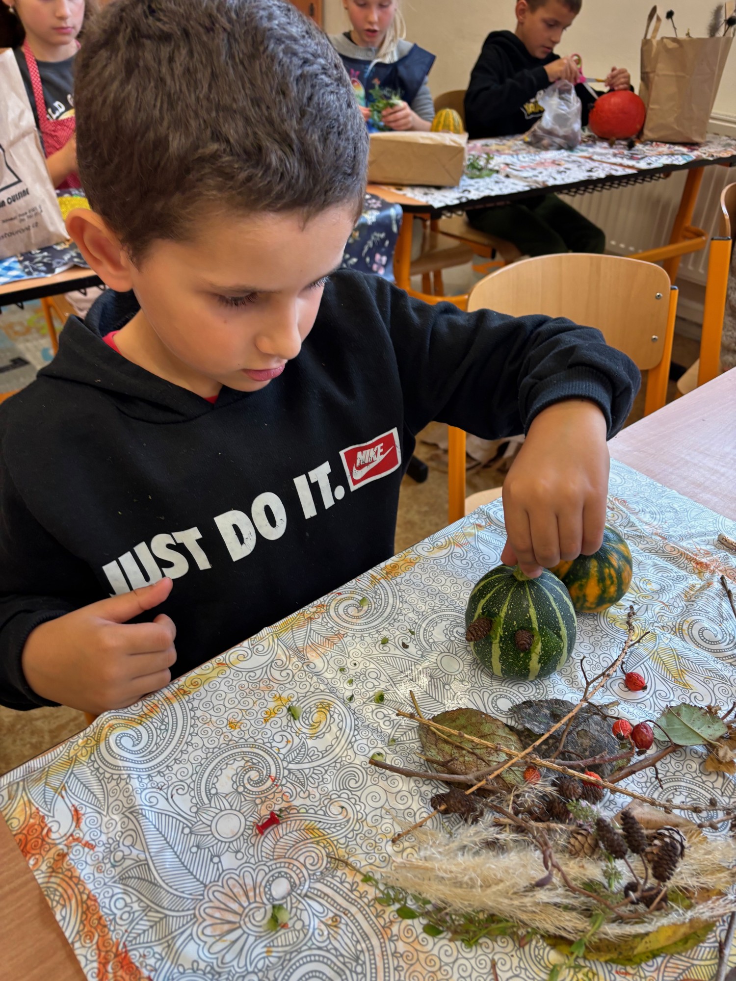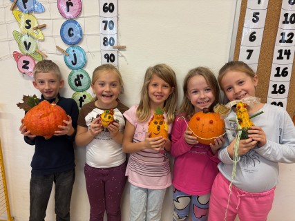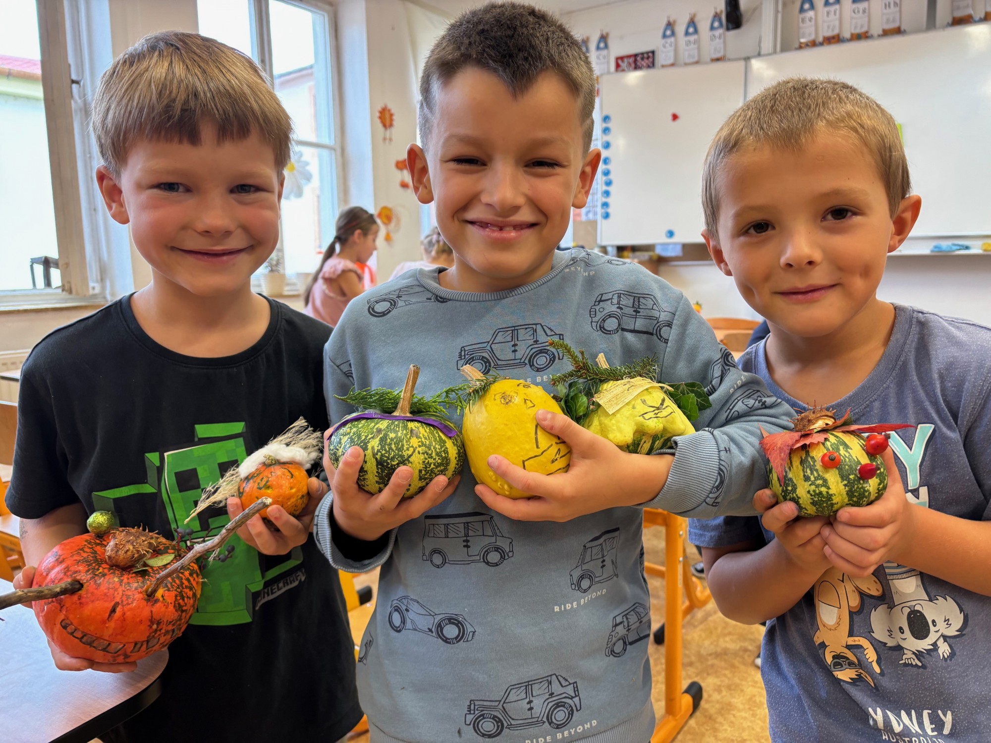 Podzimní atmosféra zavítala i do třídy 2.A, kde se uskutečnilo veselé a tvořivé dýňobraní. Děti se pustily do zdobení dýní pomocí přírodnin.