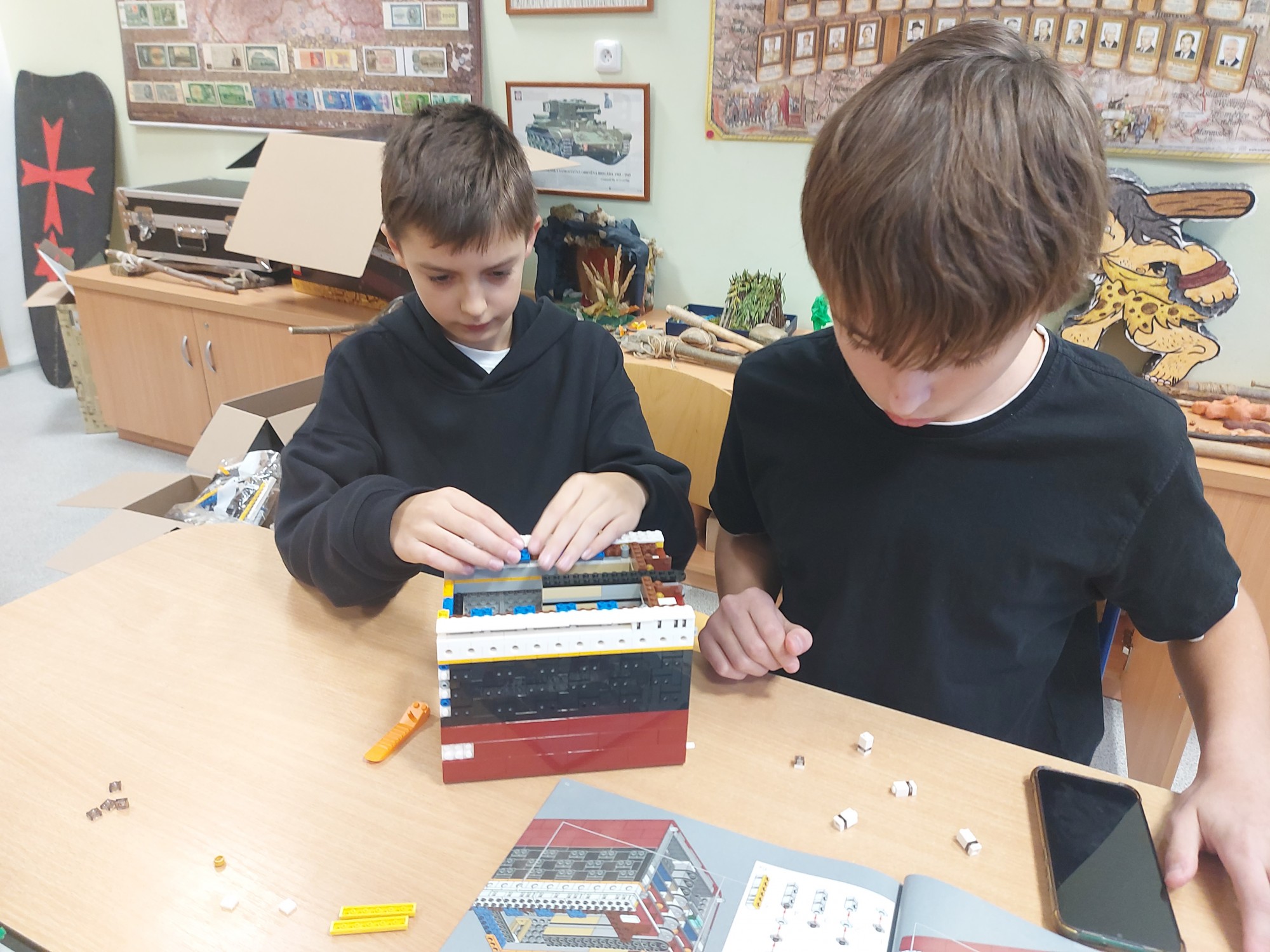 Patrik Čevela z 7.A začal stavět lego TITANIC. Patrikovi začali pomáhat kluci z 5.A a 9.C.