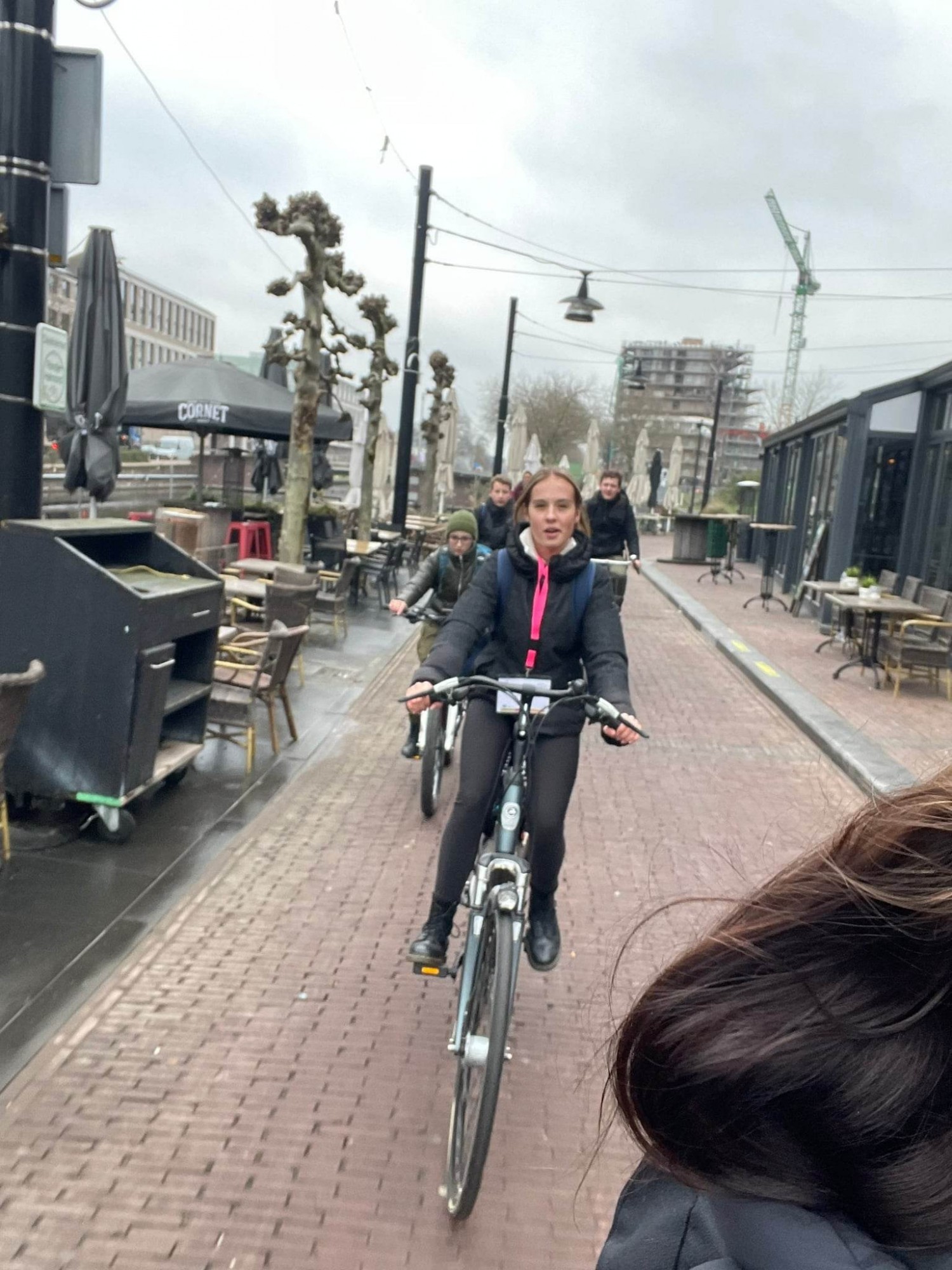 Náš druhý Erasmový programový den trávíme ve škole a porovnáváme přístup jednotlivých projektových států k čistotě ovzduší. Učitelé z Nizozemí si pro nás připravili chemický workshop, kde se nám hodila naše poctivá příprava (slovíčka jako air pollutant, carbon dioxide, ozone layer, hydrometerological institute aj. nejsou zrovna základní slovní zásoba). Navštívili jsme místní "Automotive campus", kde se zabývají ekologičtějšími způsoby konstrukce a provozu vozidel. No a v neposlední řadě, jezdíme všude v mírném mrazu na kole - protože pravý Holanďan nezná špatné počasí, pouze špatné oblečení. A je škoda nevyužít všechny ty báječné cyklostezky! Takže rukavice, čepice, teplé bundy a hurá na kolo! (ekologie v praxi :-)