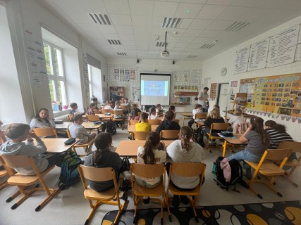 Na besedě jsme se dozvěděli mnoho zajímavého o životě a díle Jana Amose Komenského. Narodil se v roce 1592 a už tehdy nebyl jeho život vůbec lehký – brzy přišel o rodiče a musel se o sebe starat sám. Přesto se nevzdal a rozhodl se věnovat učení a pomáhat lidem.