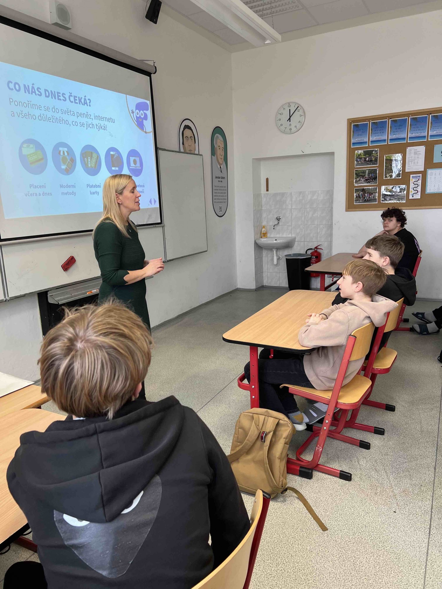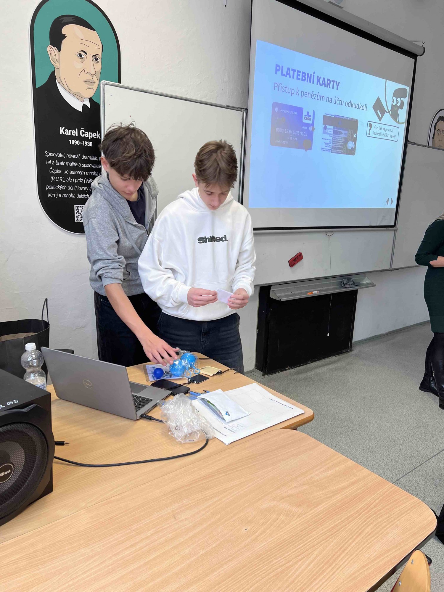 Dnes jsme se v rámci výuky finanční gramotnosti zúčastnili zajímavé přednášky, kterou vedly dvě zástupkyně banky ČSOB. Dozvěděli jsme se spoustu nových informací o tom, jak fungují platební karty, k čemu všemu slouží a jaké mají výhody.