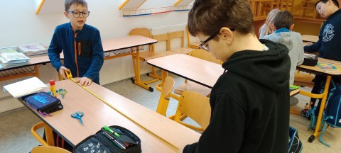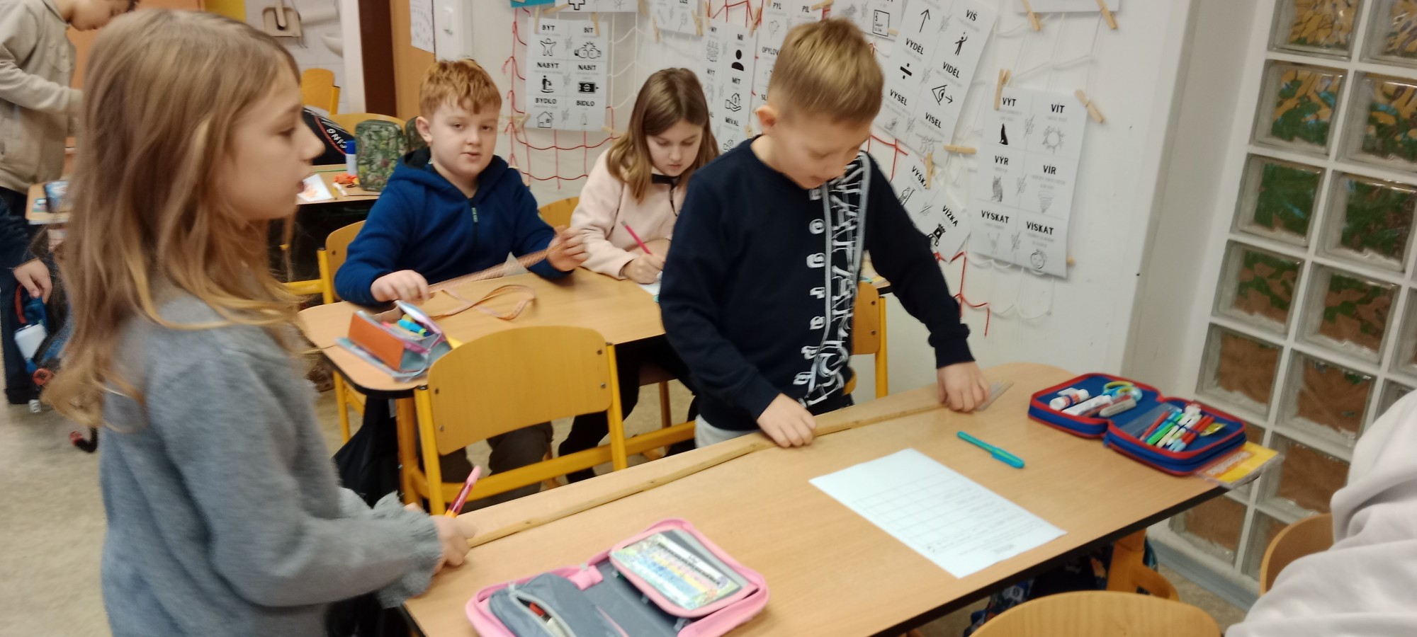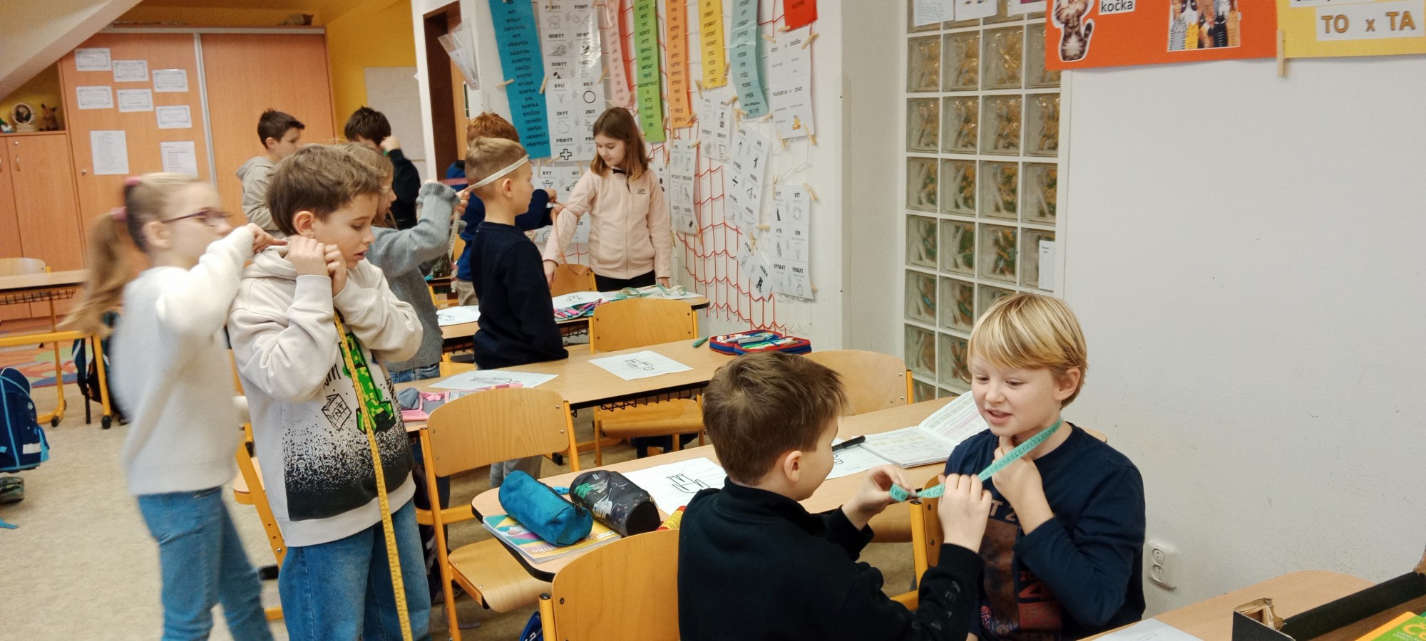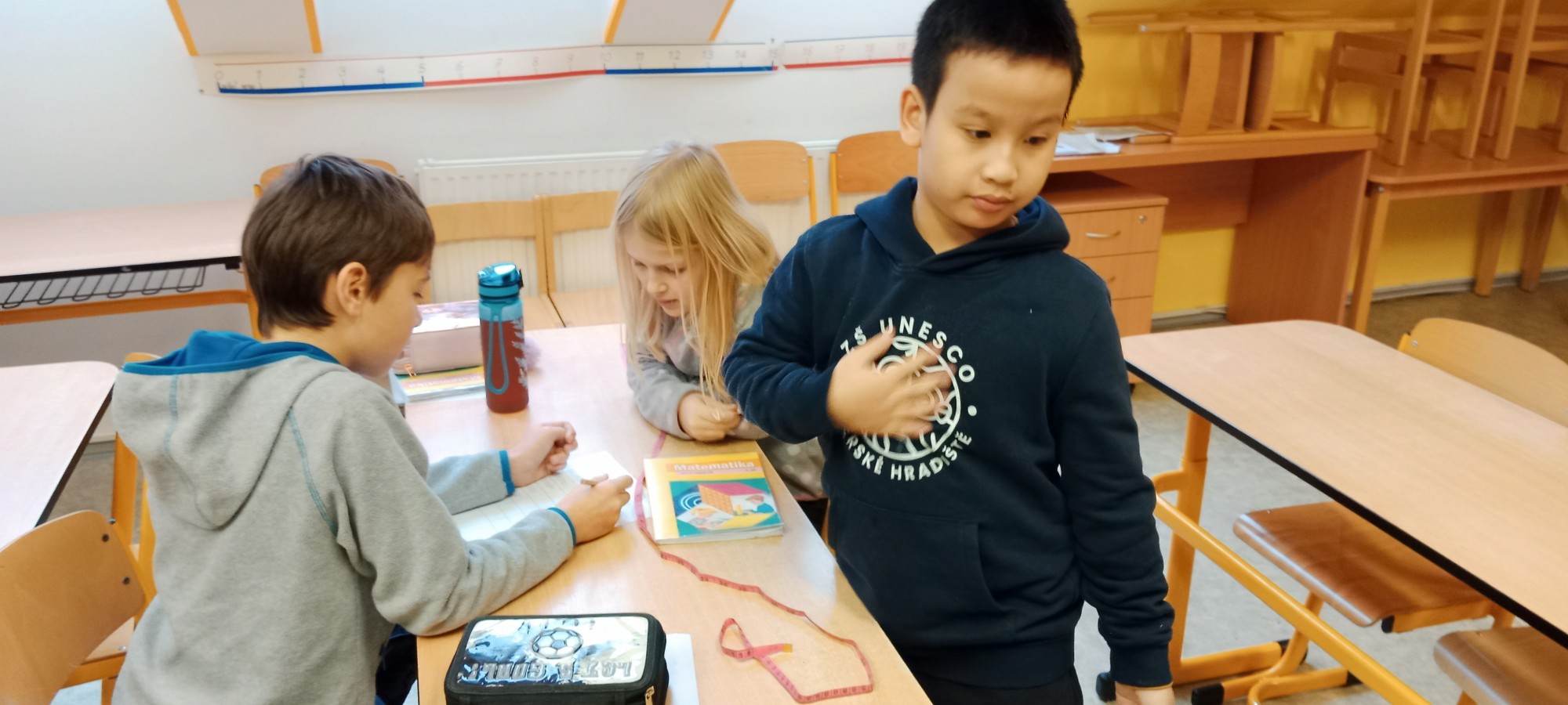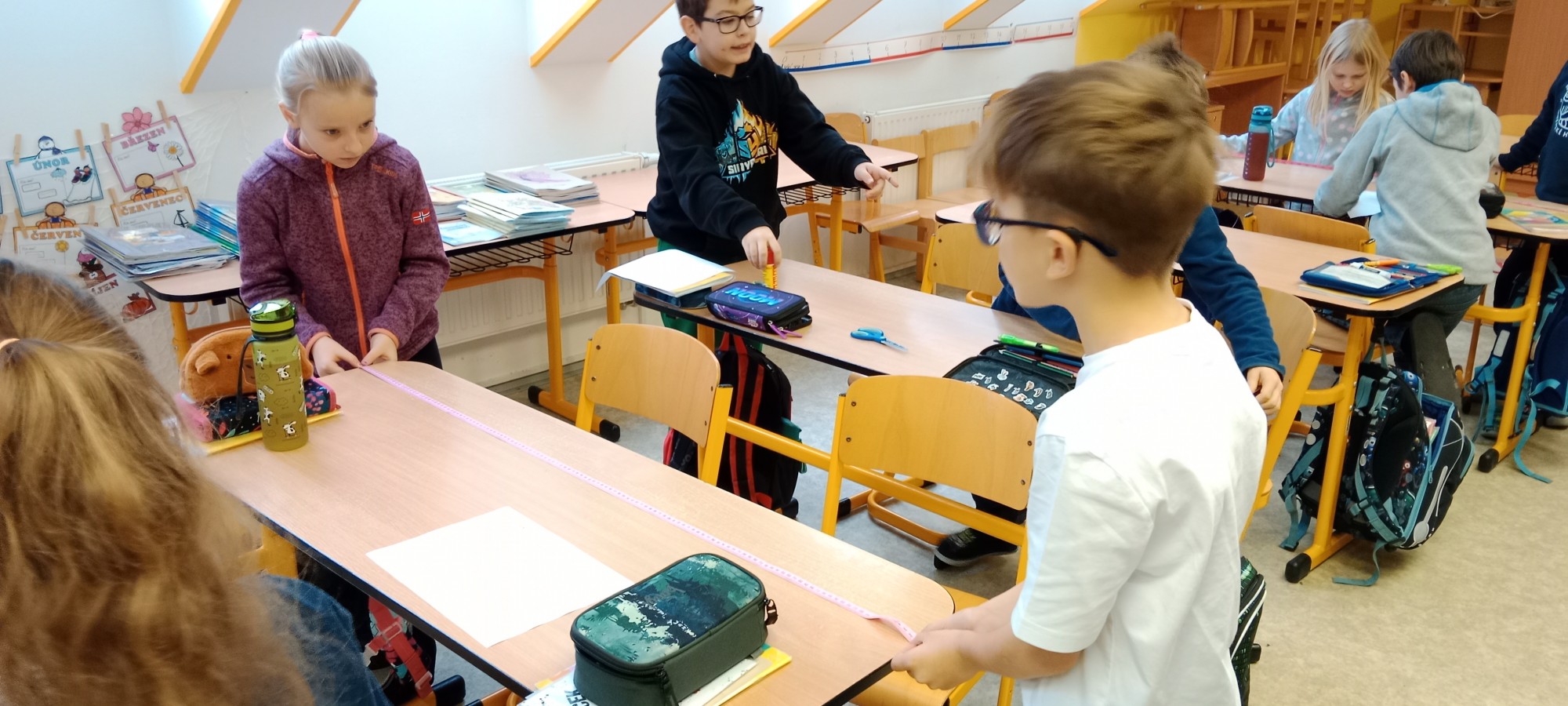 Žáci 3.A si vyzkoušeli využití jednotek délky v praxi. Na měření si přinesli vhodné pomůcky a měření mohlo začít. Nejprve měřili vybrané věci ze třídy a na závěr, za použití krejčovského metru, s pomocí spolužáka se změřili. Hodina matematiky tak byla živá a zábavná.
