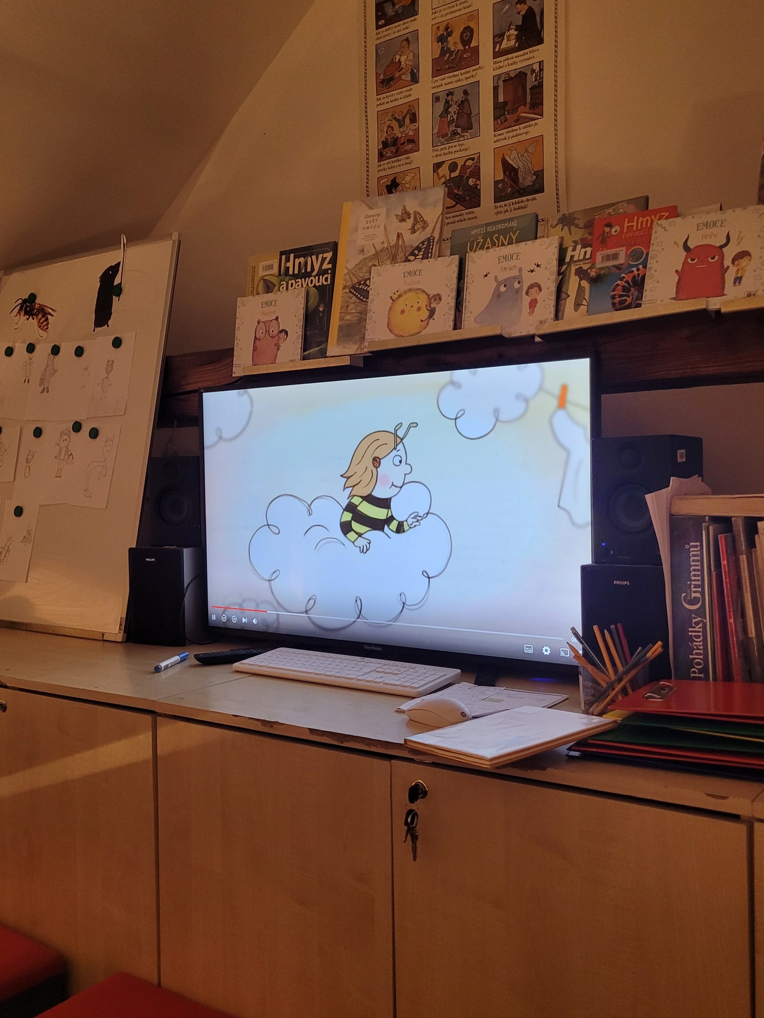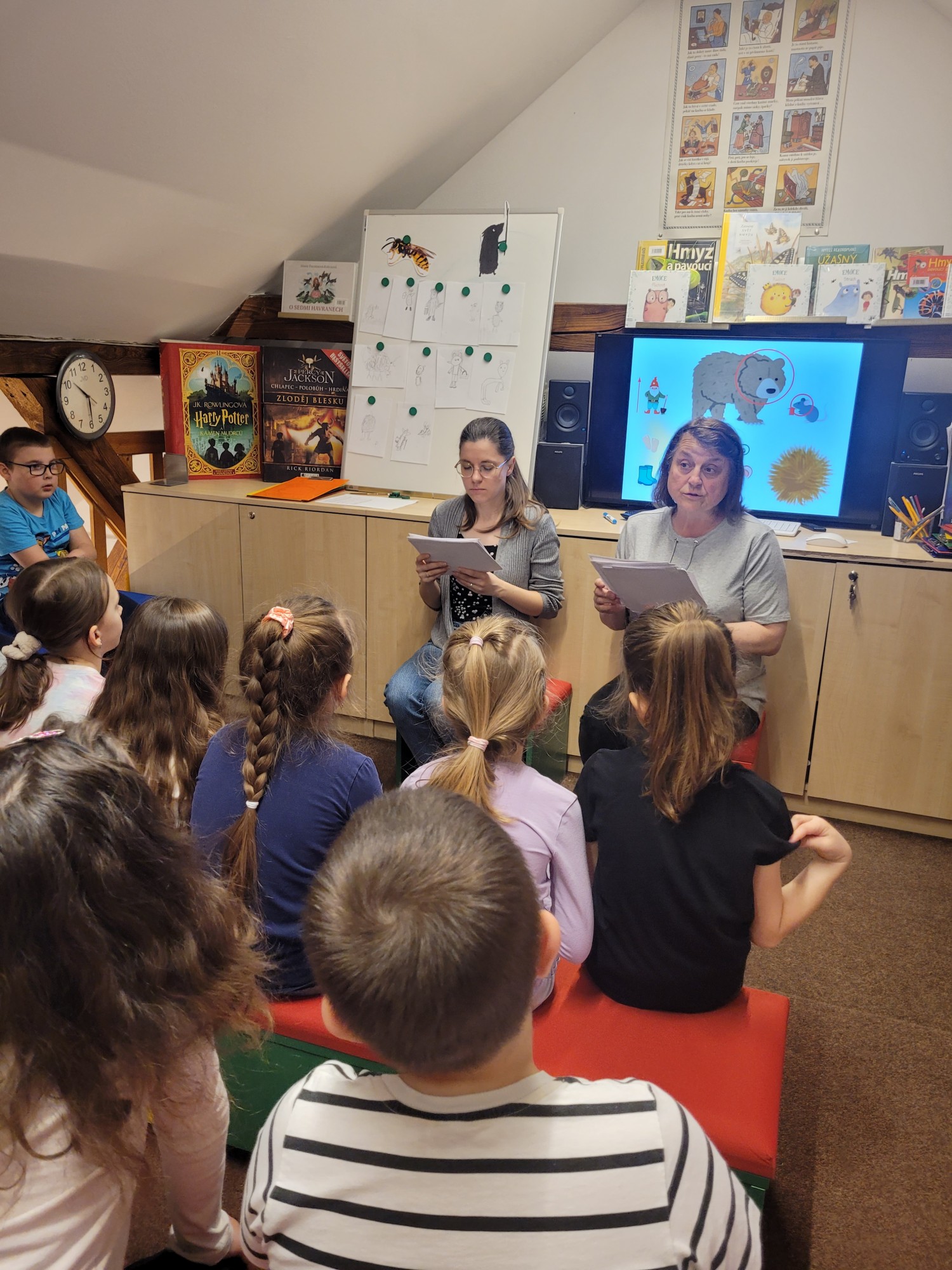 Prvňáčci z 1.C navštívili v pátek 17. dubna knihovnu BBB, kde je přivítaly paní knihovnice a barevné regály plné knih. Hlavním tématem setkání byla knížka Karlíček a vosy, která děti zaujala veselým příběhem i obrázky. Děti si poslechly povídání o vosách — jak žijí, proč jsou důležité a jak se k nim bezpečně chovat. Na základě popisu měli žáci ztvárnit Karlíčka. Po pár minutách vznikla spousta originálních výtvorů. Na závěr se děti podívaly na pohádku o Vose Marcelce, která návštěvu krásně zakončila.