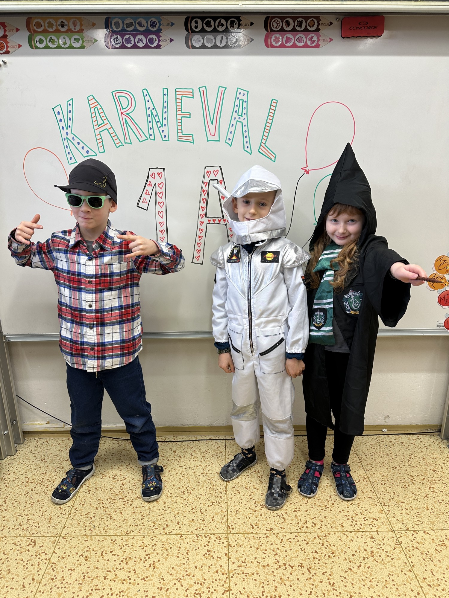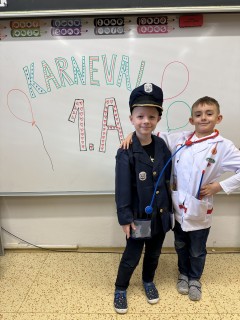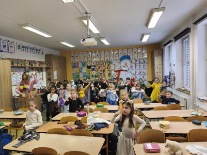 V pátek se naše škola proměnila v pohádkové království plné princezen, superhrdinů, zvířátek i tajemných postav. Žáci tříd 1.A a 1.B totiž prožili karnevalový den.