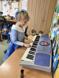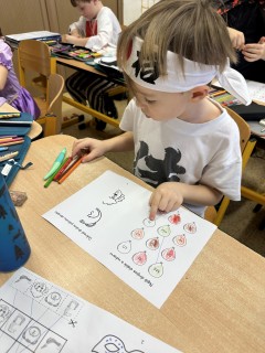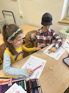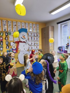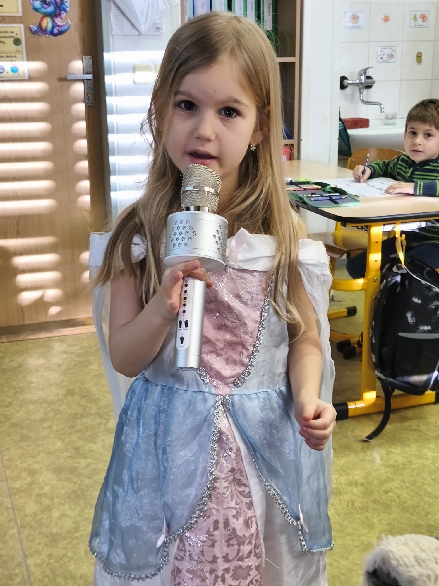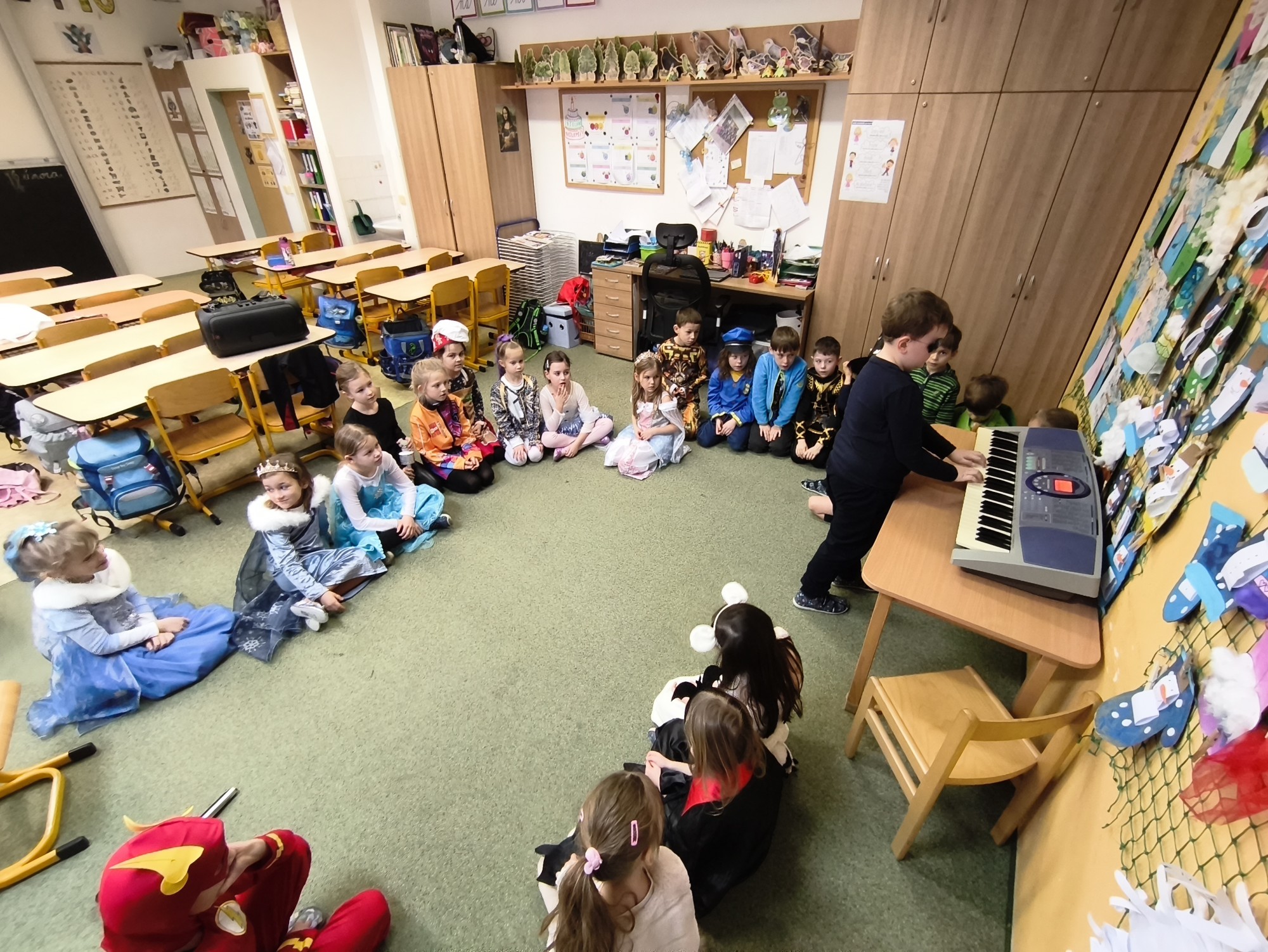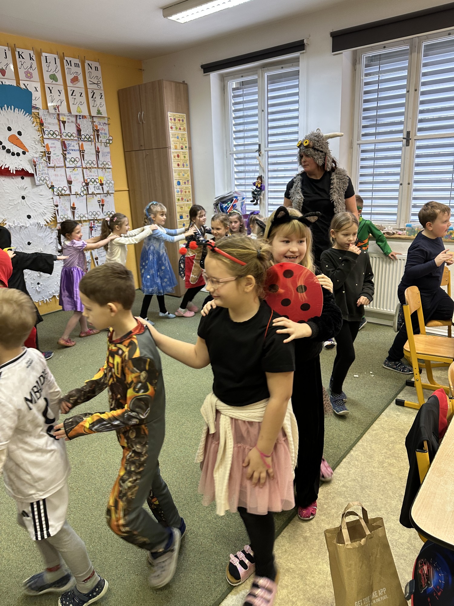 O velké přestávce se třída proměnila v taneční parket. Rozjela se totiž karnevalová diskotéka! Z reproduktorů zněly veselé písničky a malí tanečníci okamžitě zaplnili prostor. Nechyběla ani oblíbená makarena nebo Just Dance.