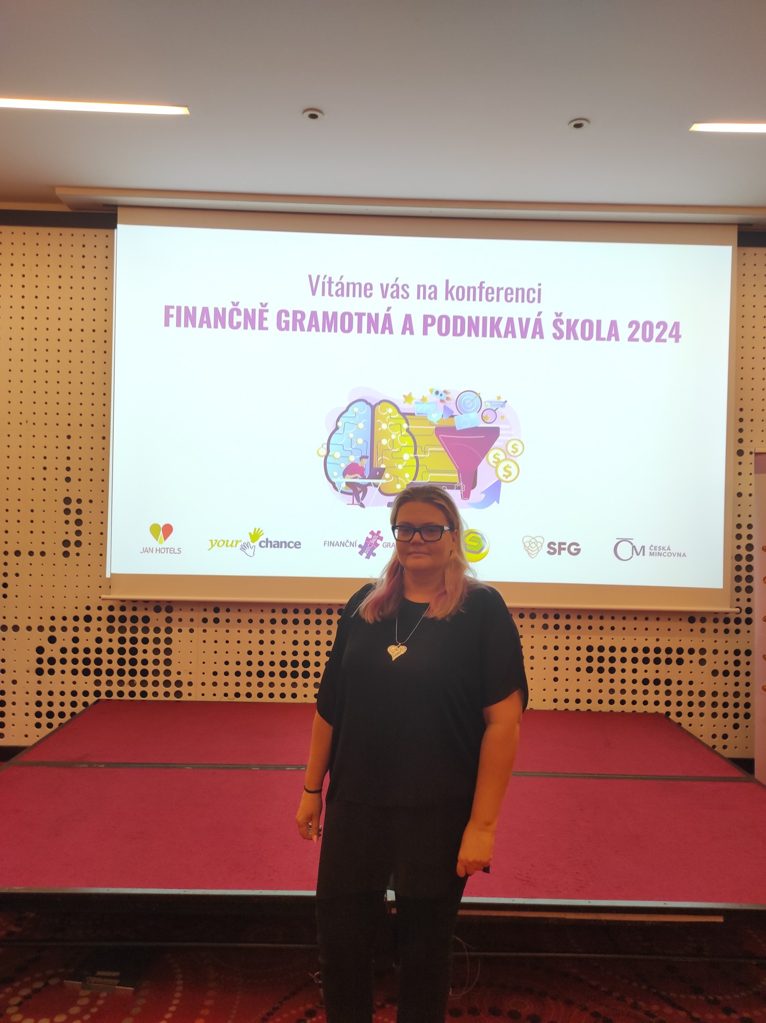 Dnes 18.9.2024 probíhá konference Finančně gramotná a podnikavá škola 2024 v Praze, kde jsem byla pozvána jako host do diskusního panelu - Panel příkladů dobré praxe. Patříme mezi jednu z mála škol v celé České republice, která získala diamantový certifikát a pokračuje v rozvoji povědomí o finanční gramotnosti dál.