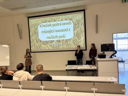 Zároveň je čekala prezentace vlastní práce na zvolené téma. Naše týmy se věnovaly zjišťování informací o křečkovi polním a dropovi velkém.