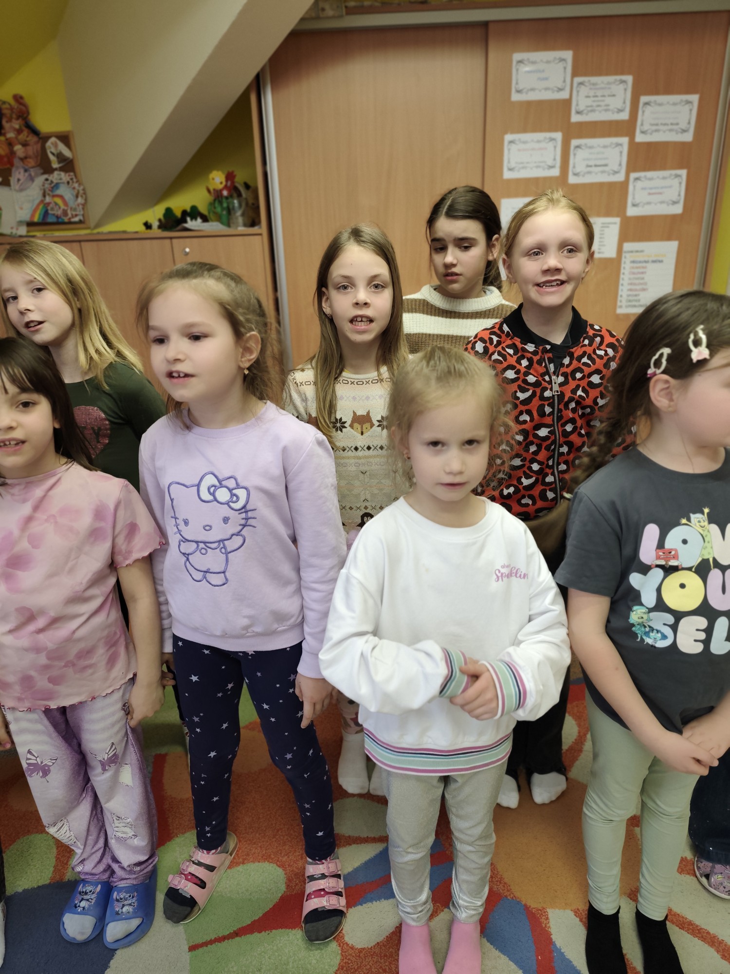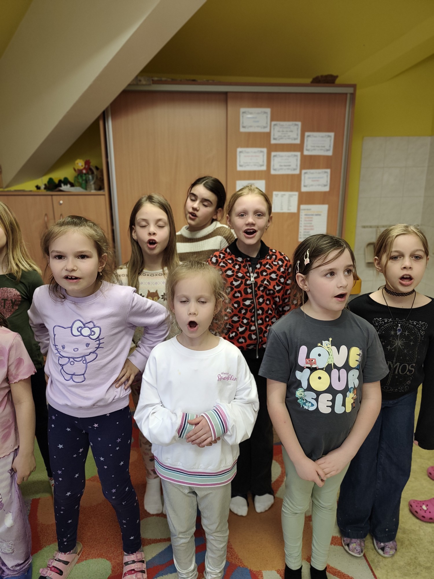 Kroužek Písnička je zaměřený na rozvoj hudebních a pěveckých dovedností dětí zábavnou a přirozenou formou. Učíme se správnému držení těla a práci s hlasem, včetně jeho správného posazení. Součástí lekcí jsou rytmická, hlasová a mimická cvičení, stejně jako dechová cvičení, která pomáhají ke zdravému a jistému projevu. Zpíváme lidové písně, oblíbené melodie z pohádek i moderní a popové skladby. Cílem kroužku je podpořit radost ze zpěvu, hudební cítění i sebevědomé vystupování.