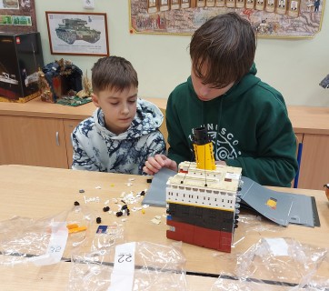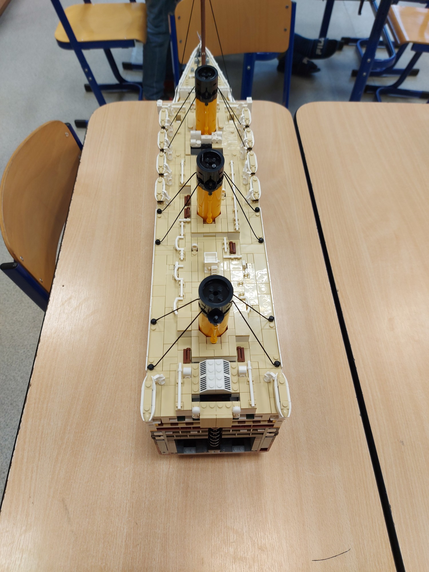 Lego stavebnice TITANIC míři do svého velkého finále. Chybí ještě postavit záď lodi a bude hotovo. Pak ještě žáci badatelského kroužku nainstalují led osvětlení a Titanic může vyplout.