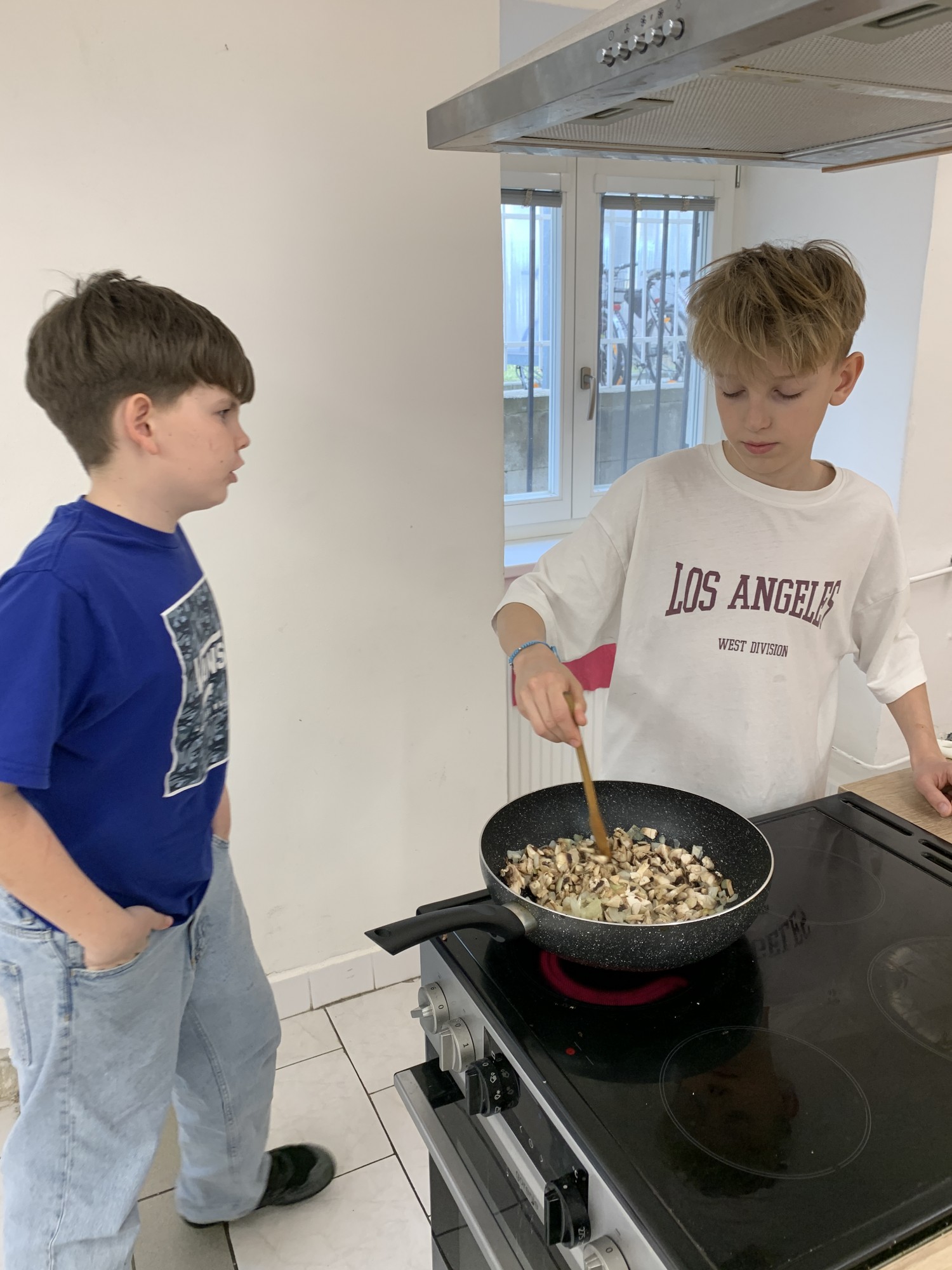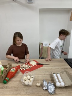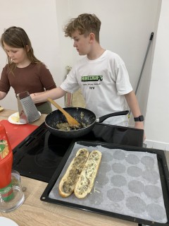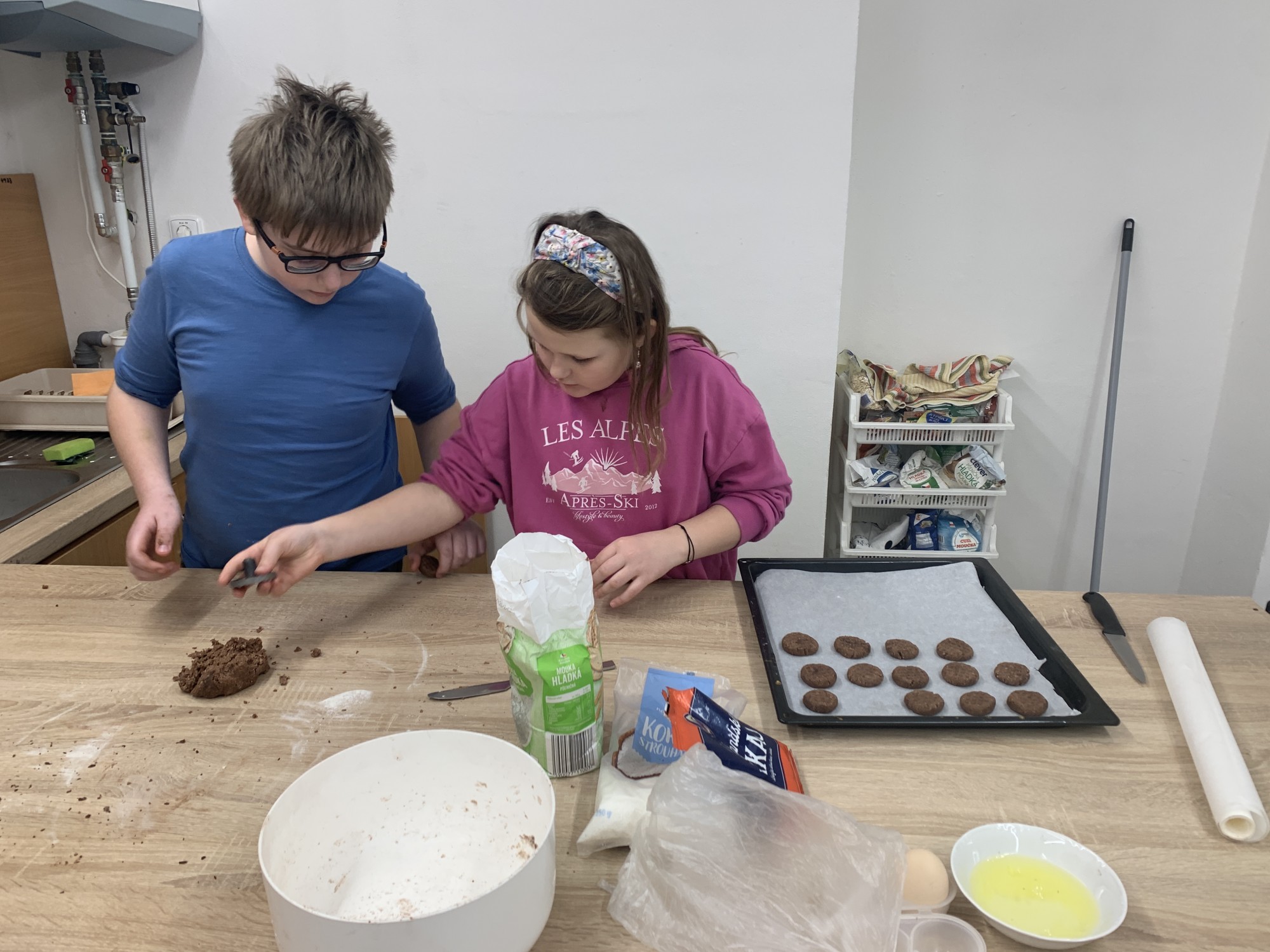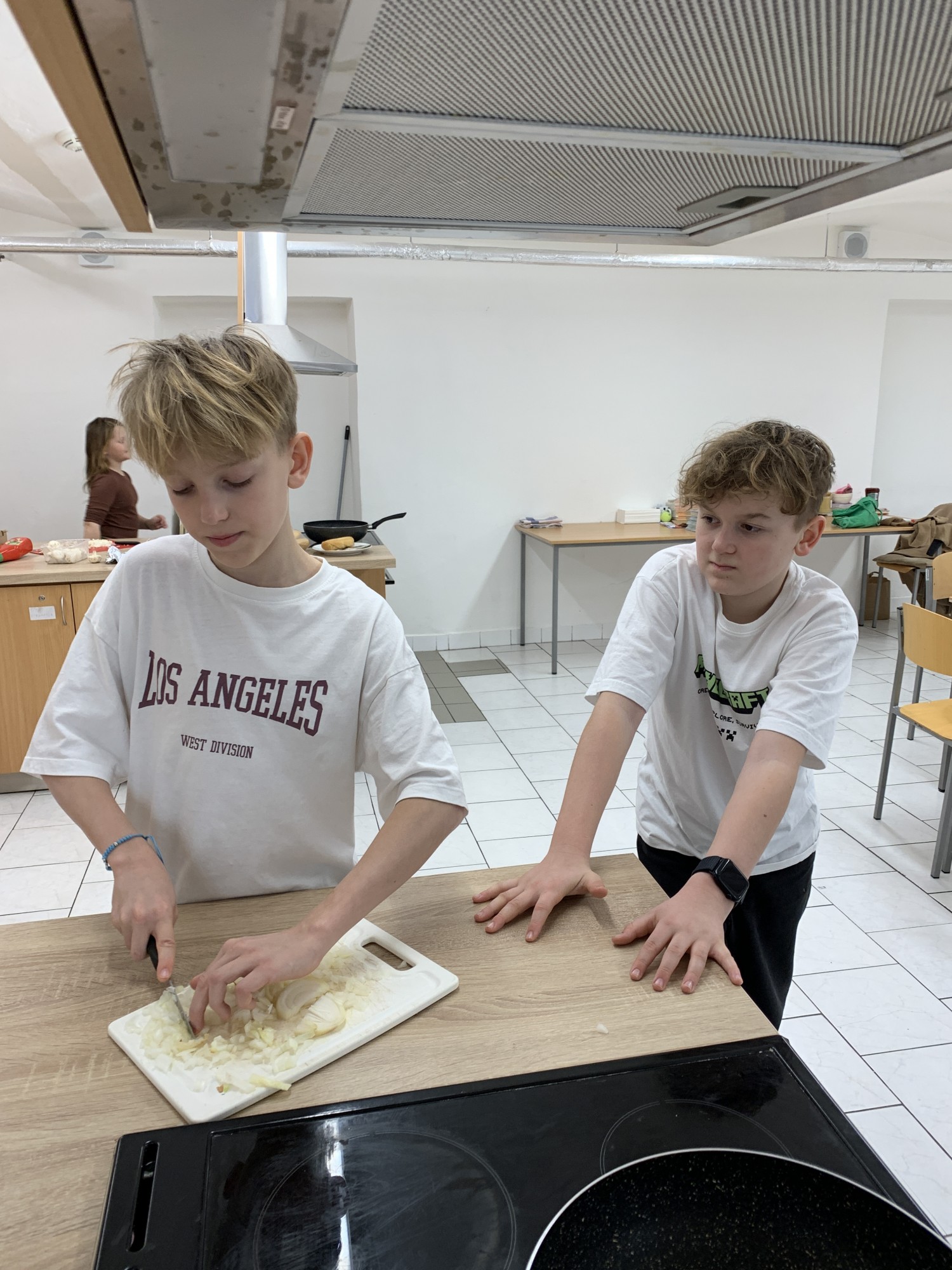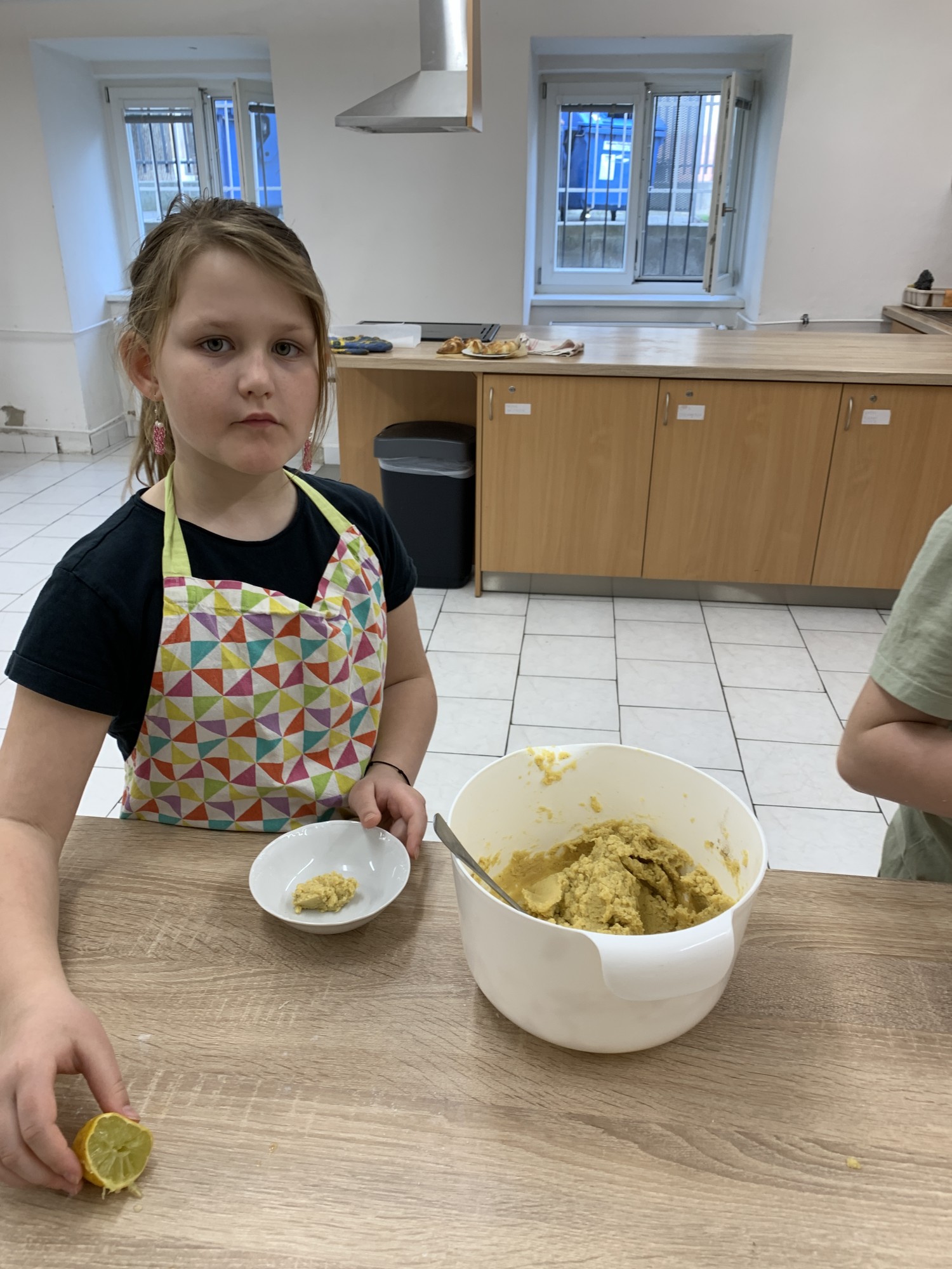 Kdo by si myslel, že březen je jen o čekání na jaro, ten u nás ve školním klubu Malý kuchtík rozhodně nebyl! Naši malí kuchaři totiž nasadili zástěry, vyhrnuli rukávy a pustili se do pořádné gastronomické jízdy. Nejprve provoněli školu sladkými kokosovými sušenkami zvanými Koka. Některé zmizely ještě dřív, než stihly úplně vychladnout. Pak jsme se vydali na výlet do Polska – alespoň tedy chuťově. Na programu byly typické zapékanky, které se povedly tak, že by je klidně mohli prodávat někde na krakovském náměstí! A aby toho nebylo málo, přišla na řadu poctivá domácí klasika: voňavé rohlíky a k nim pomazánka z cizrny, známá jako humus. A výsledek? Od každého druhu něco, všechno se povedlo, kuchaři se zdokonalili v technologických postupech, vytvořili skvělou partu – a hlavně si pořádně pochutnali. Takový kroužek bych si dala líbit!