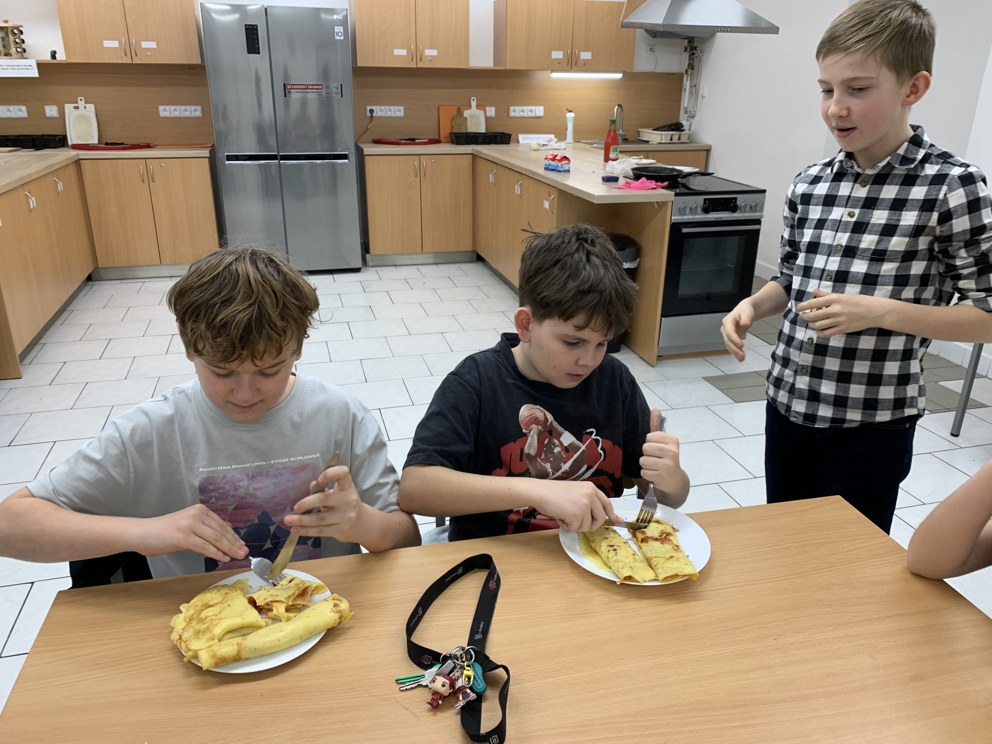 Kroužek Malý kuchtík je stále aktivní a do nového kalendářního roku vplul s chutí, elánem a plnou pánví. Na poslední schůzce jsme si dali slané palačinky plněné šunkou a sýrem – povedly se náramně a zmizely rychleji, než jsme stihli říct „dobrou chuť“.