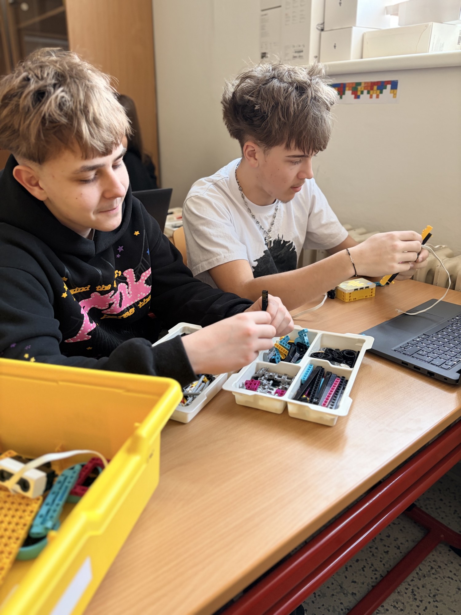 Škola pořídila nové stavebnice LEGO SPIKE Prime, které rozšíří možnosti výuky robotiky. Díky nim mohou žáci objevovat základy programování, konstrukce a technického myšlení zábavnou a praktickou formou. Stavebnice žáky velmi baví a práce s nimi je motivuje k tvoření i spolupráci. Nové sady zároveň nahradily starší roboty LEGO NXT, které už byly mnohdy nefunkční nebo ne zcela spolehlivé. Díky tomu nyní můžeme robotiku s LEGO SPIKE vyučovat od 7. až do 9. třídy. Žáci tak mají při výuce k dispozici moderní a lépe fungující vybavení.
