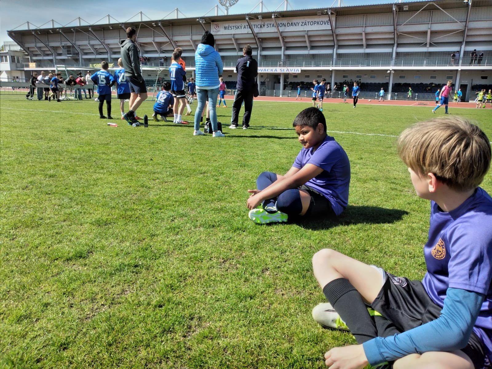 Naši hráči se na turnaj těšili už od rána a my jsme jim drželi palce. Společně s nimi vyrazil i pan učitel Martin Janečka, náš nejlepší fotbalista pod školní střechou, který tým podporoval a vedl během celého dne. Poděkování patří také paní asistentce Barboře Veletové, která byla panu učiteli po celý den skvělou pravou rukou. Každý míč i každý okamžik na hřišti prožívala spolu s našimi hráči naplno a dodávala jim energii i podporu.