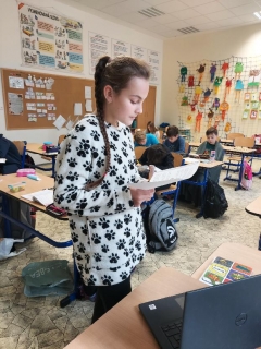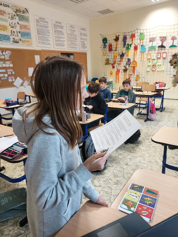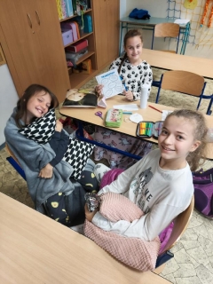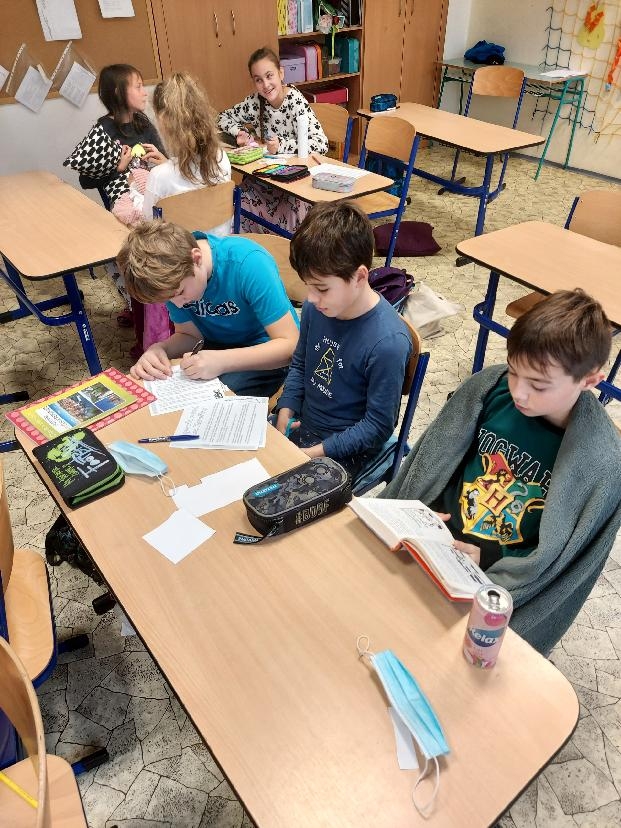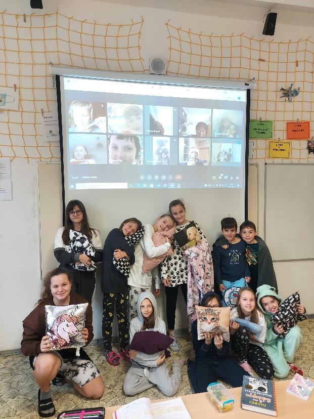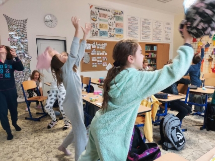 Čtvrteční dopoledne žáci 5.A strávili v netradičním oblečení – v pyžámku. V duchu přísloví „Na tu svatú Kateřinu, zalezeme pod peřinu". Při učení využili přinesených peřinek a přikrývek. Vytvořili si flipbook, kde se dozvěděli, kdo to byla svatá Kateřina a naučili se pár pranostik. Poté žáci představili své oblíbené knížky. V hodině tělesné výchovy využili své polštářky ke cvičení a netradiční dopoledne zakončili pravou peřinkovou bitvou. A že si ji užili!