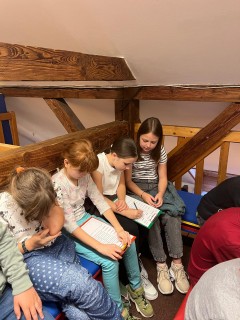 Tentokrát byla návštěva zaměřena na literární žánry. Povídali jsme si o tom, jaké knihy řadíme mezi pohádky, dobrodružnou literaturu, detektivky, sci-fi nebo poezii. Děti si zkusily různé ukázky přiřadit k žánrům a zjistily, že někdy není úplně snadné knihu správně zařadit.