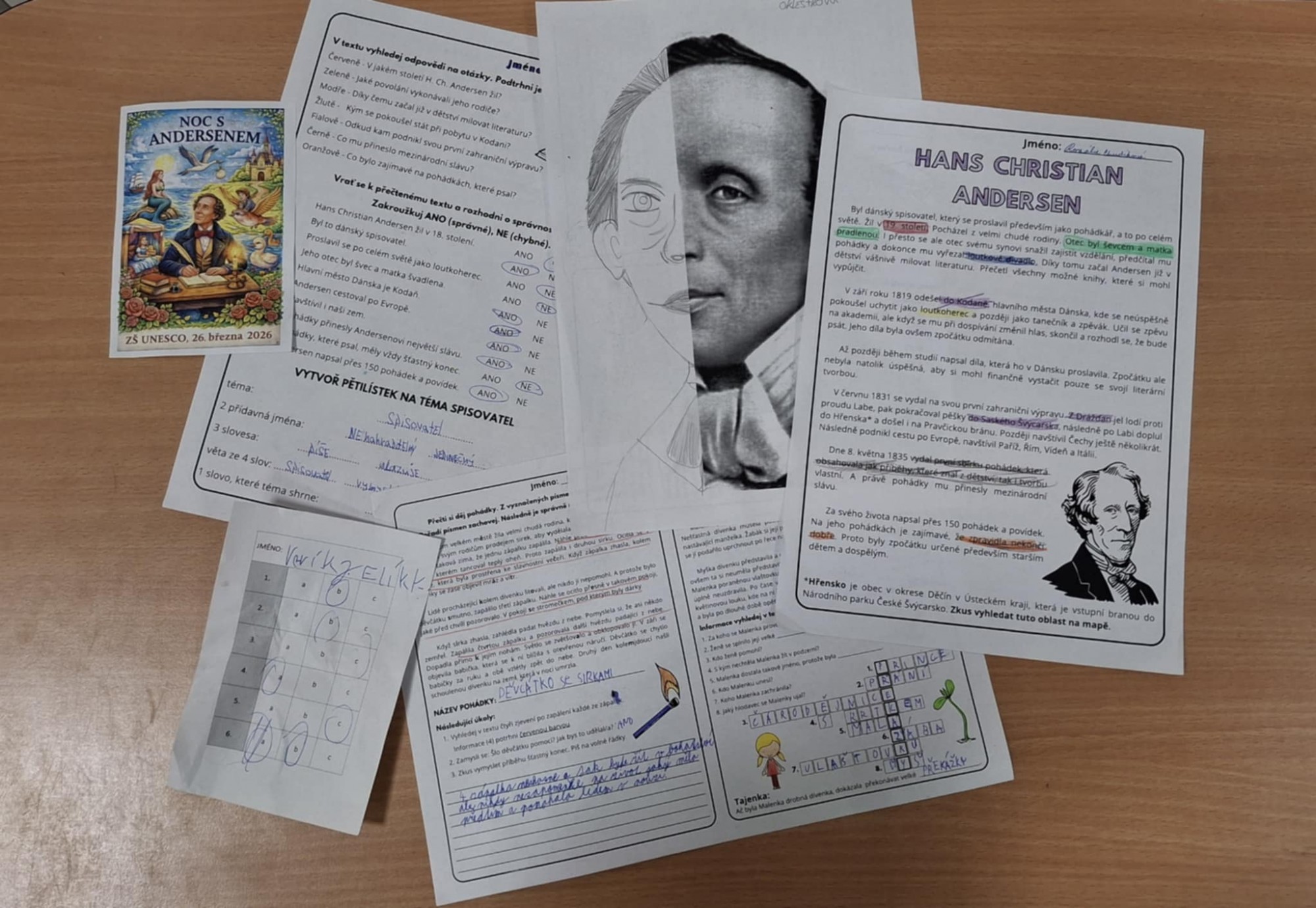 Společný večer jsme zahájili aktivitami zaměřenými na poznávání jeho života. Děti pracovaly s informacemi, vyhledávaly zajímavosti a postupně skládaly obraz spisovatele, jehož pohádky znají téměř všichni. Nechyběla ani tvořivá část – žáci vytvářeli pětilístek na téma „spisovatel“ a sdíleli své nápady i postřehy.