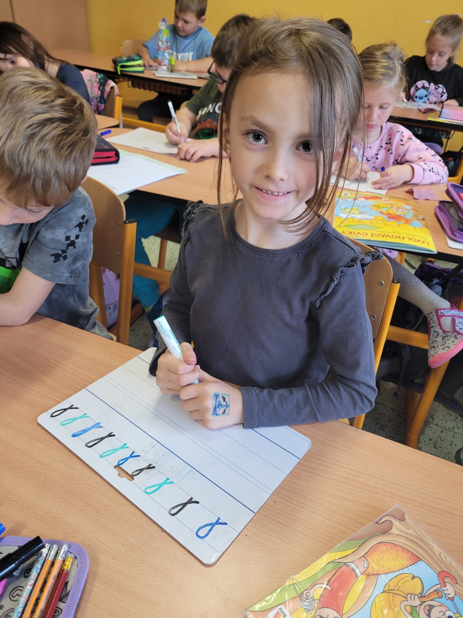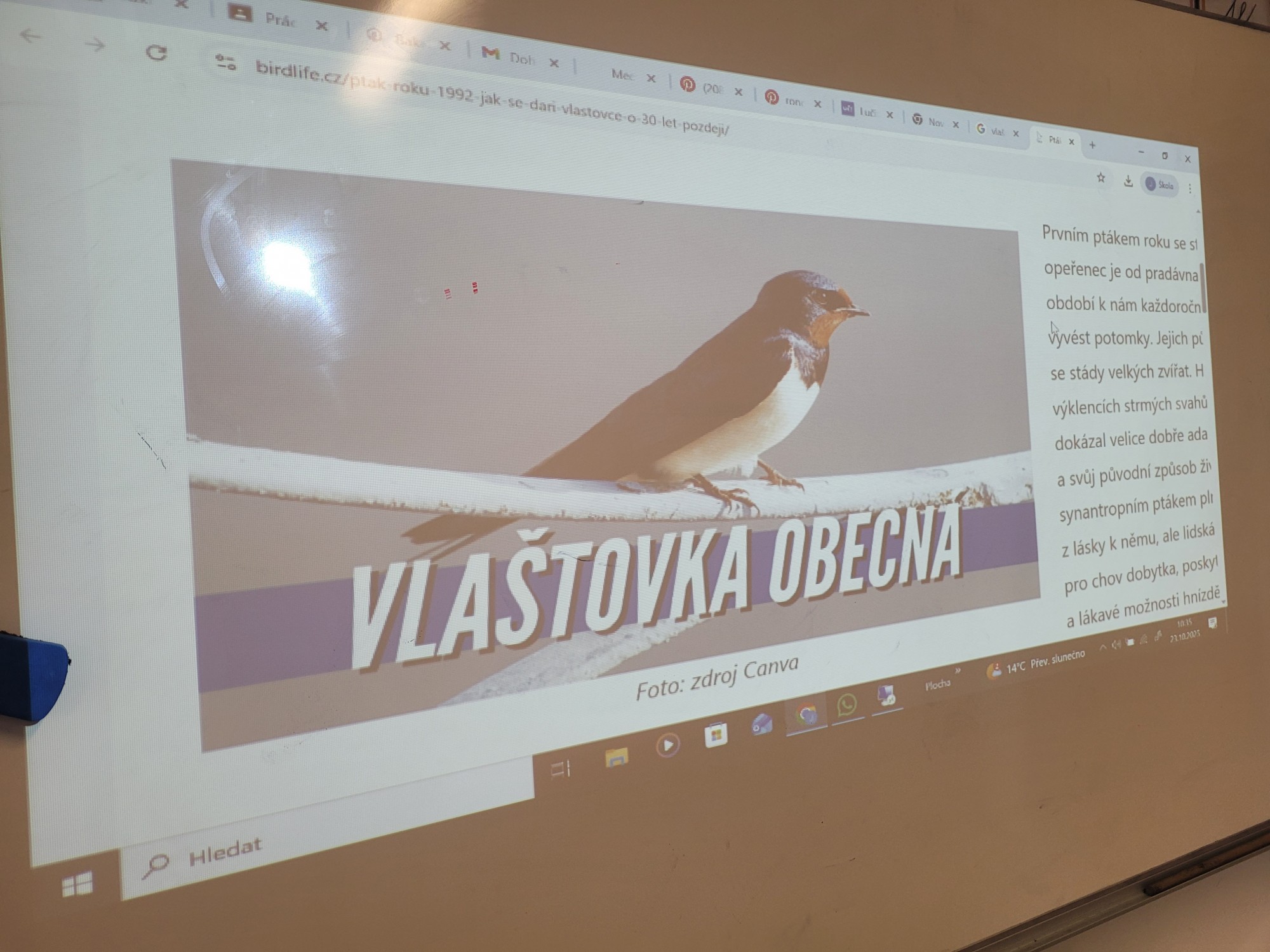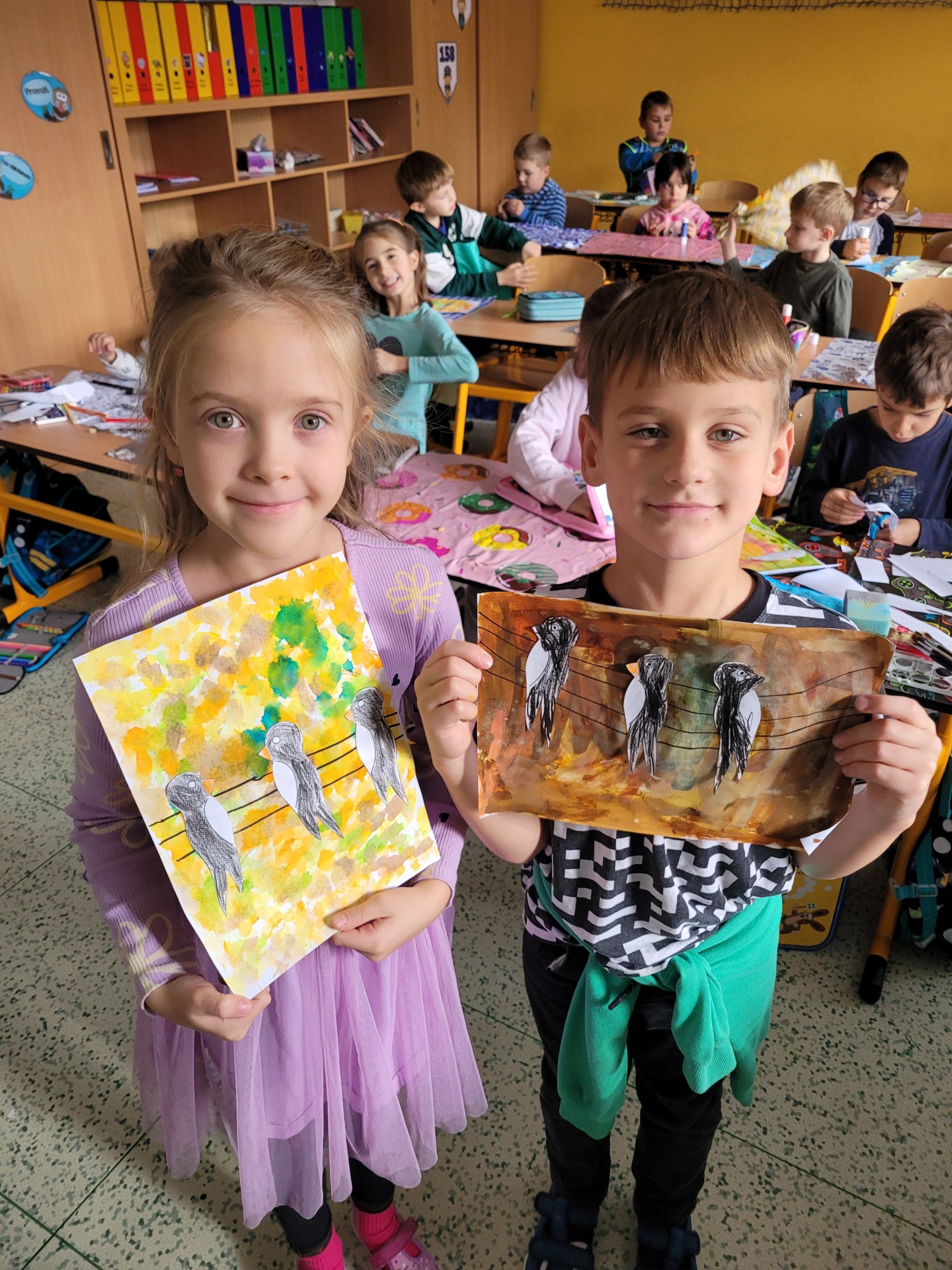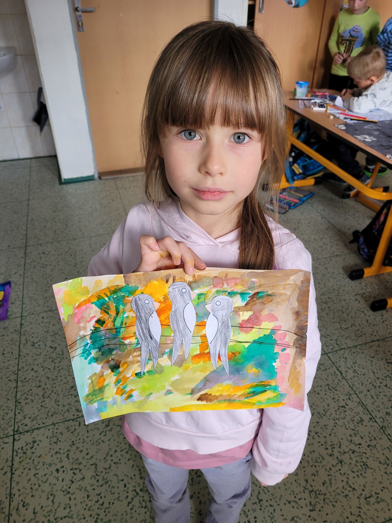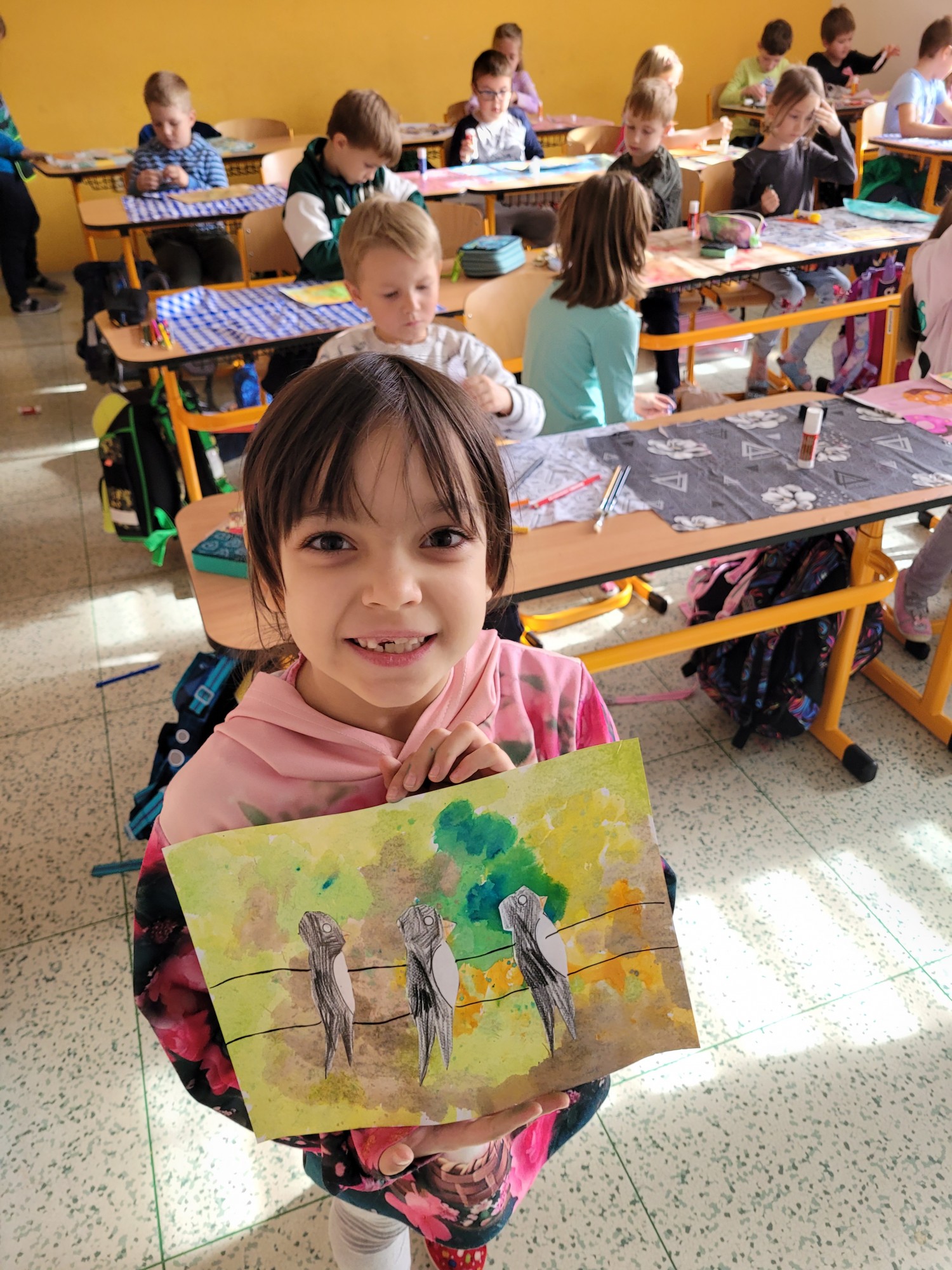 V českém jazyce jsme pracovali s básničkou o vlaštovce, kde jsme vyhledávali písmenka, která už známe. V matematice jsme porovnávali vlaštovky a určovali jejich počty. V hudební výchově jsme si zazpívali písničku Vlaštovko leť! Nakonec jsme ve výtvarné výchově proměnili třídu v hejno krásných vlaštovek.