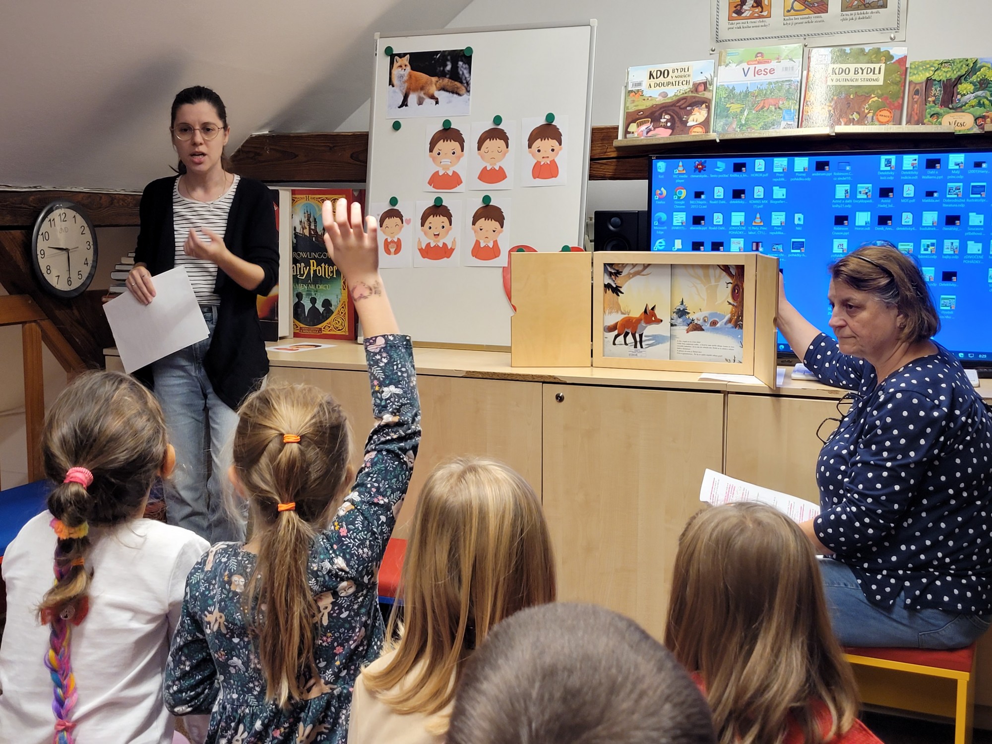 Paní knihovnice dětem vysvětlila, co slovo solidarita znamená – že to je, když si lidé navzájem pomáhají, stojí při sobě a snaží se, aby se nikdo necítil sám. Společně si přečetli pohádku o zvířátkách, která dokázala, že když se spojí a pomohou si, zvládnou i to, co by sami nikdy nedokázali.