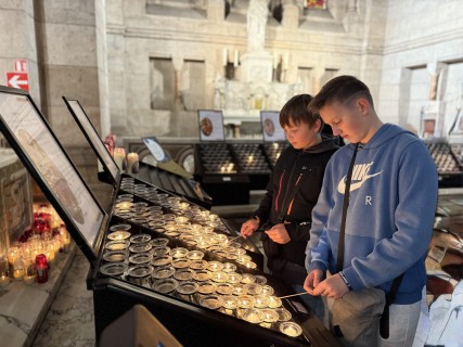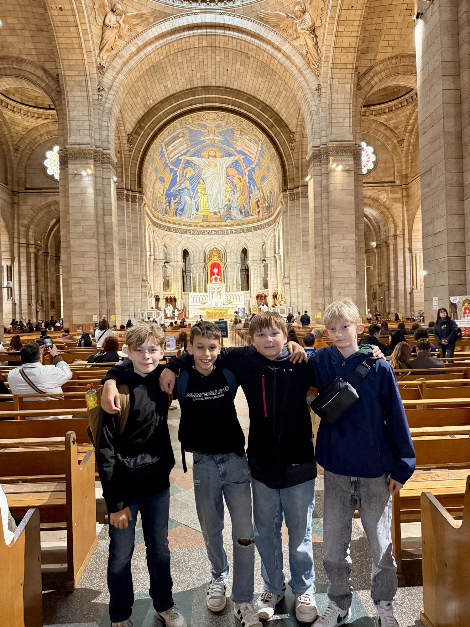 Strávili jsme skvělý den v Paříži. Nejprve jsme zamířili do slavné čtvrti Montmartre, kde se nad městem tyčí nádherná bazilika Sacré-Cœur. Uvnitř baziliky děti obdivovaly úžasnou výzdobu s největší mozaikou ve Francii - Nejsvětější srdce Ježíšovo.