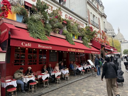 Po krátké zastávce na Place du Tertre, kde místní malíři vystavují svá díla, jsme pokračovali ke katedrále Notre-Dame. Po nedávné rekonstrukci nás její obnovená krása všechny opravdu uchvátila.