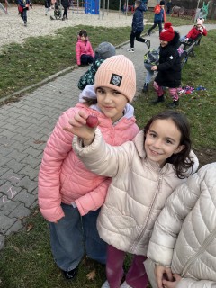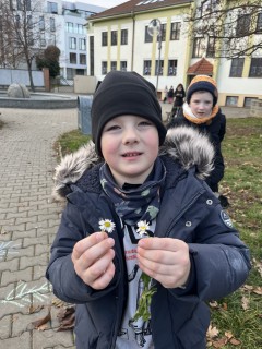 Nejprve se vydaly hledat poslední kvetoucí květiny, mezi nimiž nechyběla ani oblíbená sedmikráska. Sbíraly také kaštany a z podzimně zbarvených listů si tvořily vlastní květiny a kytice.
