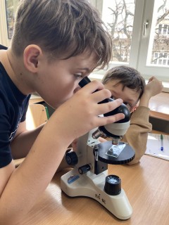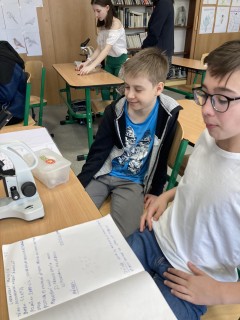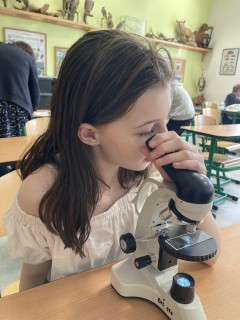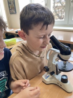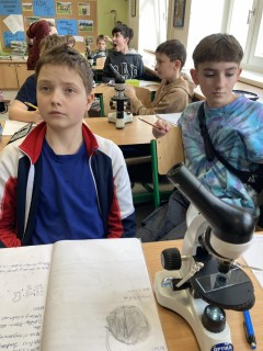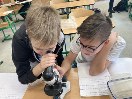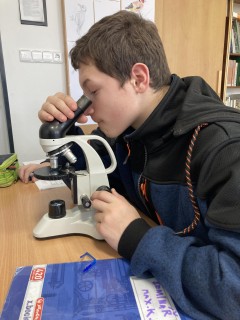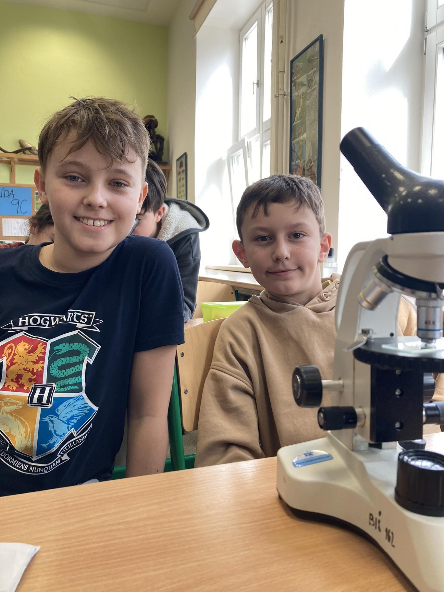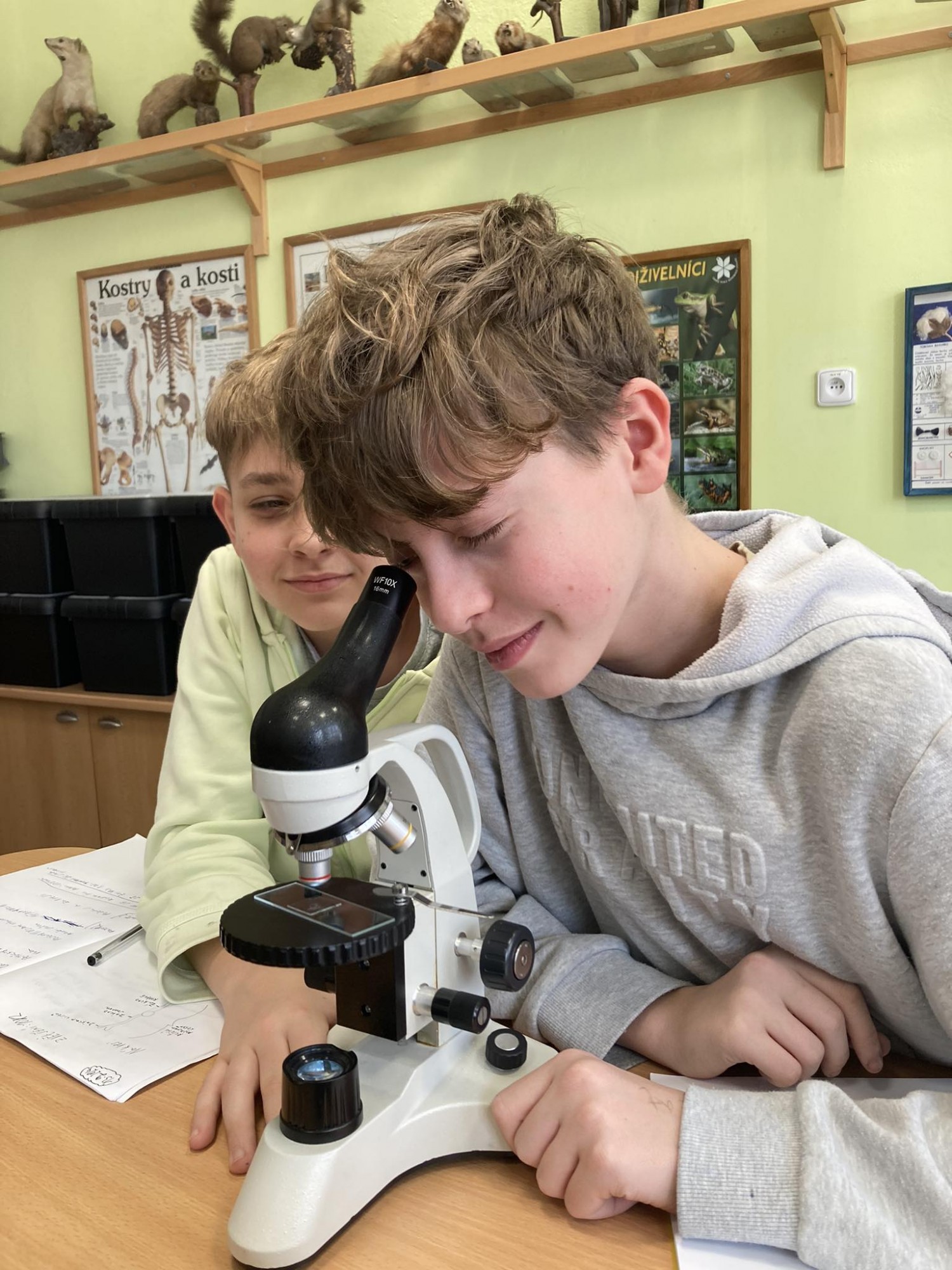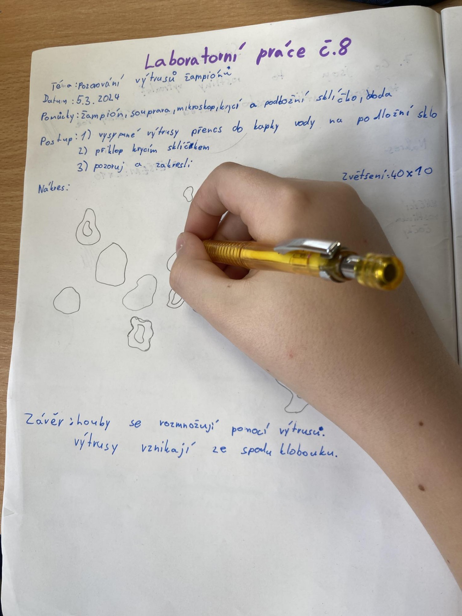 Naši šesťáci v hodinách laboratorního semináře každý týden pracují s mikroskopem. Od začátku školního roku se již zdokonalili v práci s mikroskopem tak, že je nezaskočí žádný úkol. Bez obtíží si poradili se získáním výtrusů žampionu i s přípravou jejich mikroskopického preparátu.