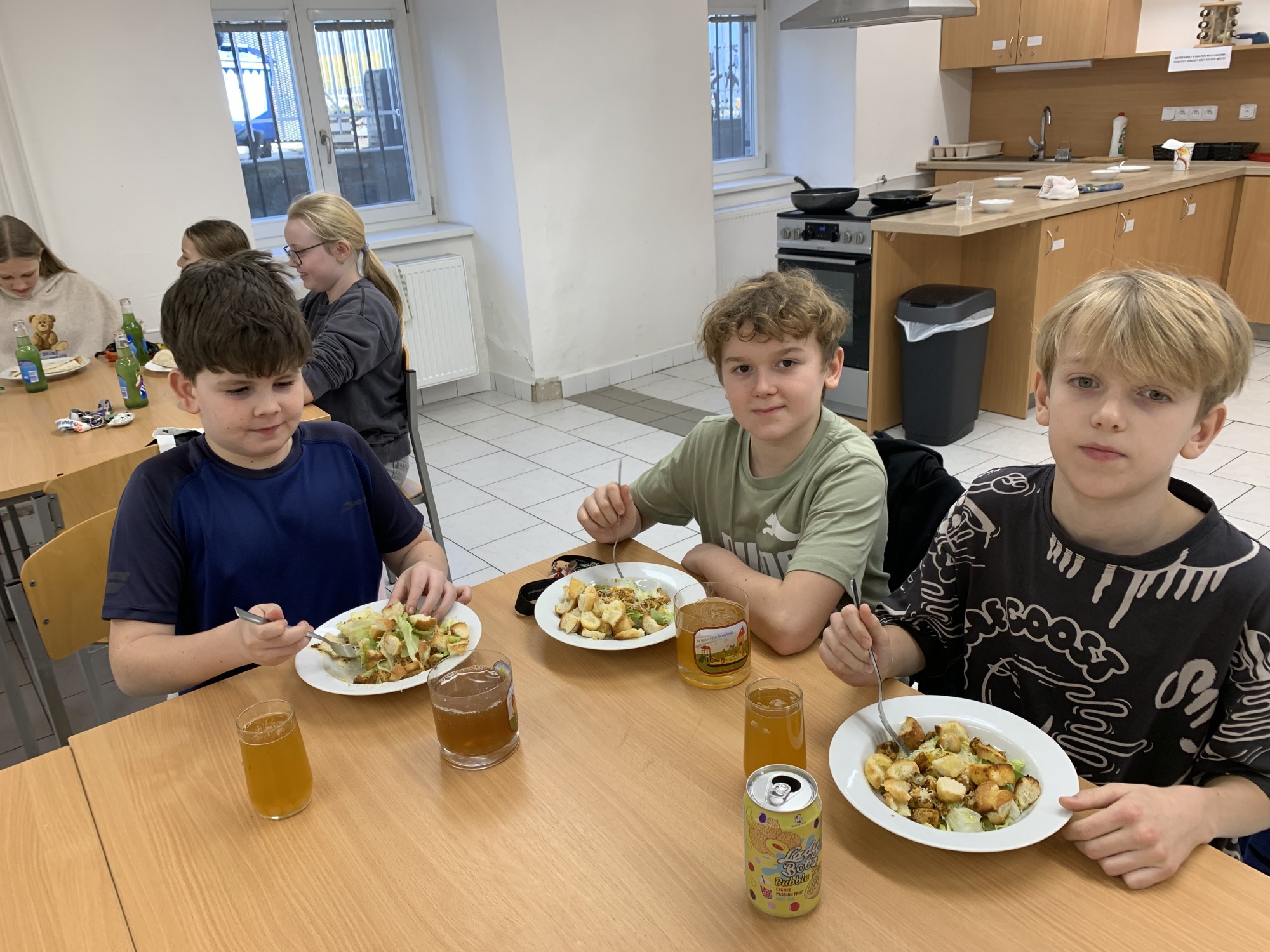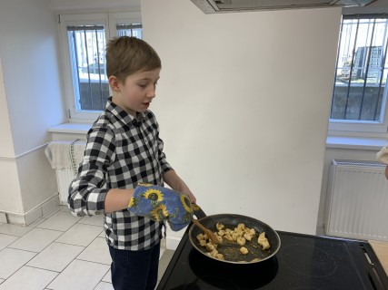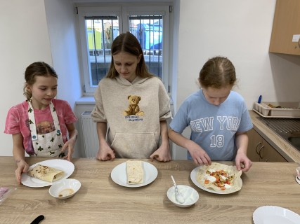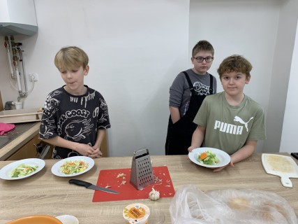Kroužek Malý Kuchtík opět ukázal, že vaření je radost! Dnes žáci pracovali ve dvou týmech a připravili dvě oblíbené chuťovky – tortilly a Caesar salát. Vedli si znamenitě a hlavně si všichni moc pochutnali.