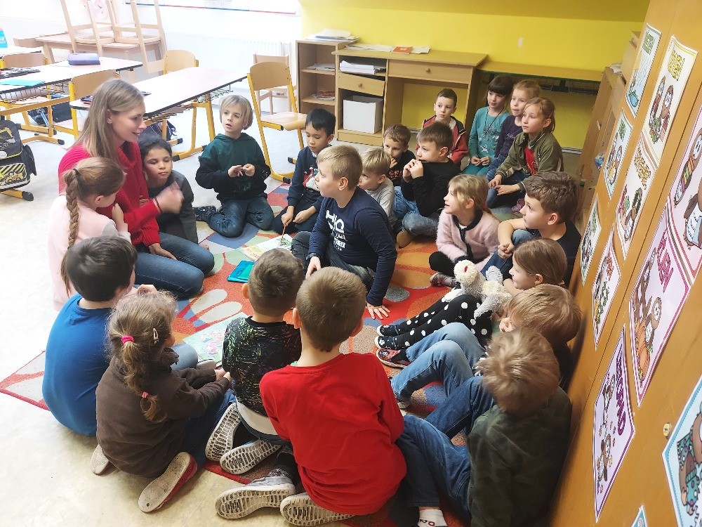 Ve středu 18.1. si pro žáky 1.C připravila program naše školní psycholožka Mgr. Tereza Blahová. Program byl zaměřený na spolupráci, kamarádství a vztahy ve třídě. Dětem se hodina moc líbila.
