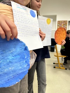 Vyvrcholením projektu byly skupinové prezentace, při kterých děti představily své planety spolužákům, sdílely zajímavosti a vysvětlovaly, co se jim podařilo zjistit. Projekt tak rozvíjel nejen znalosti z oblasti přírodovědy, ale také komunikační dovednosti, spolupráci a schopnost prezentovat vlastní práci.